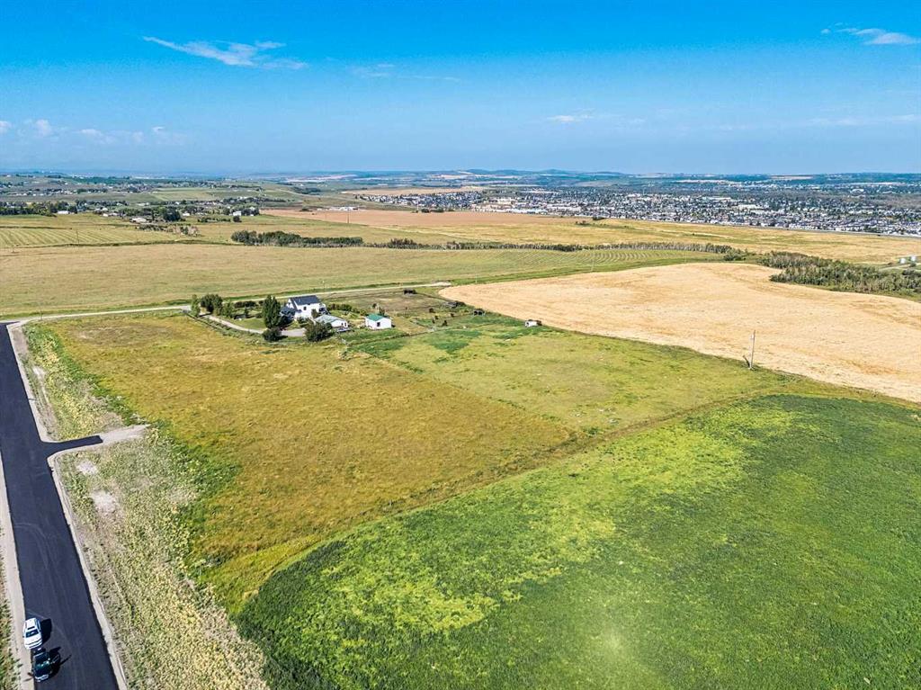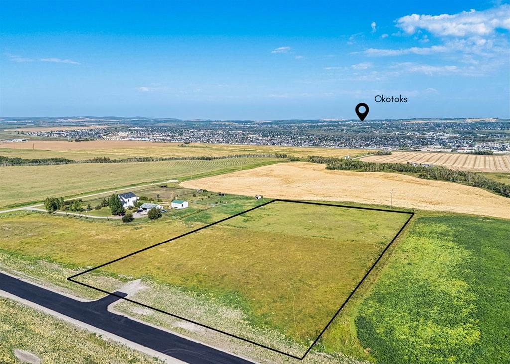 Incredible opportunity to build your dream home on 4.59 acres of open, elevated land with unobstructed views of the Rocky Mountains by day and the town lights of Okotoks by night. Located just minutes south of town, this lot offers one of the best panoramic vantage points in the area. Thanks to its high elevation, the views will remain protected from future development, giving you peace of mind that your scenery will never be blocked. This parcel is ideal for those looking to create a custom home, hobby farm, or private retreat with wide-open space and endless possibilities. With paved access to the property and utilities nearby, it's ready for your vision. Bring your horses, design your dream home, and enjoy acreage living without sacrificing proximity to schools, shopping, and commuter routes.