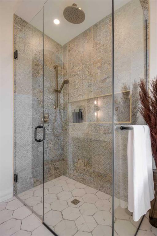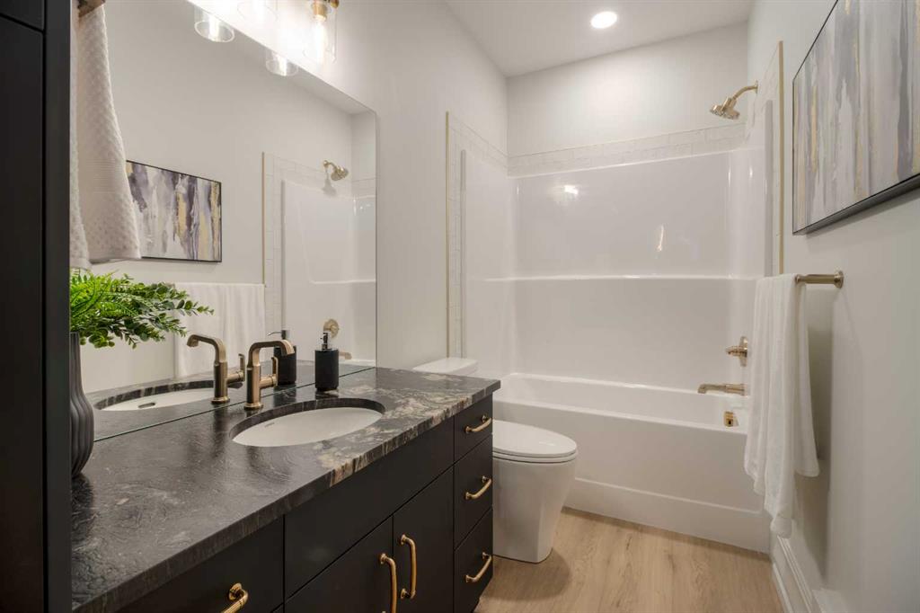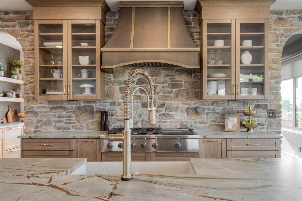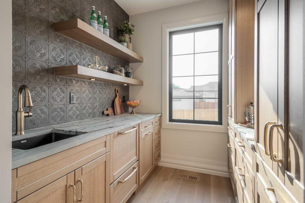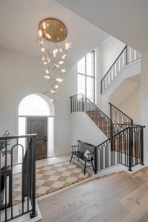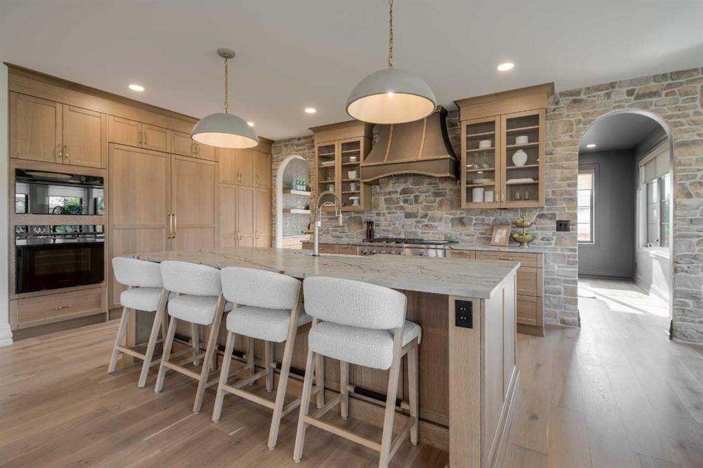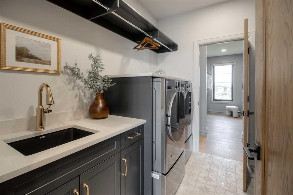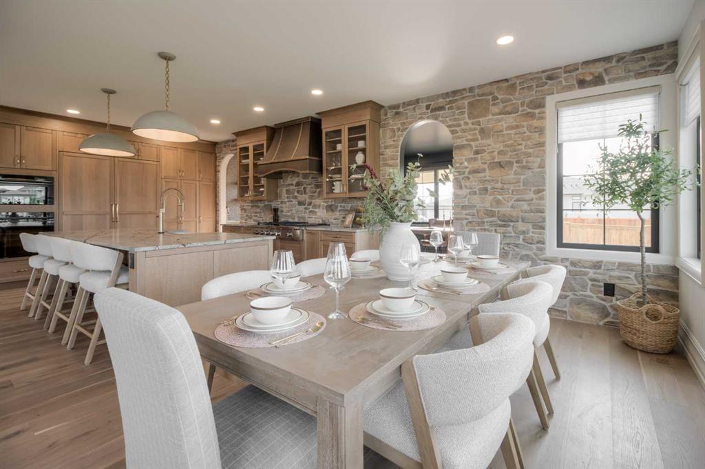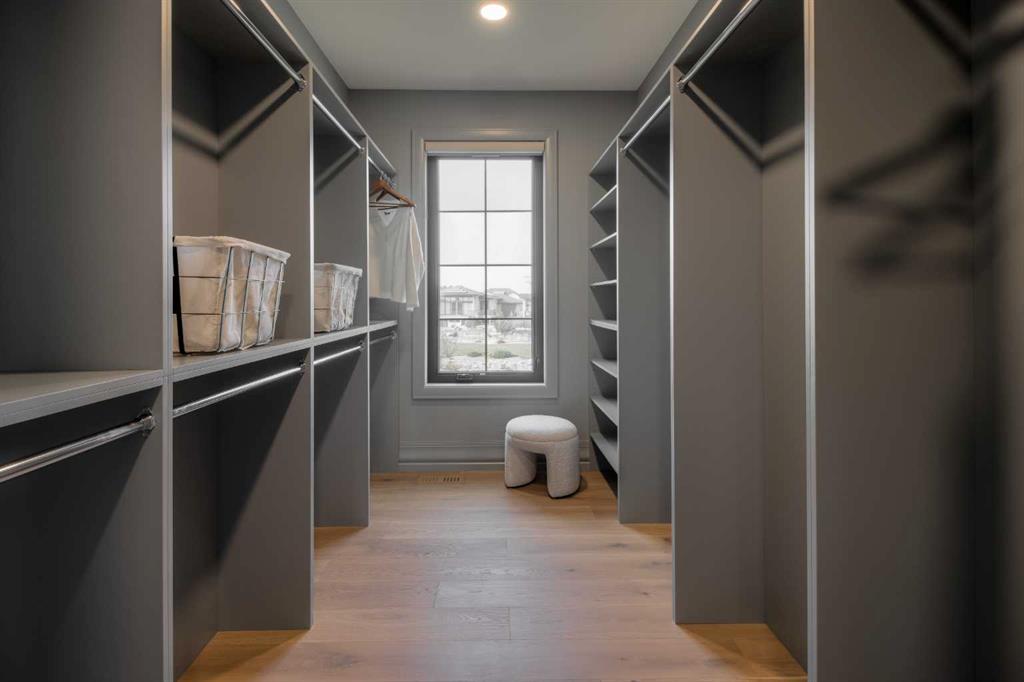 Welcome to the Meadow by Stranville Living Master Builder, located in the premier estate living community of Prairie Arbour Estates. This elegant two storey home boasts 4,417 square feet of developed area spread over three spacious levels in one of most thoughtful layouts you're likely to see. Where do we start? The French country exterior combines natural tones in acrylic stucco, fiber cement siding, and stone work with bold roof lines and dark contrasting windows. Large panes of high efficient glass envelope the home providing significant volumes of natural light and tranquil views of the huge yard and of Prairie Arbour's pond and walking paths. Fresh landscaping throughout the 1/3rd acre lot includes several trees, irrigated sod, exposed aggregate sidewalks, and a playful stone pathway to the park; all surrounded by a brand new privacy fence with two gates. Heading inside the home, the front entry foyer towers up 16' where a dramatic chandelier sets the tone for what lies ahead. Up a few stairs into the family room, you immediately get a feel for the expansive main floor with clear views to the kitchen, dining room, and out to the back yard and the 576 square foot composite deck. The kitchen is bathed in white oak cabinetry with gold accents, and includes a premium appliance package by Fisher & Paykel, consisting of a paneled double fridge-freezer combo, gas cooktop with flat top, and wall mounted microwave and oven. More storage and counter space can be found adjacent the kitchen in the butler's pantry, which is finished in the same beautiful Davinci Leathered Quartzite as the kitchen. The large dining area easily seats 8-10 guests and is surrounded by glass and Hunter Douglas window coverings when privacy is on the menu. An executive style corner office that completes the main floor is drenched in dark tones and is accented by built-in shelving and even more windows. The second floor is the heartbeat of this terrific family home. The massive primary suite has an amazing private balcony overlooking the backyard and park, perfect for early mornings or late nights. Warm your feet on the heated floors of the primary ensuite bathroom, which is fitted with a lengthy double sink vanity with illuminated mirrors, a large custom tiled shower, and a sultry soaker tub. Two more large auxiliary bedrooms and a corner media room maximize the use of space on the second level. This caliber of home requires full development and Stranville Living really wanted to show what could be done with the 1,358 square feet available in the basement. Tune your game and tee up on a premium golf simulator located beside a large family room, full 4-piece bathroom, another auxiliary bedroom, and a wet bar. I could list all of the upgrades in this home, but I'd rather you see it than read it. To fully appreciate what this home offers, you need to spend some time in it. There's nothing like NEW!