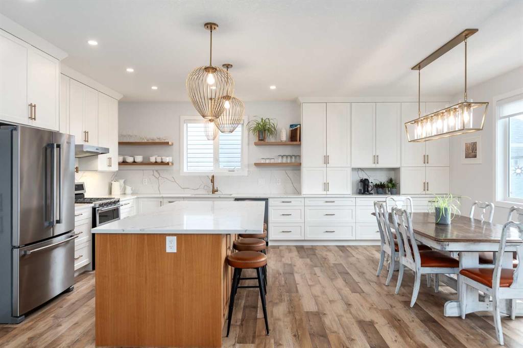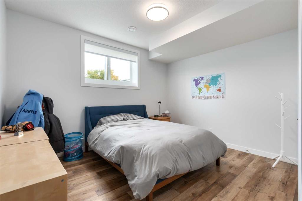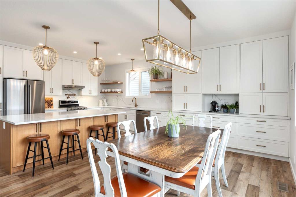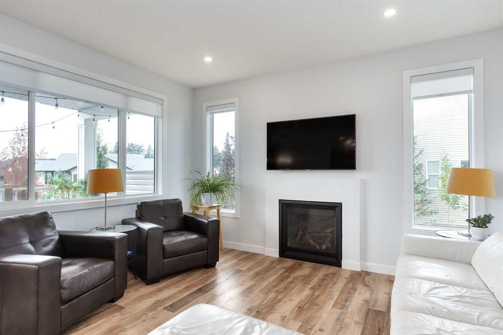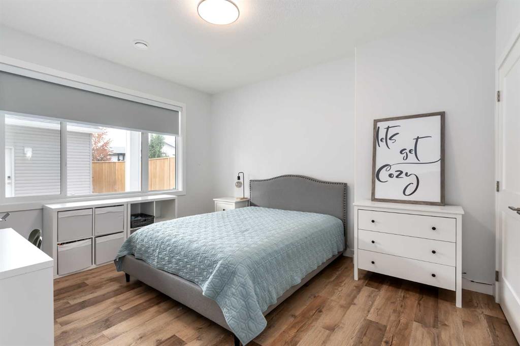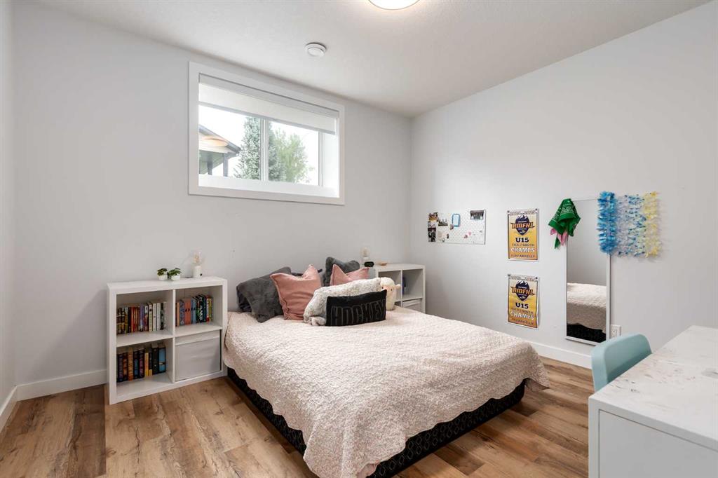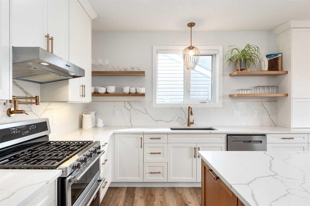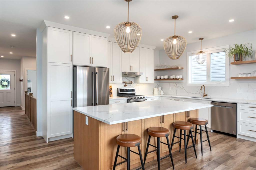 Five bedroom, 1400 sq ft high quality bungalow designed for a family. This home has an exceptional kitchen with beautiful high-end finishes, quartz counters and backsplash, large island, and an over-the-stove pot tap. The home is flooded with natural light and the dining room opens onto a private, covered upper deck. This level also has two bedrooms, including the spacious primary bedroom with a 5-piece ensuite and walk-in closet. Also on the main floor are the living room with cozy gas fireplace, 4-piece bathroom and a laundry room with built in cabinets. In the fully finished walk-out are 3 more bedrooms, 3-piece bathroom, and a 22' x 17’ family room. The yard has a large patio, is fully fenced, private, low maintenance, and has alley access. There is an oversized 32’ x 24’ garage that is insulated, painted, and has excellent lighting. Extras in this home include in-floor heating, central air conditioning, high efficiency boiler, and a water softener. Please click the multimedia tab for an interactive virtual 3D tour and floor plans.