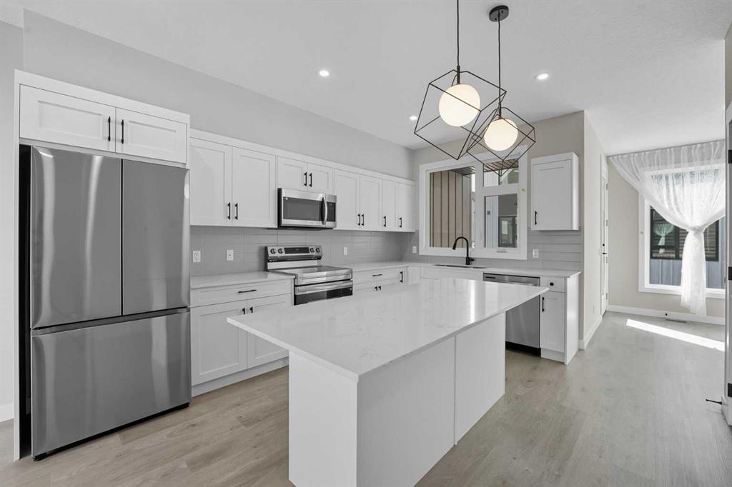 Open House Saturday January 17 1:00pm -3:00pm! This home, constructed by Logel Homes—an award-winning builder recognized as Calgary's most decorated multi-family developer—is situated in Sage Hill and offers a blend of quality and functionality. The residence is thoughtfully designed for both comfort and convenience. It includes four bedrooms and 2.5 bathrooms, providing ample space for families or guests. The southeast-facing orientation ensures abundant natural light throughout the home, enhanced by oversized windows and 9-foot ceilings on the main level. Residents enjoy breathtaking views overlooking an environmental reserve, bringing a sense of tranquility to everyday living. High-quality finishes are featured throughout, including full-height cabinets, elegant quartz countertops, beautiful, upgraded lighting fixtures, and stainless-steel appliances. Both a front patio and a covered rear deck extend the living space outdoors, perfect for relaxation and entertaining. This home is ready for possession and comes with no HOA fees, providing added value and flexibility for future homeowners. This house shows 10/10. Don’t miss your chance to call it yours!