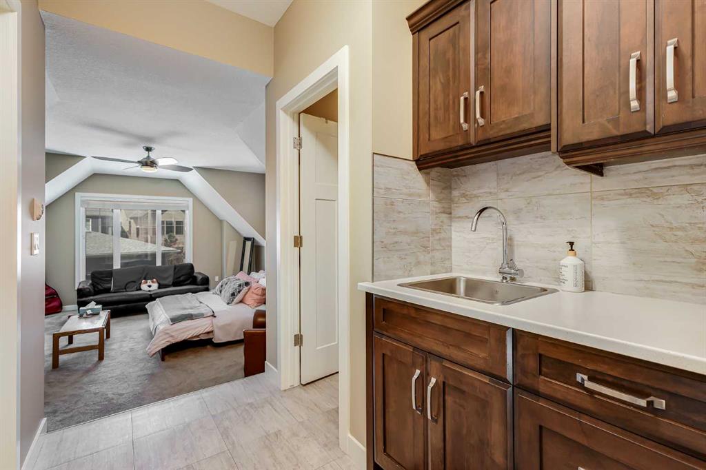 Welcome to 42 Cooperstown Court—a custom-built masterpiece in the prestigious Estate Community of Coopers Crossing, Airdrie’s premier boutique-style neighbourhood. Nestled in an exclusive cul-de-sac of just 27 executive homes surrounding a central park, this property isn’t just a home—it’s a lifestyle designed for families who value togetherness while embracing independence. From the outside, the home’s curb appeal is undeniable, highlighted by its rare rear-attached garage. But it’s what’s above that garage that truly sets this home apart: a second primary living space. More than just an addition, this studio-style retreat is a world of its own. Imagine a teenager ready for more independence, an aging parent who craves comfort and privacy, or a guest who deserves something extra special. With enough room for a king bed, desk, and couch, plus its own four-piece bathroom, walk-in closet, and charming dinette, it offers the perfect blend of connection and autonomy. It’s not self-contained—it’s still part of the home—but it feels like its own sanctuary. Back in the heart of the house, the gourmet kitchen steals the spotlight. With sleek quartz countertops, an induction cooktop, double wall ovens, built-in fridge, and custom cabinetry, this is where family meals turn into memories. The unique built-in dining table invites everyone to gather, while the spacious living room—with its fireplace, built-ins, and access to a fully enclosed deck—becomes the setting for late-night talks and weekend movie marathons. Upstairs, the main wing continues the story of family living, with three generous bedrooms and a primary suite that’s nothing short of a retreat. A 7-piece ensuite pampers with a freestanding soaker tub, dual vanities, a glass-enclosed shower, and even an outdoor shower—luxury with a dash of adventure. The fully finished basement extends the possibilities: a large recreation room for games and laughter, another bedroom and bath for visitors, and a workout room that could just as easily become a sixth bedroom if needed. Every corner of this home has been crafted with flexibility in mind, ready to grow and change with your family. Step outside to the west-facing backyard and you’ll find a private oasis framed by mature trees. Whether it’s roasting marshmallows around the fire pit, hosting summer barbecues, or simply soaking in the evening sun, this space was made for connection. Set in Coopers Crossing—renowned for its lush parks, scenic pathways, highly regarded school, and boutique-style Promenade—this is where luxury and community meet. 42 Cooperstown Court isn’t just a house. It’s a home built for generations—where grandparents can stay close, teenagers can have their independence, and everyone can find their own space while still being together.