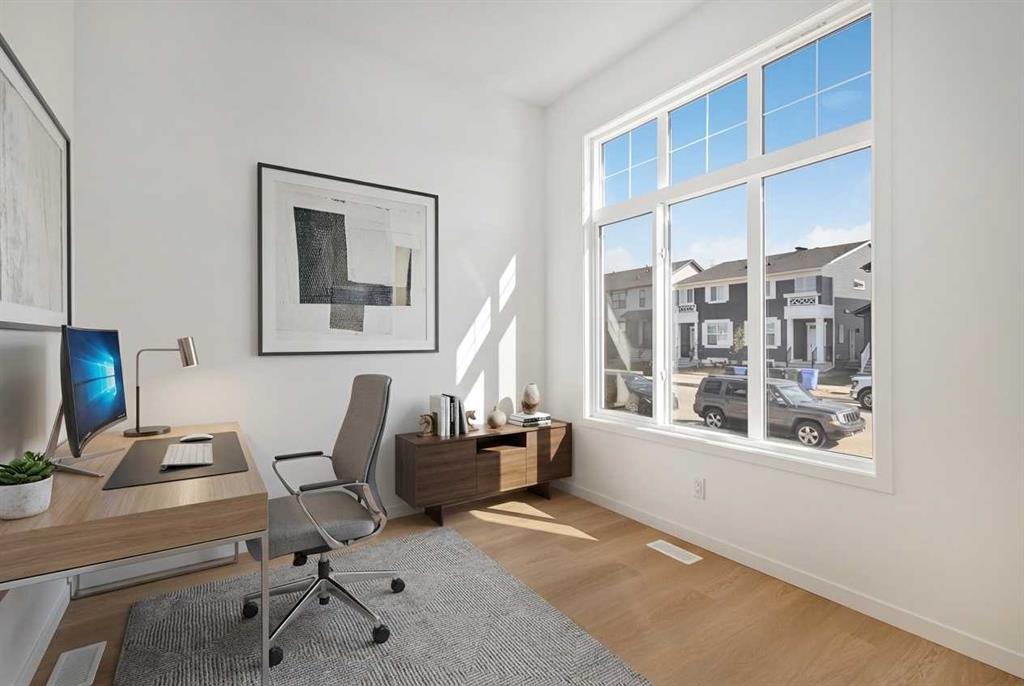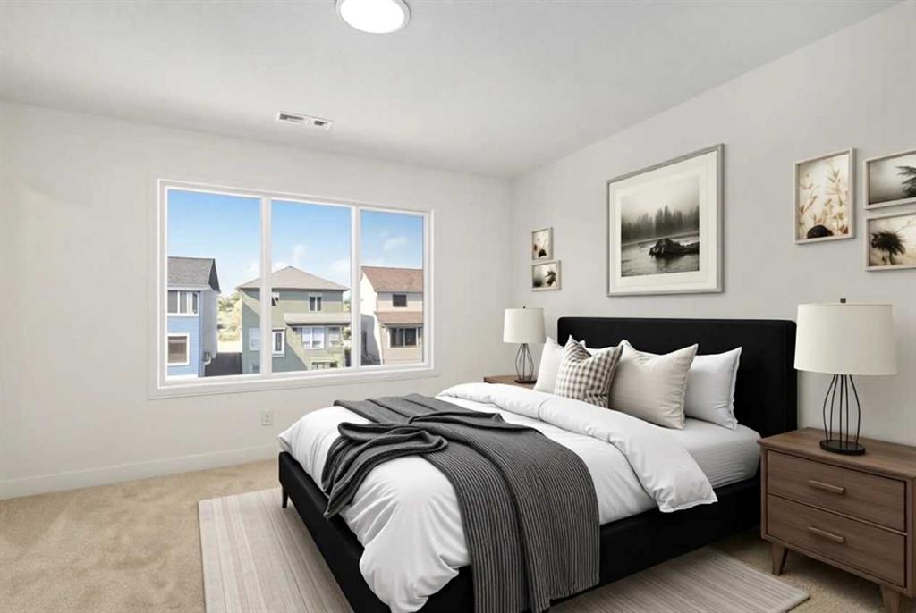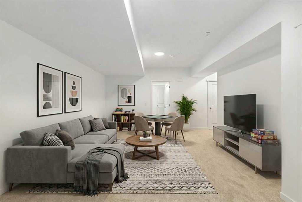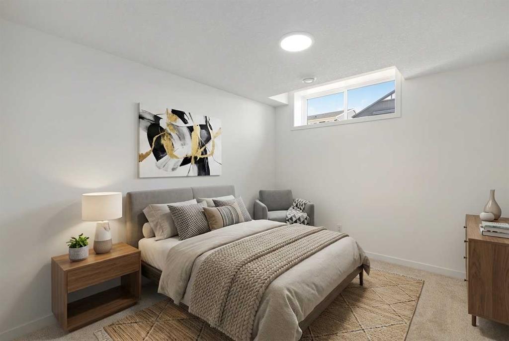 Boxing Day pricing starts NOW — brand-new specs, brand-new savings. Welcome to this brand-new “Lyall” floor plan, a beautifully crafted home that blends modern style with functional design. From the moment you step inside, you’re greeted by soaring 10’ ceilings and warm luxury vinyl plank flooring that flows throughout the main level. At the front, a versatile flex room offers the perfect space for a home office, reading nook, or play area. Moving toward the back, the open-concept living space unfolds with a bright and inviting living room, complete with an elegant electric fireplace, an oversized dining area ideal for family gatherings, and a stunning kitchen that serves as the heart of the home. The kitchen is a true showpiece, featuring timeless white cabinetry extended to the ceiling, quartz countertops, a hammered white subway tile backsplash that wraps around the sleek range hoodfan, stainless steel appliances, and a spacious island—perfect for both everyday meals and entertaining. Upstairs, a central loft provides a flexible second living space and creates separation between the primary suite and the additional bedrooms. The staircase is highlighted with modern black spindle railing, adding a contemporary touch to the home’s design. The spacious primary retreat includes a walk-in closet and a spa-inspired 4-piece ensuite with dual sinks. Two more bedrooms, a full 4-piece bathroom, and a convenient upper laundry room complete this level. The fully finished basement adds incredible value with two additional bedrooms, a large rec room, and a 4-piece bathroom. With a separate entrance, it’s roughed in for a wet bar and extra laundry. **This home also comes complete with full front and backyard landscaping, including sod, mulch on the side yards, and trees/shrubs in the front as per community guidelines. Located in the growing southeast community of Hotchkiss, this home offers more than just a beautiful interior. Residents here enjoy a family-friendly setting with scenic pathways, green spaces, and quick access to major routes like Stoney Trail and Deerfoot. You’re also just minutes away from the amenities of Seton, including restaurants, shopping, the South Health Campus, and recreation options. This is your opportunity to own a brand-new, move-in ready home in one of Calgary’s up-and-coming communities—complete with a finished basement and high-end upgrades that make it truly stand out.