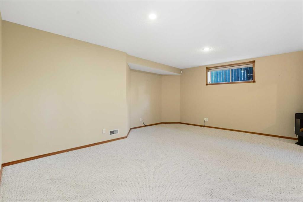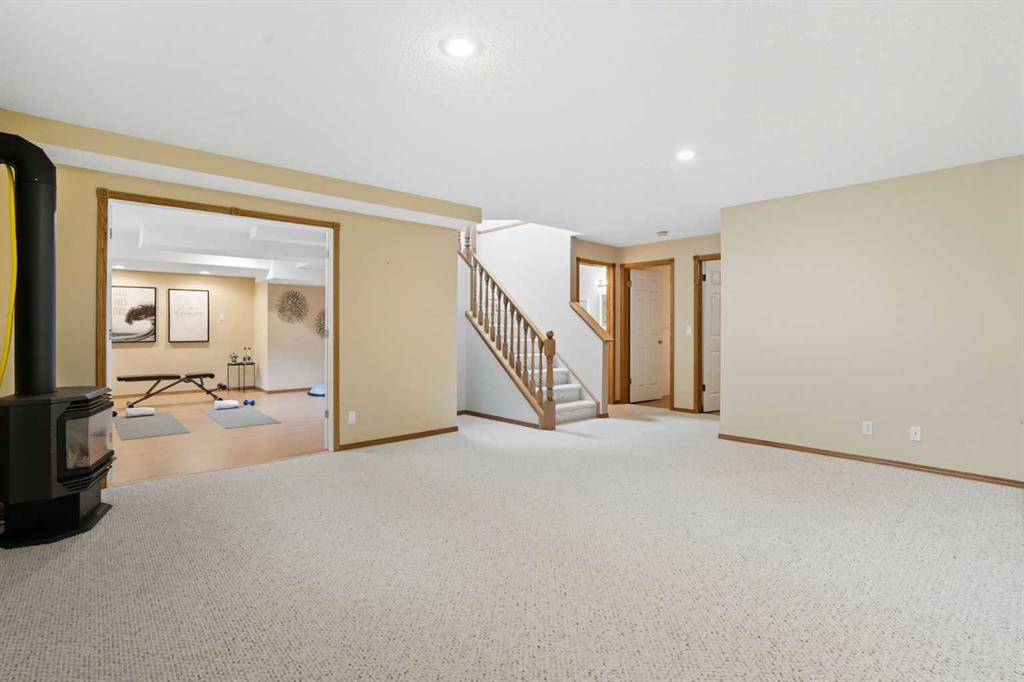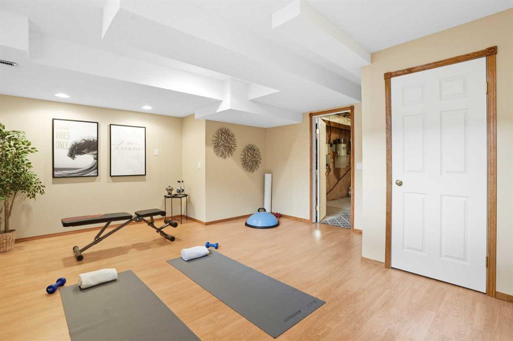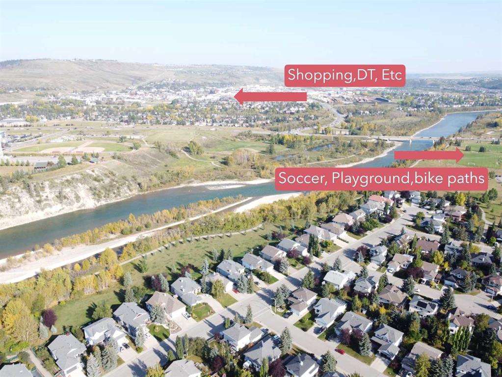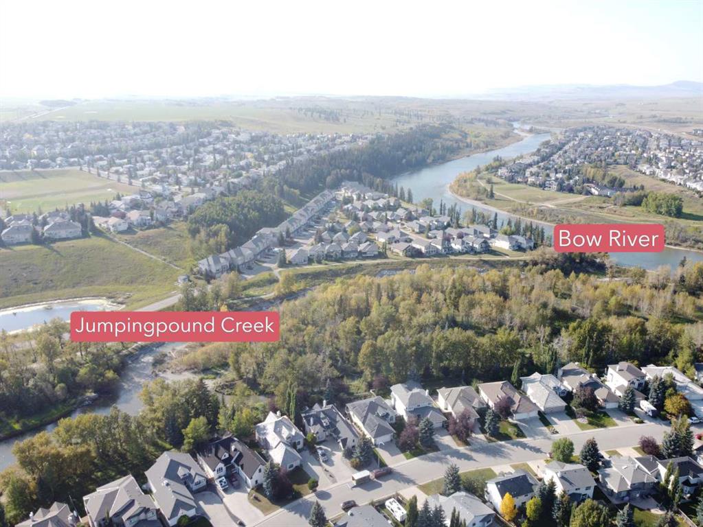 This beautifully updated bungalow in Bow Meadows perfectly blends comfort, style, and a serene natural setting. Soaring lofted ceilings with a skylight fill the main level with sunlight, complementing the warm maple hardwood floors and open-concept design. The refreshed kitchen features elegant quartz countertops, a modern backsplash, stainless steel appliances, and a corner pantry. The flexible formal dining room can easily serve as a bright office or cozy sitting area. The spacious primary suite includes a renovated ensuite and walk-in closet. Downstairs, the fully developed lower level offers a large recreation room with a second fireplace, a guest bedroom, a 3-piece bath, and a generous flex space that could easily become a 4th bedroom—all while maintaining excellent storage. Step outside to your private backyard oasis with lush landscaping, underground irrigation, mature trees, a Duradeck patio with BBQ gas line, and a hot tub for year-round enjoyment. The oversized double garage impresses with epoxy floors, 10’ ceilings, and a side-mount opener perfect for a car lift. Recent updates include: • Roof (approx. 5 years) • Hot water tank (2022) • Washer & dryer (2 years) Additional highlights: central vacuum, roughed-in water softener, two fireplaces, and peace of mind knowing this property is not located in the flood plain or flood fringe. Located just steps from the Bow River and Jumpingpound Creek pathways, downtown Cochrane, and local schools, this home offers privacy, sunlight, and lifestyle in one of Cochrane’s most sought-after communities.