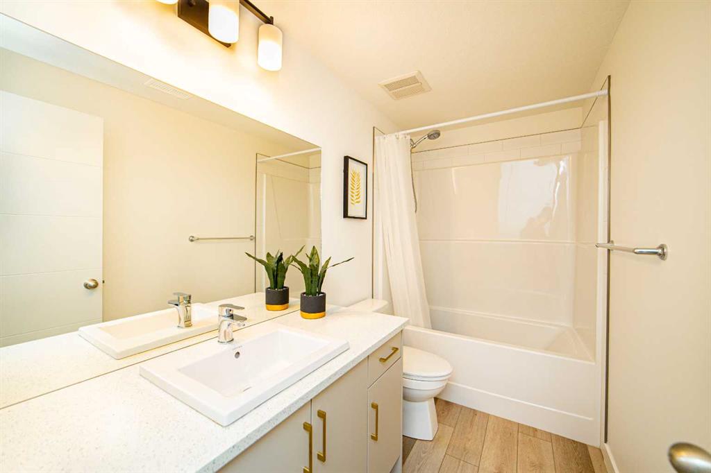 Welcome to functional urban living in the heart of Springbank Hill! This beautiful 2-bed, 2-bath end-unit stacked townhouse with a single attached garage offers over 1000 sq ft of stylish, low-maintenance living in one of Calgary’s most desirable communities. The home features a spacious front patio with A/C rough-in, an open-concept layout with large windows and vinyl plank flooring throughout, and numerous upgrades including quartz countertops, shaker cabinets with modern hardware, upgraded lighting, backsplash, sink, door hardware, and refrigerator. The primary suite includes a 4-piece ensuite, and a large closet, while the bright living room opens to a large private balcony with glass walls—perfect for relaxing or entertaining. Enjoy unbeatable convenience with low condo fees, a retail plaza within the complex, Aspen Landing Shopping Centre just across the street, and top schools like Webber Academy, Calgary Academy, and Rundle College minutes away. With easy access to 85 St SW, 17 Ave SW, Stoney Trail, and the 69 Street LRT station only 2 minutes away, this move-in-ready home is ideal for families, young professionals, or investors—don’t miss your chance to own in Springbank Hill!