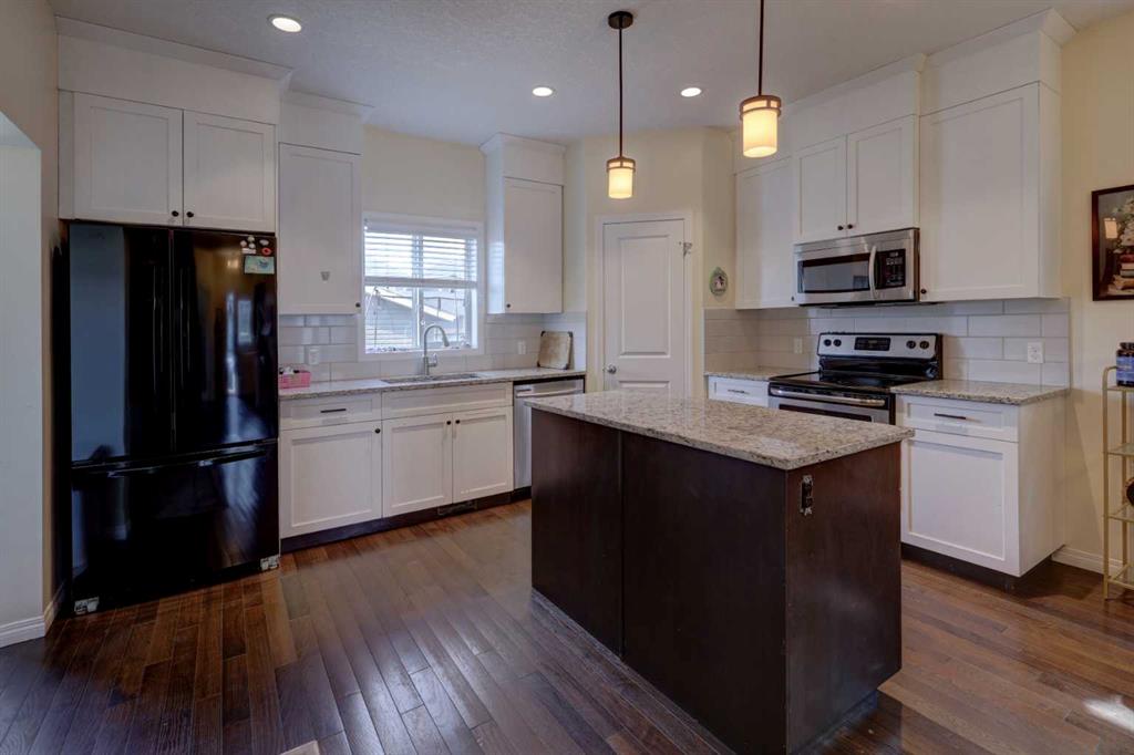WHY BUY NEW....IMMEDIATE POSSESSION || NEW PAINT || 23 x 23 DBL DETACHED GARAGE || Partially FINISHED BASEMENT || FENCED and LANDSCAPED ||....Family-friendly living awaits in the desirable Fireside community! Just steps from Fireside School (K-8) and Holy Spirit Catholic School (K-8), this home offers spacious comfort. This beautiful 3-bedroom, 2.5-bath home features over 1600 square feet of living space with a front office, partially finished basement, to the studs, and finished (23.2 x 23.1) double detached garage. The main level offers an open kitchen, dining, and living space with front office and a 2-piece bath. The upper level comes with two bedrooms, a 4-piece bath, and a spacious primary bedroom with a walk-in closet and 3-piece ensuite. The lower level is designed to accommodate a full bedroom, family room, bath, and storage area. Outside, enjoy a spacious back deck with green space for the kids to play and a cozy front porch for relaxation. Parks, playgrounds, and pathways are all part of the Fireside Family Plan. Don’t miss this must-see home—book your showing today!