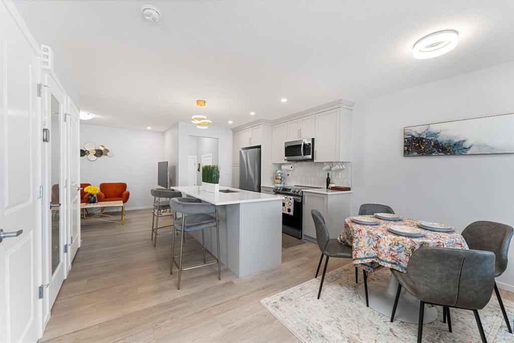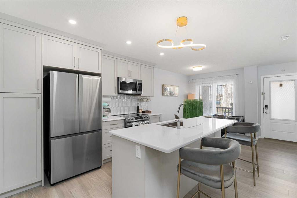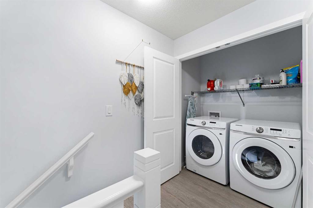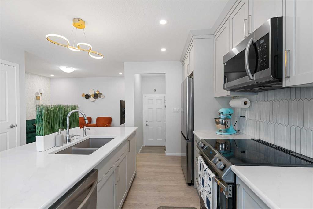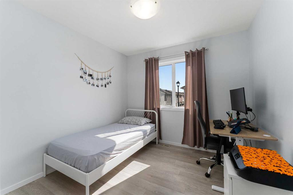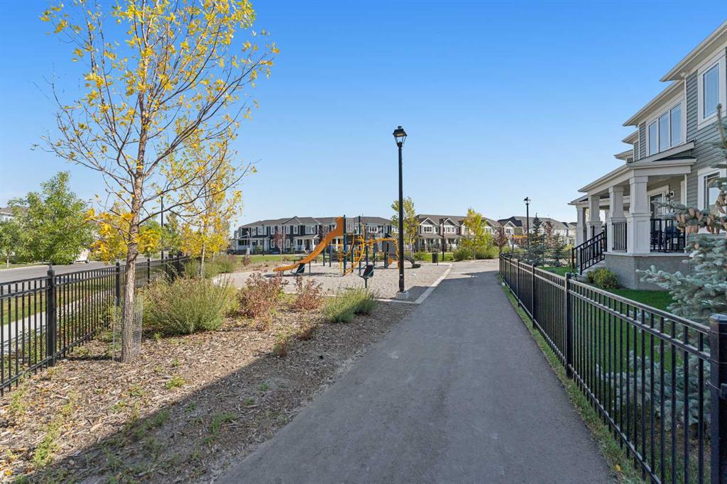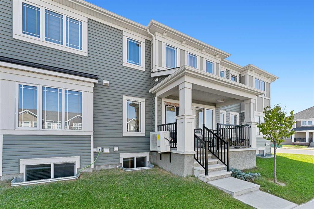 NO CONDO FEES - PLENTY OF UPGRADES FROM BUILDER STAGE - FULL HEIGHT CABINETS IN KITCHEN - 10MM GLASS SURROUND SHOWER IN PRIMARY SUITE - AIR CONDITIONING - STEPS FROM BRAND NEW SCHOOL AND TOT LOT. Welcome to the home you've been dreaming of! This stunning, custom-designed 2-story townhome is perfectly situated kitty corner from a brand-new school currently being constructed and taking applications soon, just a stone’s throw from Osborne Park and surrounded by everything you need in one of Airdrie’s most coveted family-friendly neighborhoods. Picture yourself sipping coffee on your covered front veranda, watching your kids stroll to school. Step inside to an open-concept layout flooded with natural light, sleek premium vinyl plank floors, and a stunning upgraded lighting package throughout. The kitchen is a chef’s dream with stainless steel appliances, pot lighting, full-height cabinetry, a large pantry with an embossed glass door, and a massive island—perfect for meal prep or gathering with friends. The living room invites you to relax and unwind while you enjoy your air conditioning on those hot days, with a cozy vibe that’s perfect for family nights. Off the living room, you’ll find a convenient 2-piece powder room and access to your oversized double garage, which is ideal for winter parking or your dream workshop. Upstairs, retreat to the spacious primary bedroom with peaceful neighborhood views, a walk-in closet, and a private en-suite featuring a gorgeous floor-to-ceiling tiled glass shower and quartz countertops. Two more generously sized bedrooms and another upgraded 4-piece bathroom give you endless options for family or home office space. Plus, the laundry room is conveniently located upstairs, and your rear-facing deck is the perfect spot to catch some fresh air. The basement is a blank slate with a bathroom rough-in and large window—ready for you to add your personal touch, whether that’s a gym, home office, or more living space. With all these incredible upgrades and an unbeatable location, this home won’t last long. Book your private viewing today!
