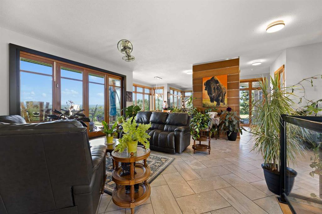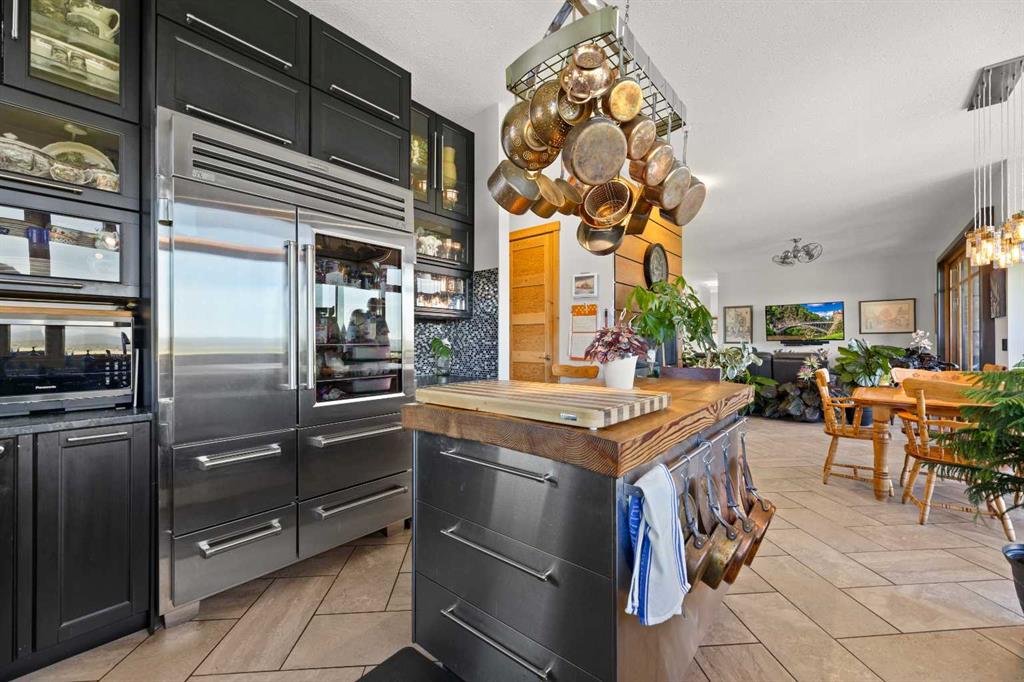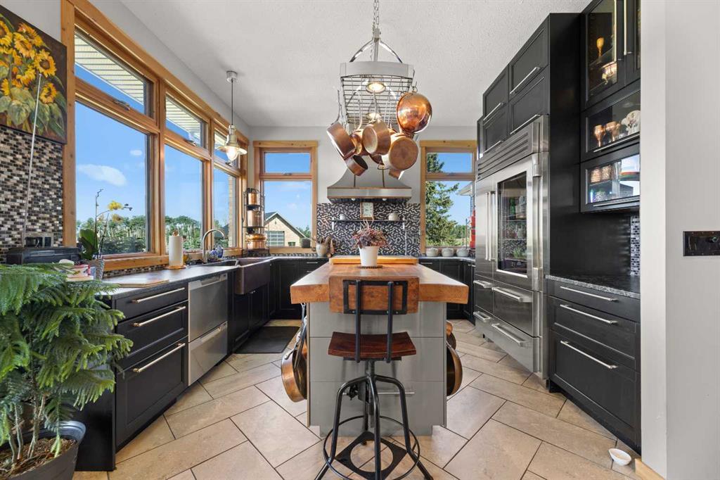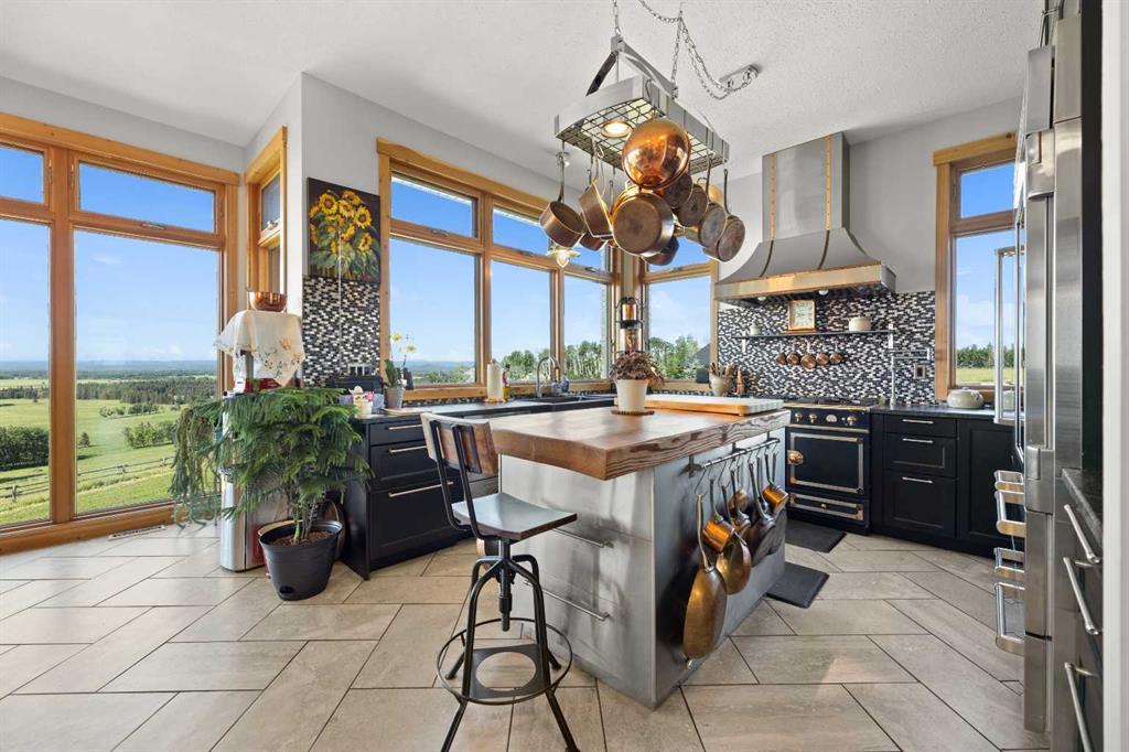 Set 300 feet above the Red Deer River valley, this CUSTOM-BUILT ESTATE blends striking design with unmatched durability. Just five minutes from Sundre, it showcases sweeping 100-mile vistas—among the very best MOUNTAIN VIEWS IN MOUNTAIN VIEW COUNTY—while offering the security of fortress-like construction. Situated on 20 ACRES, both the HOME AND SHOP feature FULL BRICK EXTERIORS and a 100-YEAR EUROSHIELD RECLAIMED RUBBER ROOF, providing maintenance-free protection that endures extreme weather. TRIPLE-GLAZED LOEWEN WINDOWS with steel exteriors and Douglas fir interiors maximize efficiency, while DUAL FURNACES and DUAL A/C UNITS ensure comfort in every season. Enjoy exceptional water quality from a high-producing well, known for its clean, fresh taste, further enhanced by a reverse osmosis system that provides an added level of filtration and peace of mind for everyday use. Inside, premium finishes define every space. The CHEF’S KITCHEN boasts SOLID CUSTOM CABINETRY, LEATHERED GRANITE COUNTERTOPS, TWO PANTRIES, a BUTCHER BLOCK ISLAND, SUB-ZERO 48” FRIDGE, and LA CORNUE 5-BURNER STOVE WITH DOUBLE OVEN. FLOOR-TO-CEILING WINDOWS and ACCORDION DOORS WITH PHANTOM SCREENS open to a LARGE WEST-FACING DECK, framing endless views. Throughout, 10-FOOT CEILINGS, 8-FOOT DOUGLAS FIR DOORS, and GRANITE FINISHES elevate the home’s timeless quality. The MASTER RETREAT features a PRIVATE DECK, WALK-IN CLOSET, and a SPA-INSPIRED ENSUITE with FIREPLACE, AIR-JET TUB, and WALK-IN SHOWER. A SECOND BEDROOM, OFFICE, BATHROOM, and LAUNDRY ROOM carry the same meticulous standard. The WALK-OUT BASEMENT impresses with 9-FOOT CEILINGS, IN-FLOOR HEATING, and ACCORDION DOORS opening to a STAMPED CONCRETE PATIO. The ATTACHED 27X27 GARAGE, level with the main floor, enhances convenience and accessibility. Outdoors, STONE RETAINING WALLS, FULLY RAIL FENCED, and a FULLY FENCED PERIMETER underline strength and security. The 30X60 HEATED SHOP includes IN-FLOOR HEAT, a BATHROOM WITH WALK-IN SHOWER, OFFICE, LAUNDRY, MECHANICAL ROOM, and UPPER STORAGE—a fully equipped space for work or hobbies. Additional features include a CATTLE WATERER, WATER HYDRANTS, SOLAR-POWERED GATE, and 17 ACRES OF PASTURE. The property offers YEAR-ROUND RECREATION: hiking, fishing, horseback riding, and whitewater rafting on the Red Deer River. With enduring infrastructure and timeless design, it delivers privacy, resilience, and exclusivity—yet remains only minutes from Sundre’s HOSPITAL, SHOPPING, AND AMENITIES.