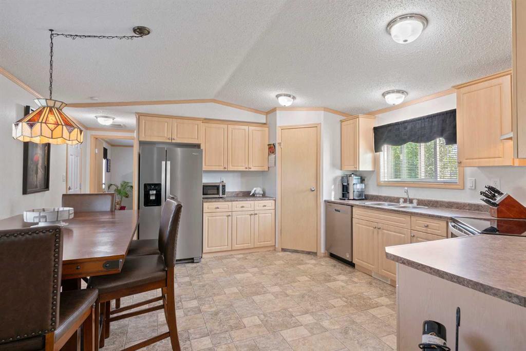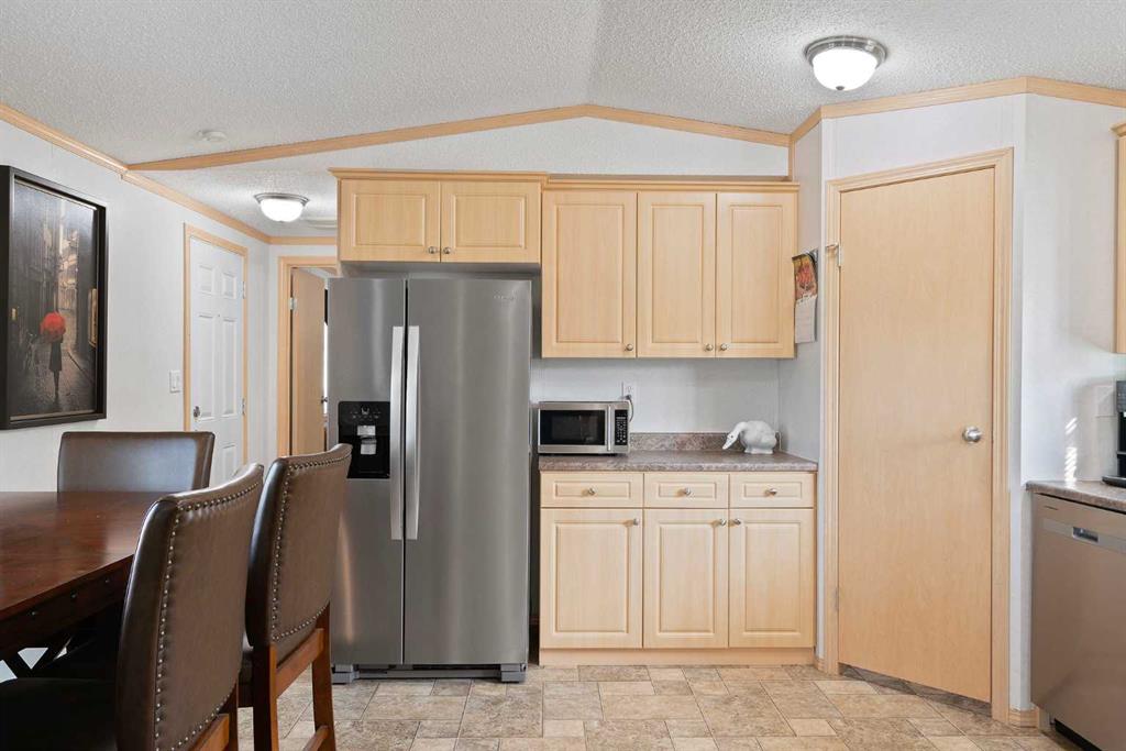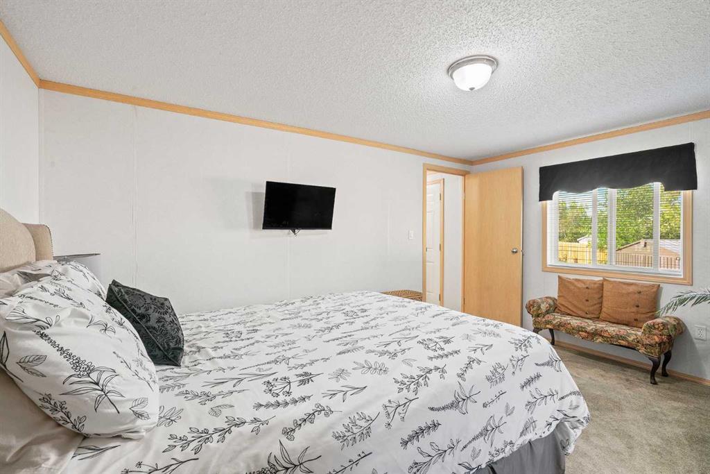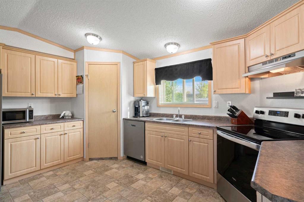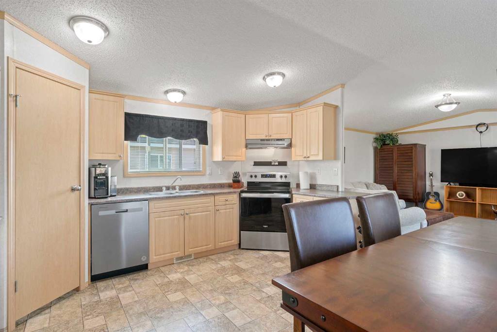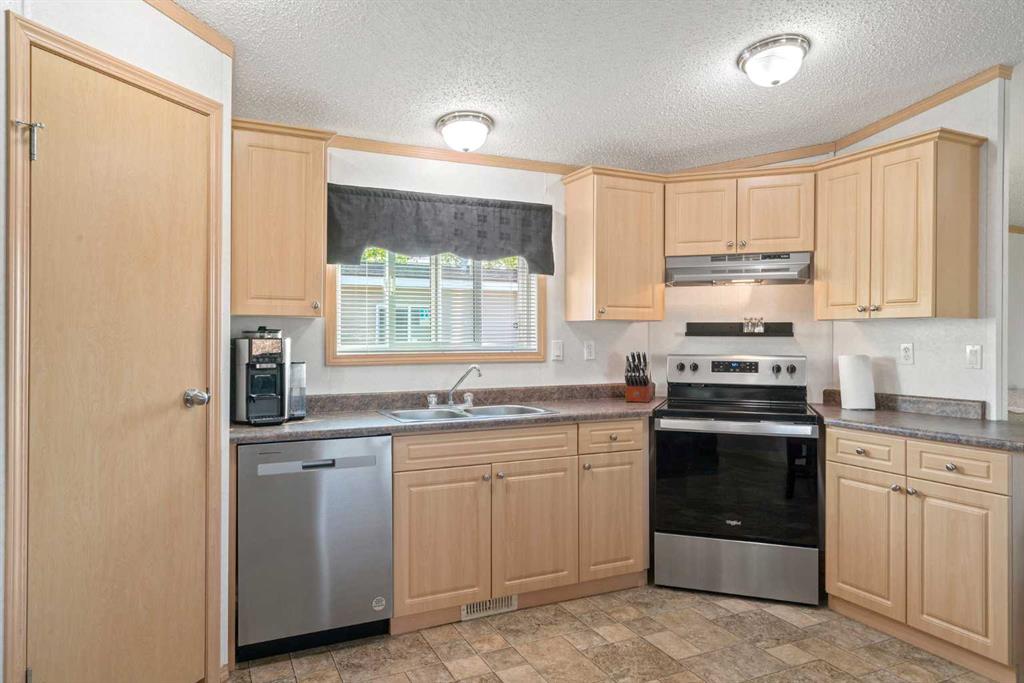 Step into a home that immediately feels comfortable and welcoming. With nearly 1,200 sq. ft. of living space, 3 bedrooms, and 2 bathrooms, the open-concept floor plan makes it the perfect place to gather for family dinners, host friends, or simply relax after a long day. An oversized living room window fills the space with natural light and looks out onto one of the largest lots in Calgary Village. This home was fully renovated inside and out in October 2023, giving you the peace of mind of a move-in ready property with all the big upgrades already taken care of. The roof was replaced with new sheathing, shingles, eavestroughs, and downspouts. All windows were upgraded to new double-glazed vinyl sliders, and both attic and wall insulation were redone—along with new belly insulation, heat trace, and heated water lines. Every wall and ceiling was refinished with new drywall (vinyl-coated walls for easy maintenance), and all interior and closet doors with organizers are brand new. The mechanical systems were updated as well, including new heat ducting, a central exhaust system, interconnected smoke and CO detectors, and electrical brought fully up to code with a new panel and breakers clearly marked for each zone. Plumbing was also redone to current code, with new shut-off valves and PEX supply lines. Both bathrooms feature new one-piece shower units, faucets, and insulated low-flush toilets. Inside, new subflooring, vinyl sheet flooring, and carpet were installed. The kitchen and bathrooms were refreshed with new cabinetry and vanities, paired with Whirlpool stainless steel appliances and a Whirlpool washer and dryer—all new in 2023. The upgrades continue outdoors with an oversized storage shed on patio stones, complete with built-in shelving, and brand-new sod laid in 2024—offering a fresh canvas to design the outdoor space to your liking. Parking for up to three vehicles adds convenience. Beyond the home itself, Calgary Village provides an outstanding lifestyle. Residents enjoy access to a gym, pool room, and community centre with a full-service BBQ area and gathering space for events. Visible 24-hour security patrols provide peace of mind, while Elliston Park across the street invites you to enjoy walking paths and bike trails. East Hills shopping, dining, Costco, and theatres are just minutes away, with schools and transit close by. Move-in ready with extensive renovations and incredible community amenities, this home combines comfort, value, and peace of mind—it’s more than a place to live, it’s a place to truly feel at home.
