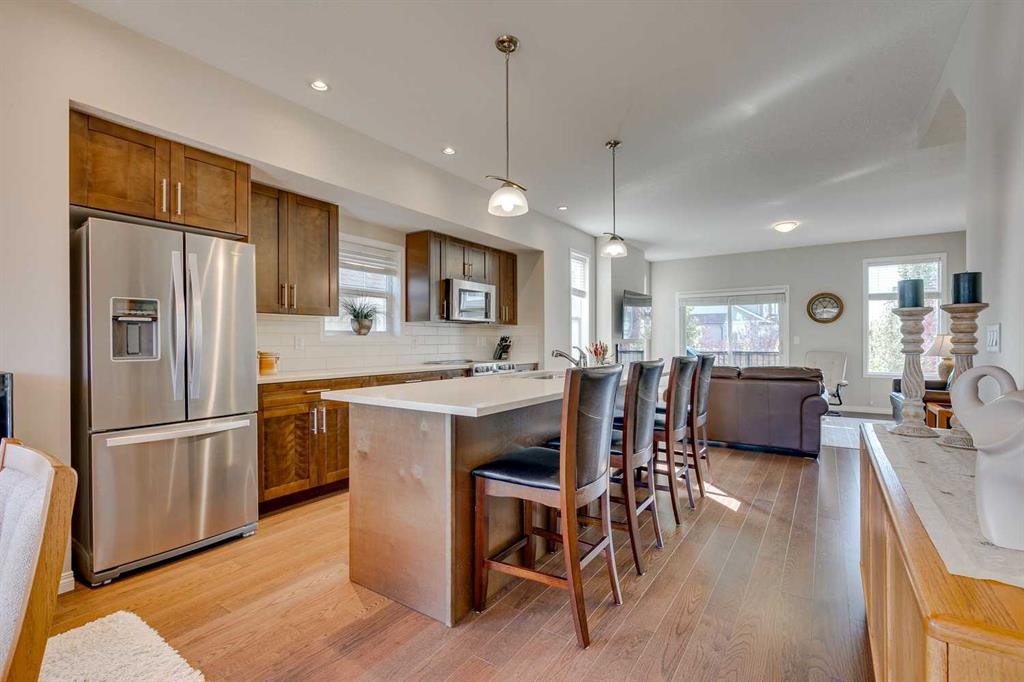 Welcome to 501-280 Williamstown Close NW, a beautifully upgraded 3-storey corner townhome in a well-managed complex. Built in 2014 and offering 1,706 sq ft of stylish living space, this home combines upscale finishes with the ease of low-maintenance condo living. The main floor was designed with entertaining in mind. Featuring nine-foot ceilings, engineered hardwood flooring, and abundant natural light, the space feels both modern and inviting. The chef-inspired kitchen is the heart of the home, showcasing quartz countertops, upgraded stainless steel appliances, and extensive cabinetry. The oversized island offers plenty of room for gathering, while the spacious dining area ensures there’s space for everyone. The living room is anchored by a sleek linear electric fireplace, creating a warm and welcoming focal point. Upstairs, you’ll find three well-sized bedrooms and the convenience of laundry exactly where you need it. The primary suite is a true retreat, complete with a walk-in closet and a spa-inspired ensuite featuring dual vanities and a walk-in shower. Every detail has been thoughtfully designed for both function and comfort. The entry level offers flexibility with a bonus living space perfect for a home office or family room, along with a full three-piece bathroom, additional storage, and direct access to the double attached garage with epoxy floors. Step outside to a private deck that overlooks the park — an ideal spot to enjoy your morning coffee or unwind at the end of the day. As a corner unit, this home also offers extra natural light and the bonus of street parking right outside your door. Located in Williamstown, you’ll love the easy access to shopping, schools, walking paths, pubs, and Deerfoot Trail. Move-in ready with recent updates including new carpet, this home delivers the upscale, low-maintenance lifestyle you’ve been looking for. Book your showing today and see for yourself why 501-280 Williamstown Close NW stands out in the market.