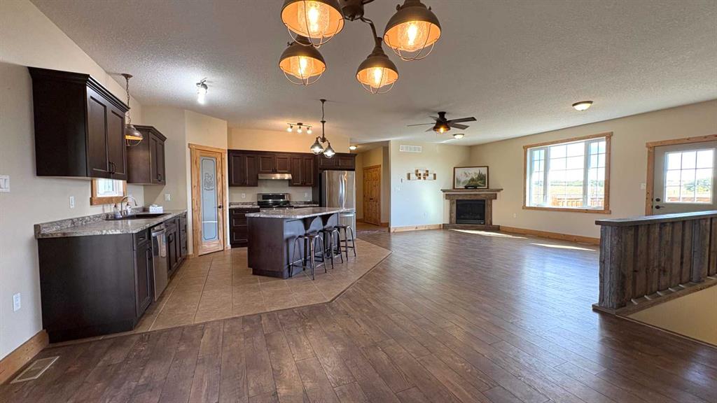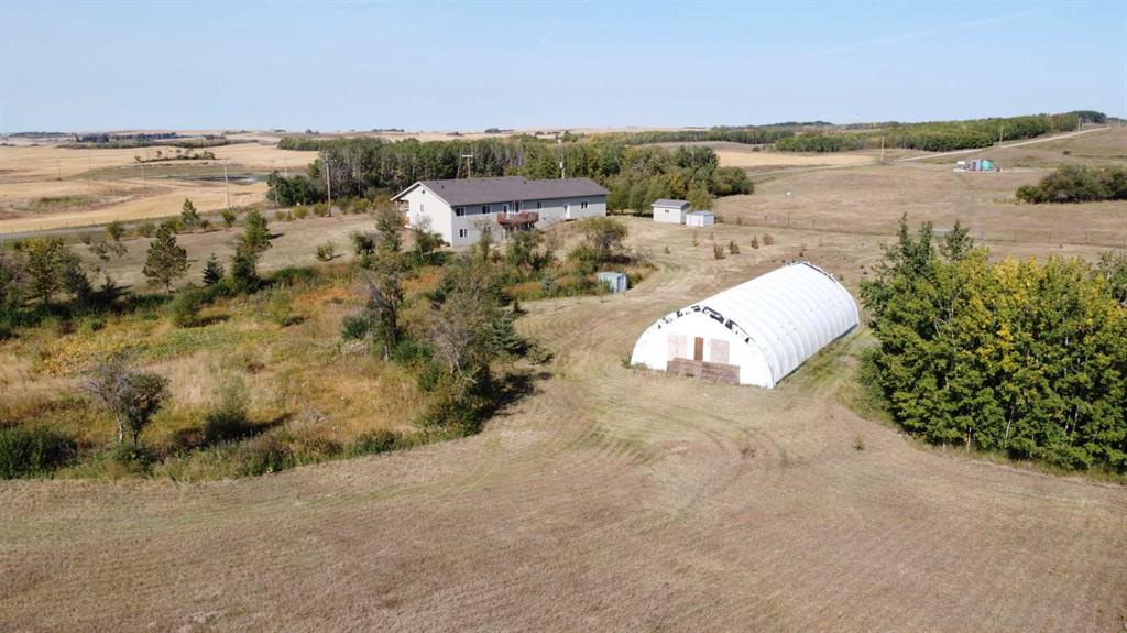 WOW! Beautiful home nicely nestled on a quiet 10.43 acres featuring 5 bedrooms and located just 10 minutes east of Wainwright! How can you not?! This 2015 home sports an attached, heated, triple car garage with direct access to both the main floor and the basement. Step onto the massive ranch style covered front porch and inside the large entrance and you'll immediately notice the rustic appeal that accompanies this property. Stroll past a convenient 2 pc. bath and the laundry room on your way to the centre of the home! Here you'll find a well laid out open concept kitchen, dining and living room space. A rear deck area with a great view is accessible from the living room. On the opposite side, you'll discover the primary bedroom with walk-in closet & 3 pc. ensuite. There is also 2 additional bedrooms and a 4 pc. main bath here. Pad your way down the stairs to enjoy a spacious family/rec. room with walk-out basement, garage access, 2 additional bedrooms, 3 pc. bath, storage spaces and 2 squeaky clean utility rooms! This home offers forced air heating plus additional in-floor heat for the ICF (insulated concrete forms) basement! Each floor enjoys a natural gas fireplace in the family/living room spaces for those cozy winter evenings! The backyard space is host to 3 handy sheds (1 with power) plus a 65' X 30' fabric shelter that will be perfect to house the RV's, boat's and much more! The property is "L" shaped with many trees and both sunrise and sunset views! If you're toying with acreage living....you really should have a look....call your favourite realtor today to arrange your showing! (Hey....Don't skip the attached 3D virtual tour of this property! ??)