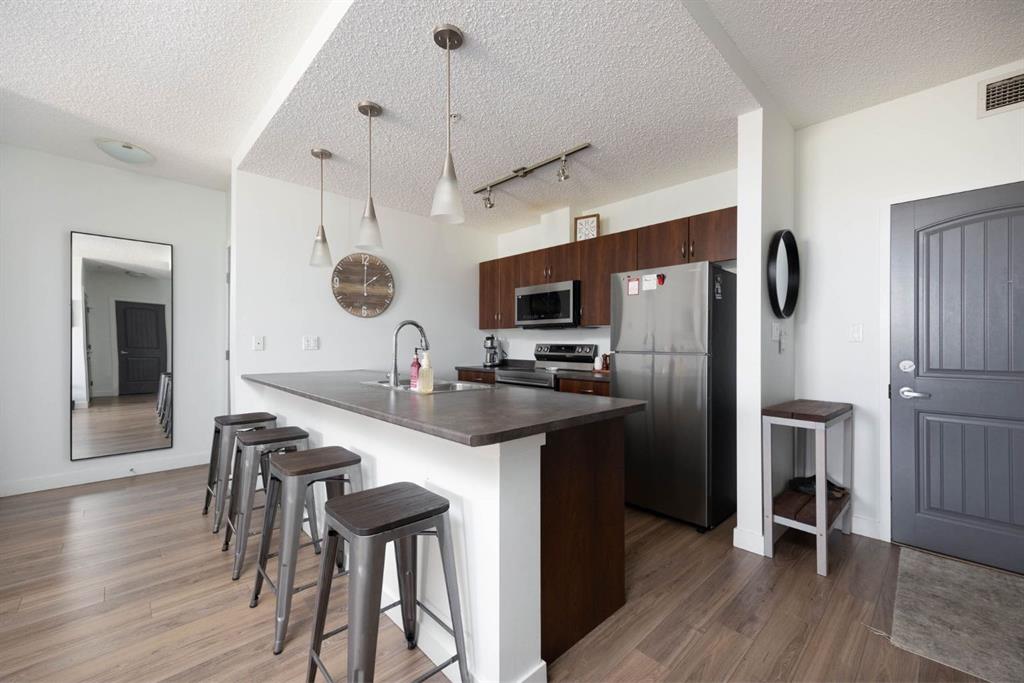 Welcome to 406-136 C Sandpiper! Move-in ready and freshly updated with new flooring and paint, this stylish 2-bedroom, 2-bath condo offers 1,093 SQ.FT of modern living space in one of Fort McMurray’s most desirable neighborhoods. The open-concept kitchen features rich dark cabinetry, newer appliances, and a large island that flows seamlessly into the living and dining areas—perfect for entertaining or working from home. Natural light fills the space, and on clear nights you’ll even enjoy front-row views of the Northern Lights right from your balcony. Both bedrooms come with walk-through closets for plenty of storage. The primary bedroom includes a private ensuite, while the second bedroom has direct access to the main bath—ideal for roommates, guests, or a home office setup. Convenience is everywhere with a storage room with in-suite laundry, and a tandem heated underground parking stall with an extra storage locker in the front. The building is designed with lifestyle in mind: soundproof concrete construction, a fitness room, car wash bay, secure heated parkade, and even A/C in the hallways for comfort. Outside, enjoy walking trails, green spaces, and nearby shops, restaurants, and transit. Condo fees cover almost everything—heat, water, sewer, garbage, snow removal, exterior maintenance, building insurance, and more—making budgeting simple. With quick possession available, this is your chance to own a stylish condo in a vibrant community.