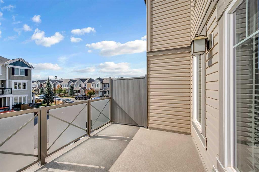 Beautiful 3 Storey Townhouse with NO CONDO FEES located in the family friendly community of Windstore, SW Airdrie! This home is in pristine condition with upgrades! Main level features an open concept plan including a beautiful kitchen with rich dark cabinetry complimented by stainless steel appliances, tile back splash & breakfast bar. A large living room with huge windows allow for an abundance of natural light to this great space. Dining room is spacious & has a patio door leading you to your sunny South facing private balcony with room for seating & BBQ. On the top floor, you will find a comfortable den perfect for a computer workspace & 2 good sized bedroom. The master boasts a 4pc ensuite with a cheater door & large walk-in closet! Ground level entry has plenty of room to sit & enjoy and also has a convenient laundry room, and utility room with ample storage & access to the over sized attached garage. This is a great house, perfect for the first time home Buyer or an Investor!