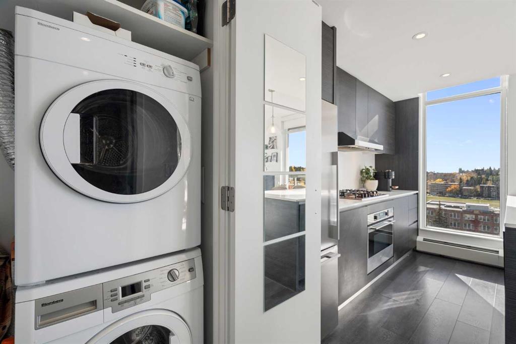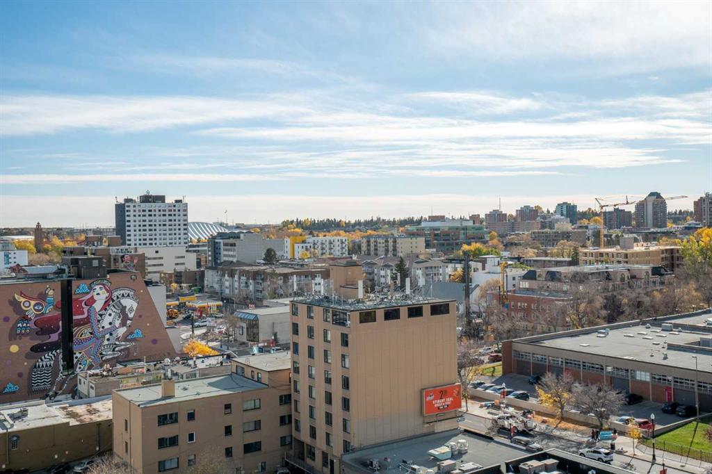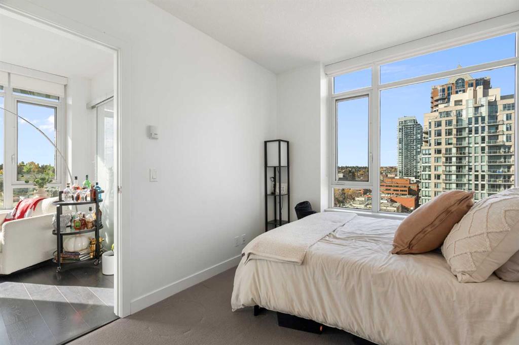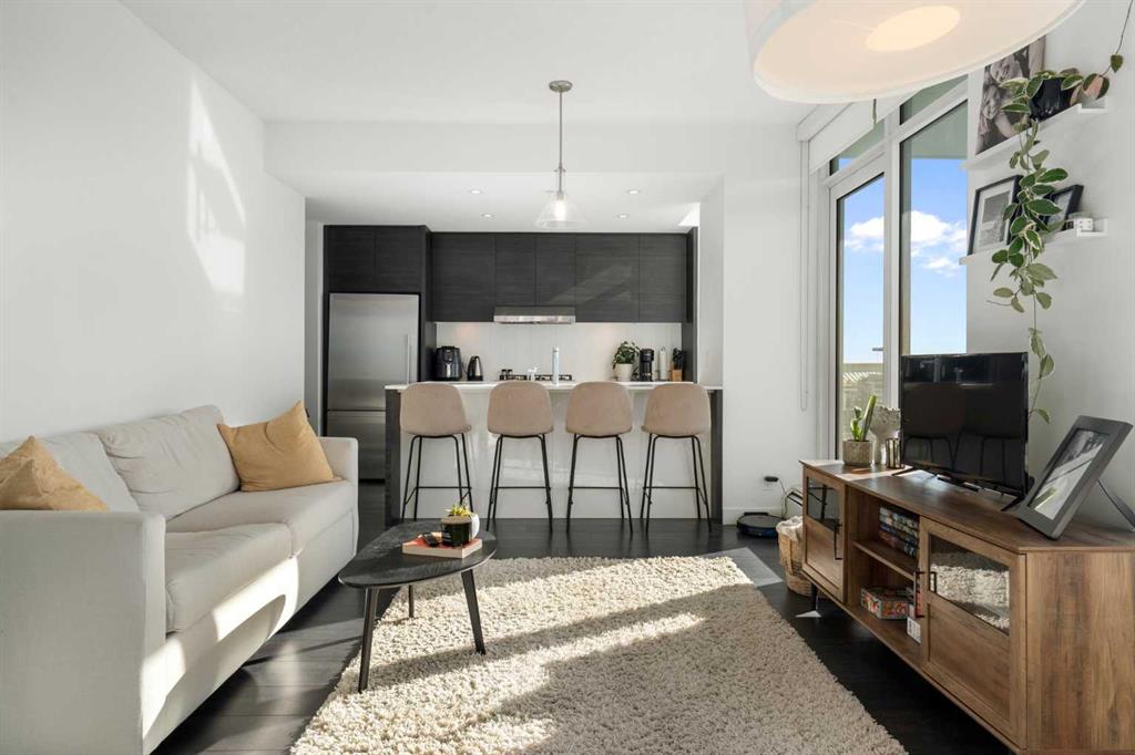 Experience Elevated Urban Living in The Smith! Welcome home to a space that instantly feels right. Bright, modern, and move in ready, this one bedroom plus den condo in Calgary’s sought after Smith Building offers more than just a place to live, it offers a lifestyle. From the moment you step inside, floor to ceiling windows pull your gaze across sweeping downtown skylines and toward the distant mountains. The sunlight pours in, energizing your mornings and softening your evenings, creating a daily backdrop that never gets old. Whether you're sipping your first coffee or unwinding after work, the view becomes a part of your everyday rhythm. The open concept layout flows effortlessly into a sleek, contemporary kitchen, where quartz countertops, stainless steel appliances, and a gas cooktop invite both casual cooking and dinner in with friends. It’s the kind of kitchen that makes hosting feel easy and everyday meals feel elevated. A versatile den gives you room to shape your lifestyle: a quiet home office, a creative corner, or a welcoming space for overnight guests. The primary bedroom, complete with a walk-in closet, offers comfort, calm, and thoughtful storage. A stylish 4 piece bathroom with in floor heating adds a touch of luxury, while insuite laundry brings true convenience to your daily life. With secure, titled underground parking and your own titled storage locker, you’ll enjoy peace of mind and the ease of coming and going in the heart of the city. And then there’s the neighborhood, just steps from 17th Avenue, where vibrant cafés, boutique shops, parks, and some of Calgary’s best dining options turn every day into an opportunity to explore. From morning runs to late-night desserts, your lifestyle expands far beyond your front door. This is more than a condo. It’s a home that blends style with comfort, energy with tranquility, and city convenience with breathtaking beauty. Don’t miss your chance to own a space that inspires and a view that never stops giving.