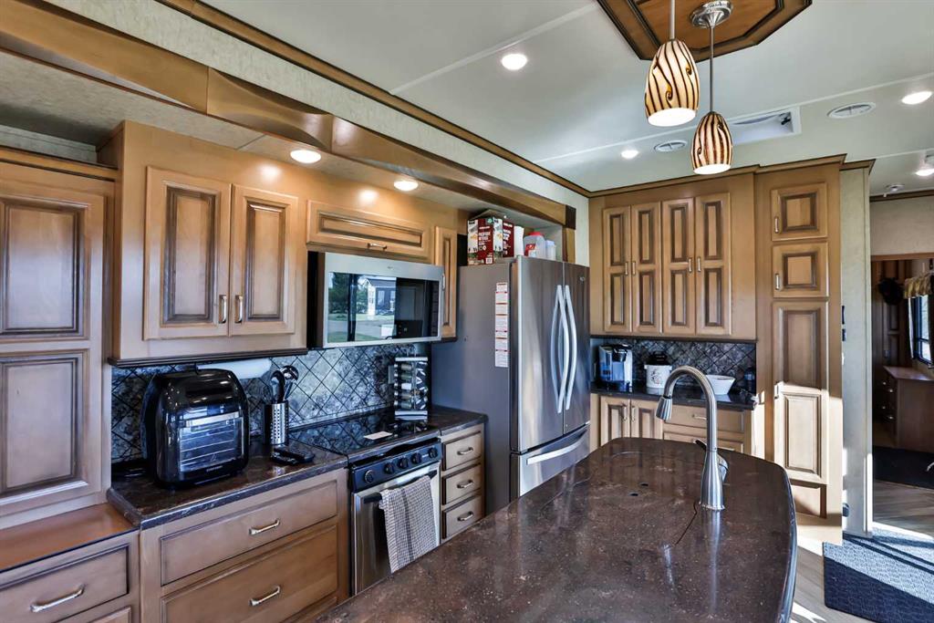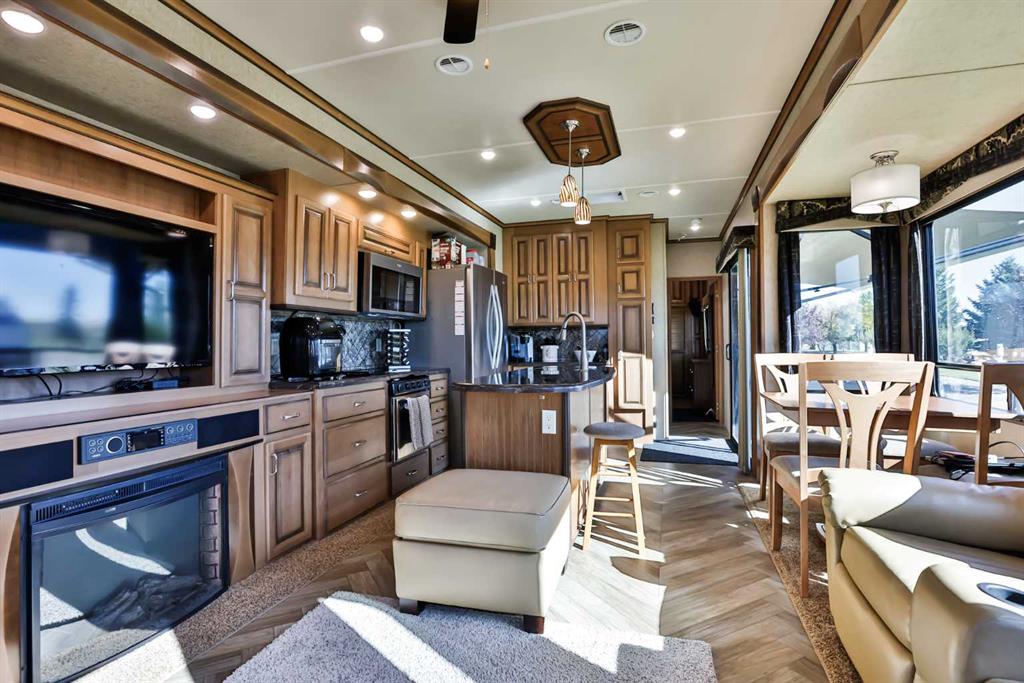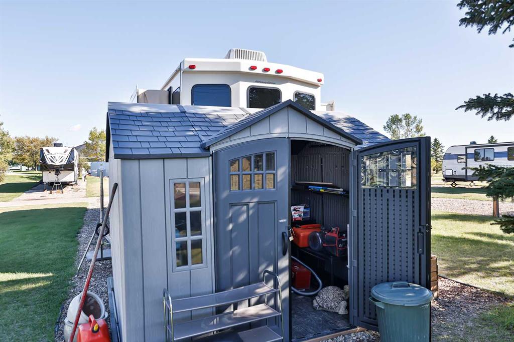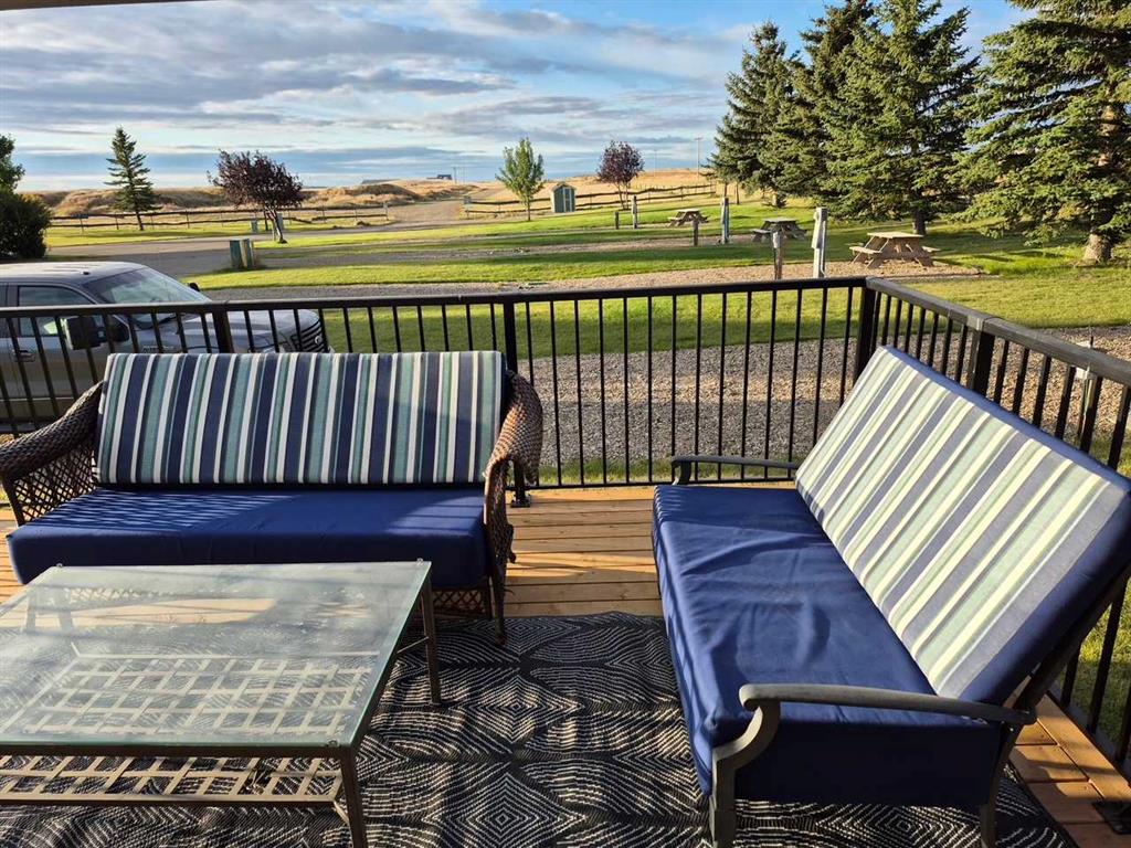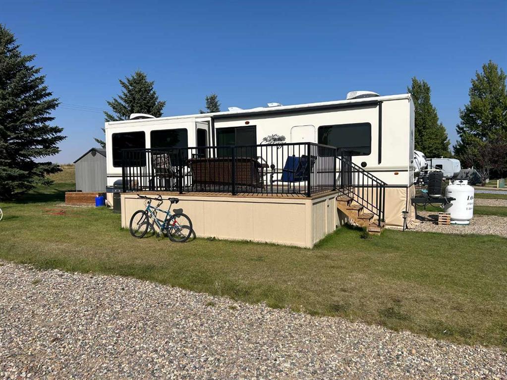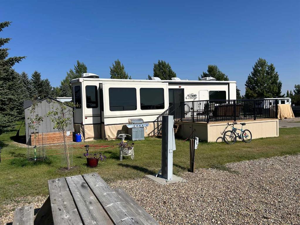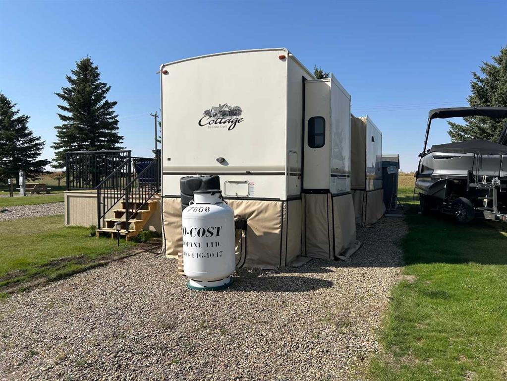 Lake Macgregor Country Estates offers the ultimate in recreational living! The amenities available in this development are truly impressive. With access to a private marina and beach, as well as both indoor and outdoor swimming pools, this community has it all. This charming "Cottage" by Cedar Creek, built in 2017, is a well-designed, four-season “Destination” home located on its own lot. The spacious bedroom accommodates a king-size bed and includes a full bathroom along with ample storage. The kitchen is equipped with a standard-sized fridge, an oven, and a dishwasher that have never been used, as well as a new over-the-range microwave. This home has been meticulously maintained and features vinyl flooring, carpeting, and Corian countertops. While there are hookups for a washer and dryer in the bedroom, the machines are not included; however, the resort does provide a laundry facility. This home also includes all the furniture, gas fireplace, and TV. Recently, the seller added a 16’ x 14’ pressure-treated deck with aluminum railing to the side of the home, enhancing the appeal of resort-style living. An awning provides shade and extra protection, making the space even more enjoyable. For just $300 a month, the HOA fee covers all the amenities offered by the resort, as well as water, sewer, and garbage. At the back of the home, there's an 8’ x 10’ Costco shed, perfect for storing seasonal items. Lake Macgregor Country Estate is a fantastic year-round community suitable for all ages and is the ideal getaway, just two hours from Calgary and one hour from Lethbridge. The resort features green spaces, tennis courts, a playground, and a clubhouse that includes a gym, a games room for children, a conference room, a lounge, a bar area, and boat storage. Escape the hustle and bustle of the city and experience this tranquil, recreational paradise. Contact your favorite REALTOR®? today to schedule a showing!