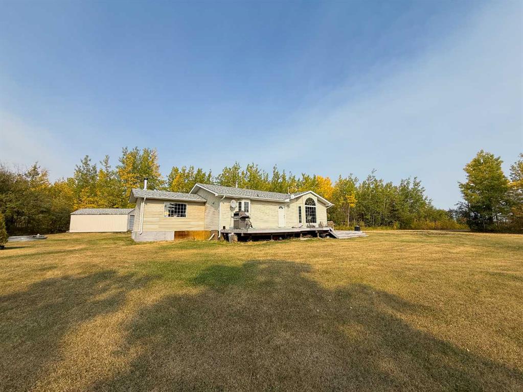 Peaceful country charm on 6.45 acres in Gordondale, Alberta! This 2-bedroom, 2-bathroom luxury modular home has been thoughtfully designed for comfort and style, with brand new shingles adding to its appeal. Inside, the open-concept kitchen, dining, and living area is filled with natural light under a vaulted ceiling. The kitchen offers an island, ample counter space, pantry, stainless appliances, and bright white cabinetry. The living room features warm hardwood flooring, creating a welcoming space to gather. A huge attached porch is a true bonus—complete with a wood stove, storage, and a cozy window seat, perfect for year-round enjoyment. The landscaped yard is dotted with mature trees and offers a lovely country view, making it an inviting outdoor retreat. Practical touches include a large storage shed with an overhead door and reinforced floor, along with central air conditioning to keep the home cool all summer. A well-maintained property in a private, serene setting—ready for you to make it your own. Call the agent of your choice for a private viewing!