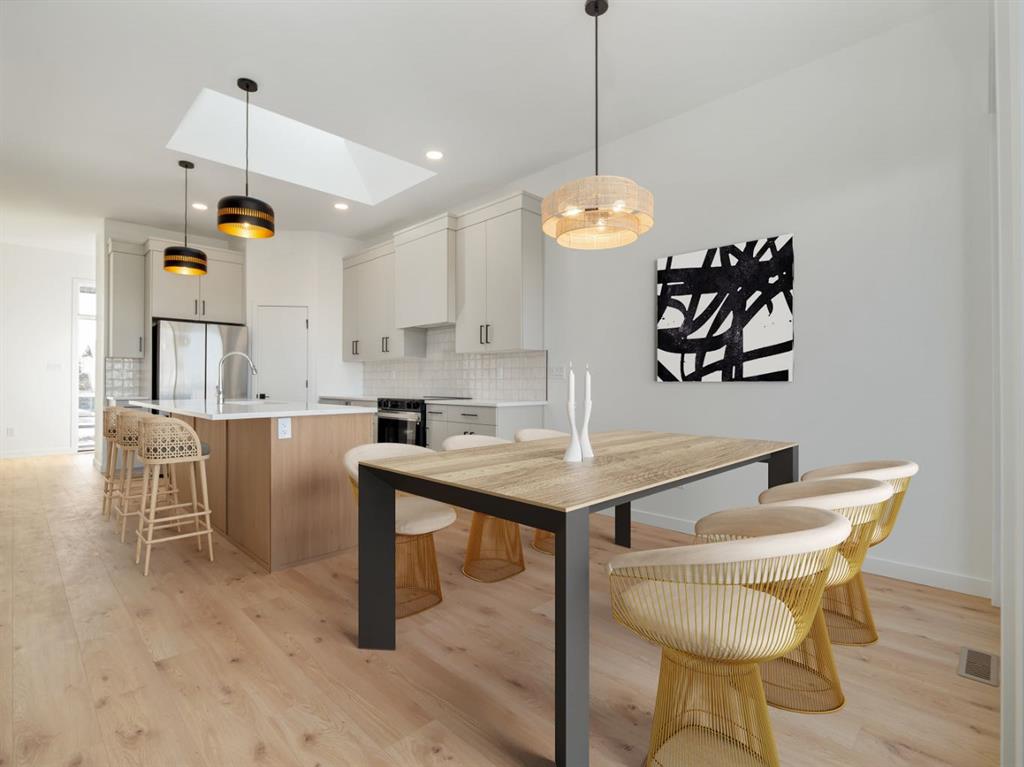 BUNGALOW LIVING RIGHT ACROSS THE STREET FROM LEGACY PARK. The Bennett is a beautiful 2 bedroom, 2 bathroom bungalow combining modern elegance with thoughtful design. the striking exterior features dark brown faux wood, metal accent siding, sleek black windows, a matching black garage door, and stylish beige stone accents that boast curb appeal. Inside you will find warm , contemporary finishes including Beige painted MDF cabinetry, blond wood textured melamine, and stainless steel Kitchen appliances that perfectly compliment the upgraded white quartz countertops with subtle grey veining in both the kitchen and ensuite. Custom touches like a built in bench in the entryway and a cabinet hood fan add both style and function. The ensuite showcases, glossy white textured shower wall tiles, while matte black designer light fixtures provide a bold modern contrast throughout. cozy up by the 60" Electric fireplace with a beige textured tile surrounding.The basement is undeveloped but set up for large family room, 2 more bedrooms and another full bathroom. You will love the laundry/ Mudroom located just off your 22' x 24' garage. Perfectly situated right across from Legacy Park, with convenient access to all essentials and just a quick 5 minute drive to a nearby dog park. Bungalow living across from a park doesn't come along very often. NHW