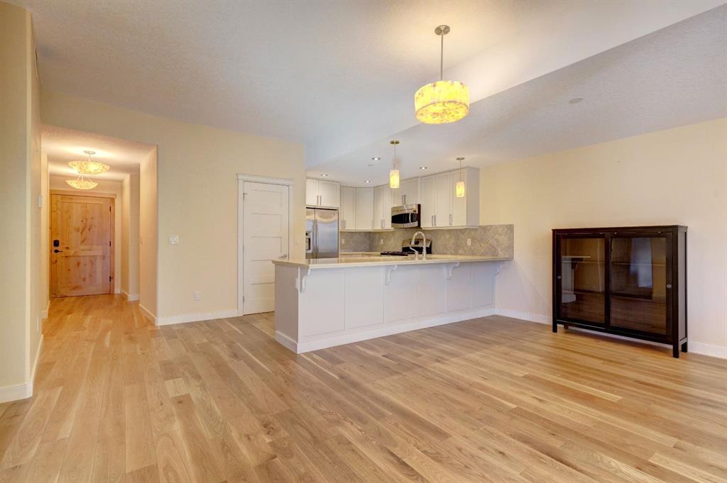 Luxurious apartment with downtown convenience! Experience the best of downtown convenience with this spacious, south-facing, single-level condo. Featuring two bedrooms plus a generous den, this home offers an open-concept layout with upscale finishes throughout. The main living area includes newly redone hardwood flooring. Relax by the cozy stone fireplace while enjoying breathtaking views of the iconic Three Sisters—visible from both the living room and the sun-soaked south-facing deck. The gourmet kitchen is a chef’s dream, complete with custom cabinetry, quartz countertops and stainless steel appliances. Both bedrooms include private ensuites and walk-in closets, while the large den offers flexible space for a home office or guest room. Additional highlights include in-suite laundry, ample storage and a dedicated parking stall. Amazing location footsteps to many of Canmore's attractions including shopping and dining plus numerous walking and biking trails.