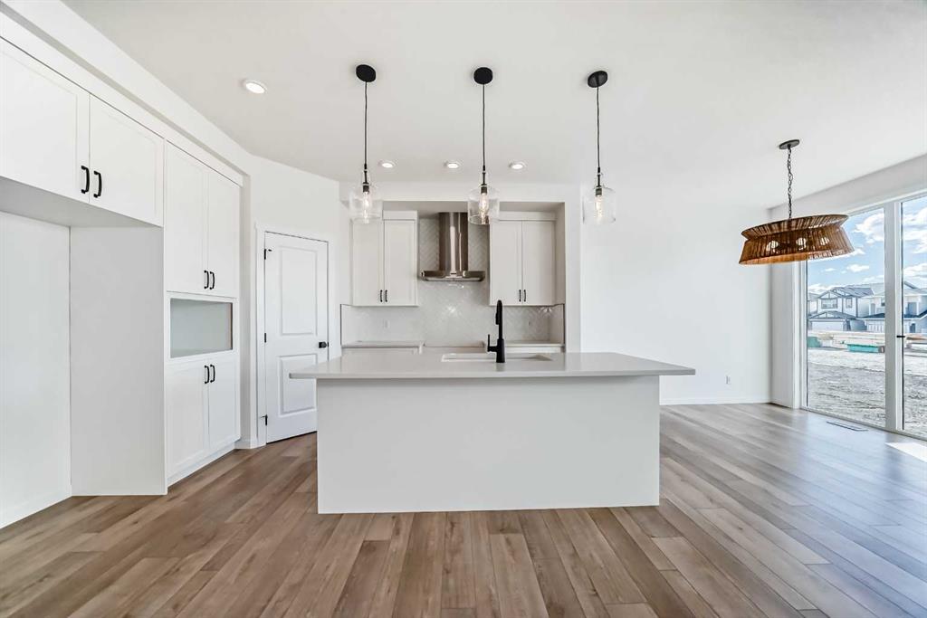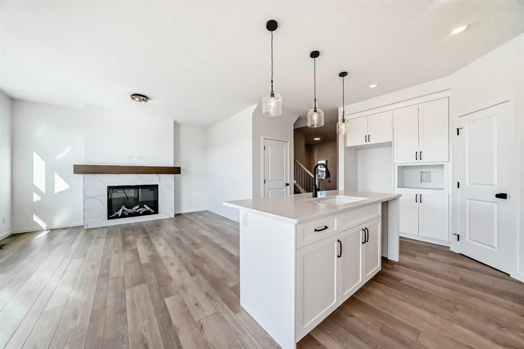 PROMOTION PRICE ON NOW AFTER BUILDER INCENTIVE !Welcome to 158 Appaloosa Crescent, a stunning Daytona Homes build nestled in the beautiful town of Cochrane. Offering over 1,800 square feet of carefully crafted living space, this detached home combines modern design, everyday function, and timeless comfort. With a double attached garage, 3 bedrooms, 2.5 bathrooms, and an undeveloped basement with a rough-in for future development, it is ready to meet your family’s needs today and tomorrow. The main floor sets the tone with a welcoming open foyer and a practical layout designed for busy households. From the garage, step into a convenient mudroom that connects directly to the walk-through pantry and into the expansive kitchen. This chef-inspired space is paired with a bright dining nook and a large great room featuring an electric fireplace, creating a warm and inviting atmosphere for family gatherings and entertaining. A stylish powder room is thoughtfully located near the foyer, completing the main level. Upstairs, thoughtful design provides both comfort and flexibility. At the back of the home, two generously sized bedrooms share a 4-piece bathroom. A central bonus room separates the secondary bedrooms from the primary suite, offering privacy along with a versatile space for movie nights, playtime, or a home office. A dedicated laundry room adds everyday convenience. At the front of the home, the expansive primary retreat offers a spa-like 5-piece ensuite with dual sinks, a soaker tub, and a walk-in shower, paired with a large walk-in closet for all your wardrobe needs. The undeveloped basement comes complete with a rough-in and awaits your creative vision, whether that means a recreation room, home gym, or additional bedrooms. Cochrane is a community that blends small-town charm with easy access to both Calgary and the Rocky Mountains. With local trails, parks, and family-friendly amenities close by, you can enjoy a lifestyle that balances convenience with natural beauty. With Daytona Homes’ renowned craftsmanship and the welcoming spirit of Cochrane, 158 Appaloosa Crescent is a home where you can plant roots and create lasting memories.
