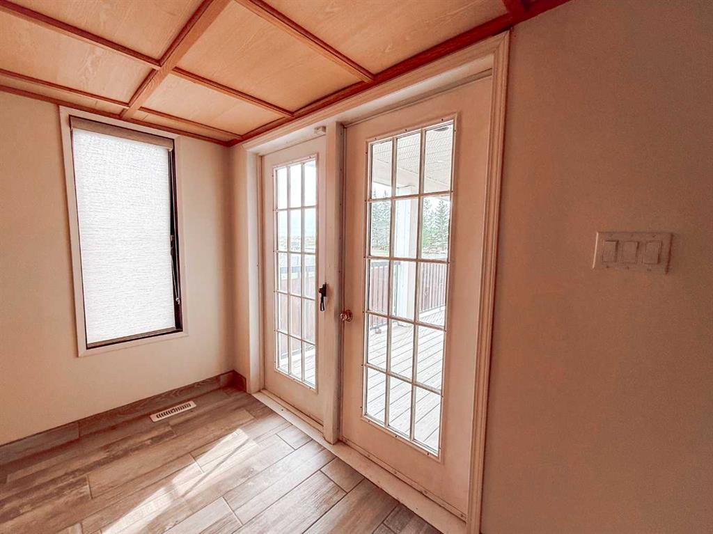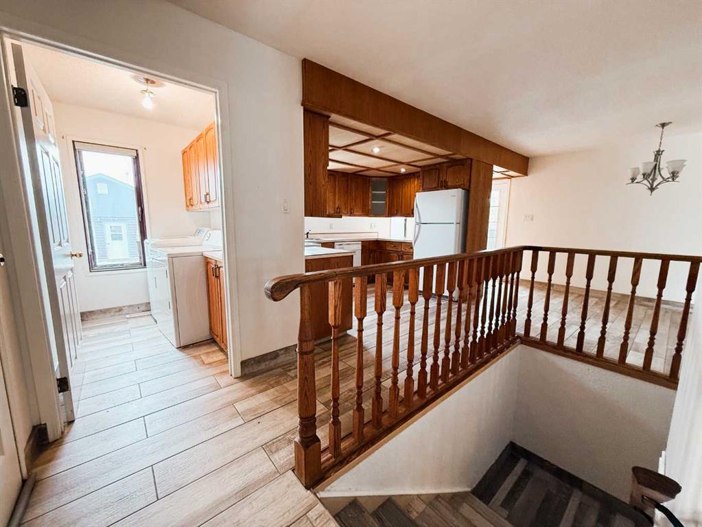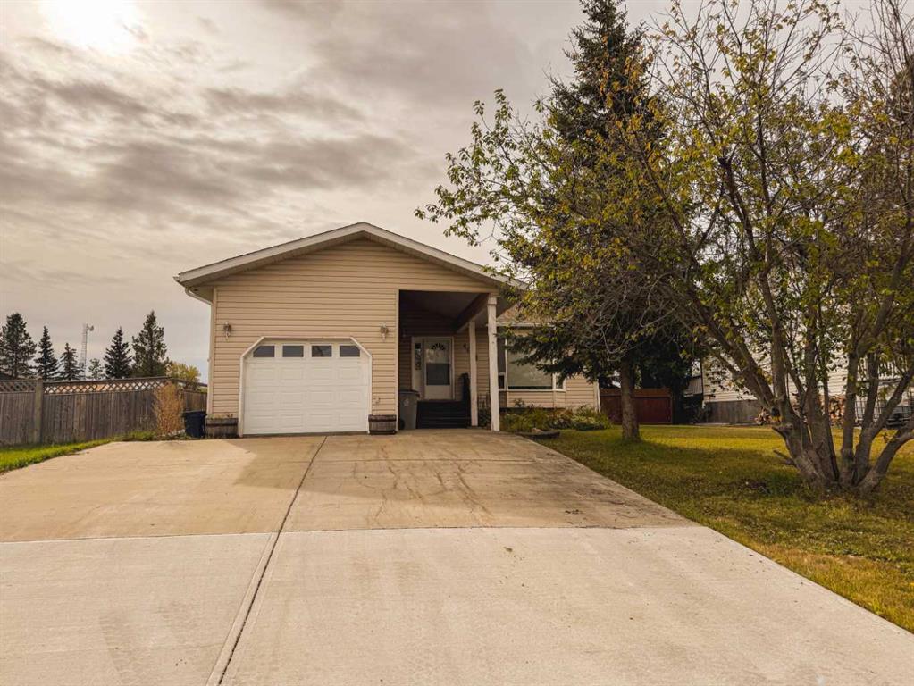 Welcome to this charming family home in the heart of Rycroft — where rural warmth meets community convenience. The home sits on a good-sized lot with mature trees and backs on to a park with playground. The property offers an ideal layout for multigenerational living or entertaining. The home boasts 3 bedrooms and a 4-piece bath upstairs, plus a lower level that features a fourth bedroom, a 3-piece bath w/tub, and a spacious entertainment room with a dry bar. Add to that abundant storage throughout, and you’ve got a home designed for everyday life. The upper level is bright and welcoming, with a bay window in the living room, dining area with garden-door access to a covered composite deck, and oak cabinet kitchen that comes with fridge, stove and dishwasher, serves as the hub of the home. Laundry room is conveniently located upstairs as well. Outside, the sun-drenched south-facing backyard includes a large sundeck that steps down toward the yard, where you’ll find raspberry bushes and a practical shed. Oversized parking pad and attached garage give you flexibility for vehicles or toys. Inside, key updates include new tile flooring in the main living areas, fresh paint, a newer high-efficiency furnace, and newer shingles. The home also features a chimney from a past fireplace that offers the opportunity for possible future revival, if desired. Rycroft delivers a peaceful, community-spirit lifestyle while keeping you connected. The village offers grocery, gas, local restaurants, convenience stores, and essential services. Outdoor recreation is right at your doorstep: enjoy nearby parks, the Rycroft Arena, Kin Park, and easy access to historic Dunvegan Provincial Park, just a short drive away. While rural, Rycroft is only 64km north of Grande Prairie, giving you access to full urban amenities within an hour’s drive. This home strikes a rare balance: the tranquility and space of rural living, paired with strong bones, smart improvements, and ready access to community and nature. Don’t miss your chance to make it yours! Call to view today!