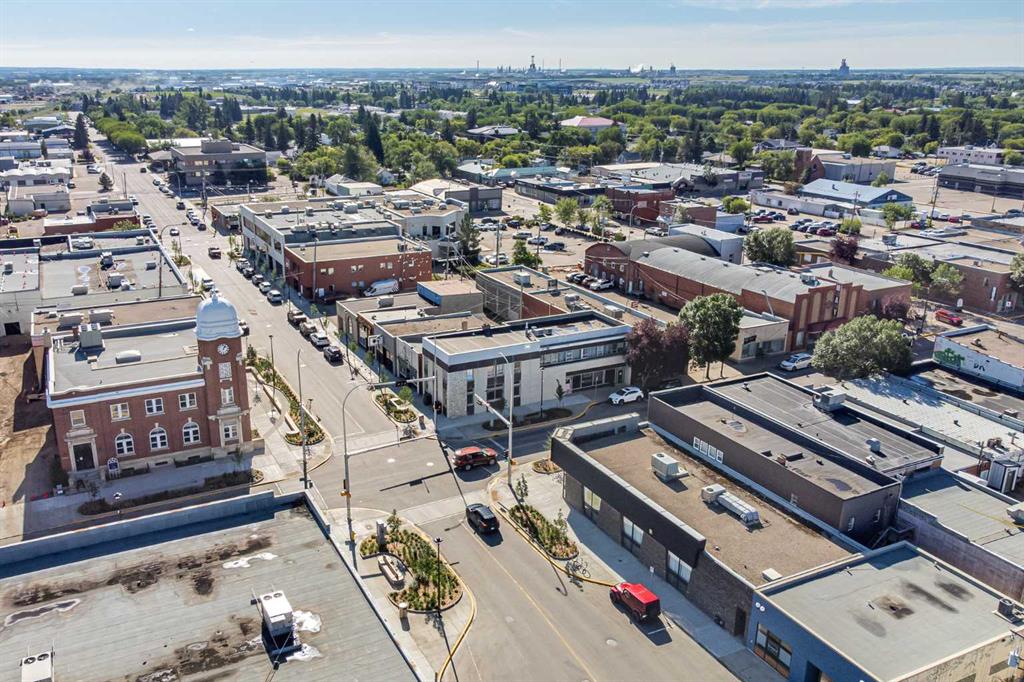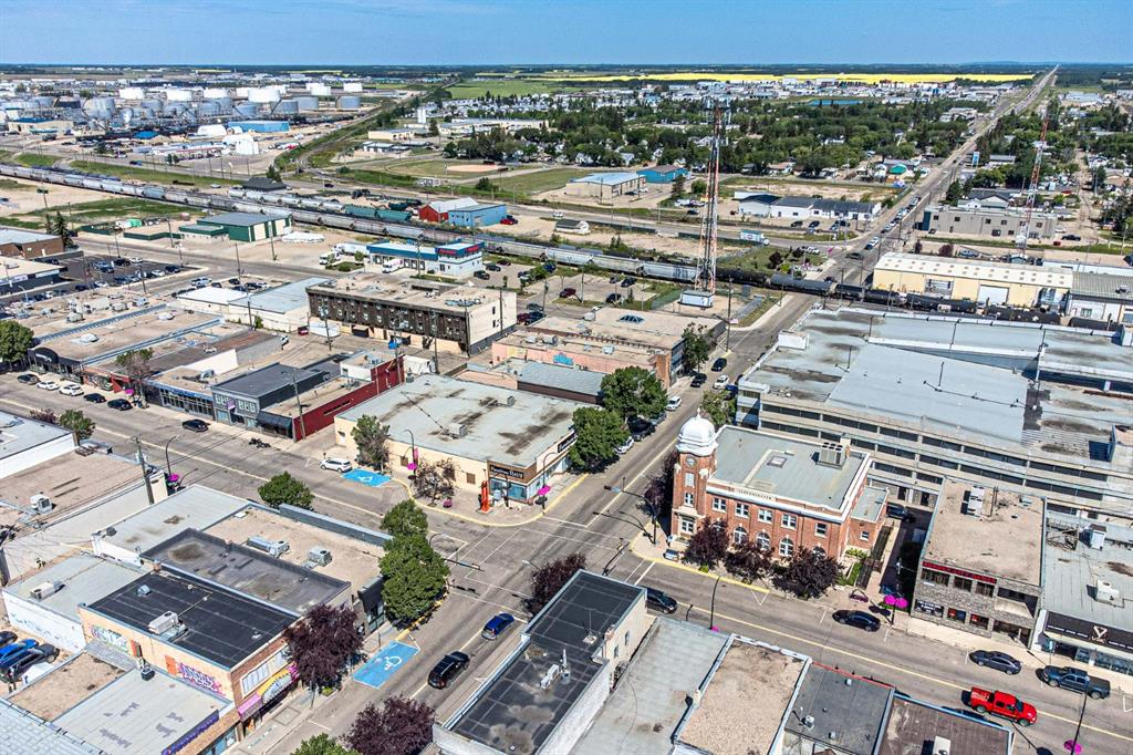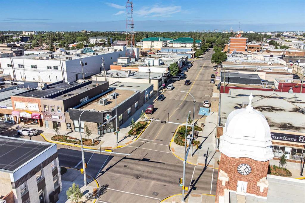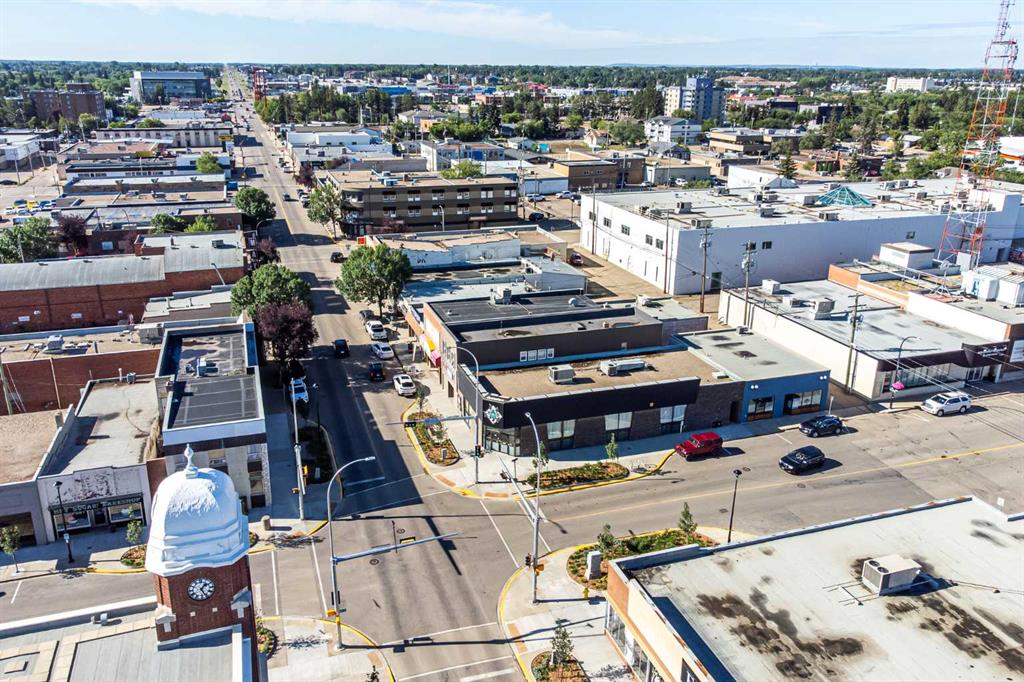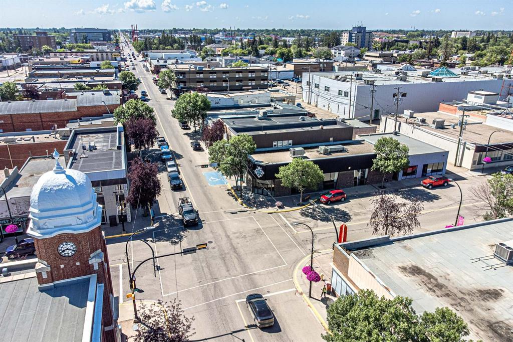 Professional studio space with great curb appeal and in a highly visible location! This former dance studio is located on the busy corner of 50th Street and 50th Avenue. The main floor features 11’ ceilings, stylish reception area and 3 studio spaces. 2 of them have floor to ceiling windows that let in tons of natural light! The basement includes a large 4th studio that measures 35’6”x47’10”. The basement also includes men’s and women’s washrooms, a large staff/student lounge with kitchenette, and 2 office/storage rooms. This steel frame and concrete building could also be converted to retail space. A unique feature about this property is that it used to be a bank and still has a vault! Zoned C1- Central Commercial, this property has several permitted uses. Office, childcare facility, health services, religious assembly and retail are just a few of the permitted uses for this property.