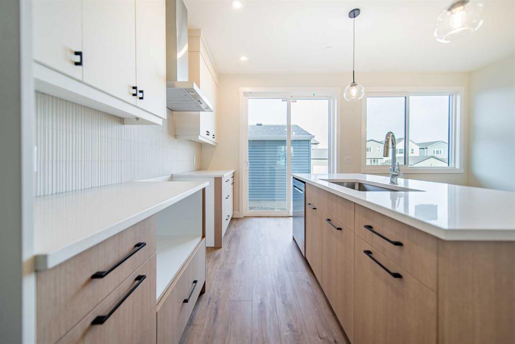Welcome to the stunning, brand-new Wicklow, built by Brookfield Residential, featuring a legal basement suite and ideally situated in the heart of Livingston, fronting onto a beautiful green space! This thoughtfully designed home offers nearly 1,700 sq. ft. of above-grade living space, with 3 bedrooms, 2.5 bathrooms, a fully legal 1-bedroom basement suite with a private side entrance, and a single-garage with a parking pad, perfect for a rental suite, extended family, or guests. The main level features 9' ceilings that enhance the sense of space and comfort throughout. At the heart of the home is a gourmet kitchen equipped with a built-in chimney hood fan and a built-in microwave, opening directly to the dining area and patio doors that lead to the backyard. The spacious front great room is filled with natural light from its expansive windows, creating a bright and welcoming atmosphere all day long. Upstairs, a central bonus room smartly separates the primary suite from the additional bedrooms, offering extra privacy. The primary suite includes a walk-in closet and a luxurious 4-piece ensuite with dual sinks and a walk-in shower. Two more bedrooms, a full bathroom, and a laundry room complete the upper level. The fully finished basement features a self-contained legal 1-bedroom suite with a full kitchen and separate entrance, an incredible added value whether you’re looking for rental income or multi-generational living options. The backyard leads to a private single-detached garage plus an additional parking pad for extra convenience. This home is also protected by both the builder's warranty and Alberta New Home Warranty for added peace of mind.