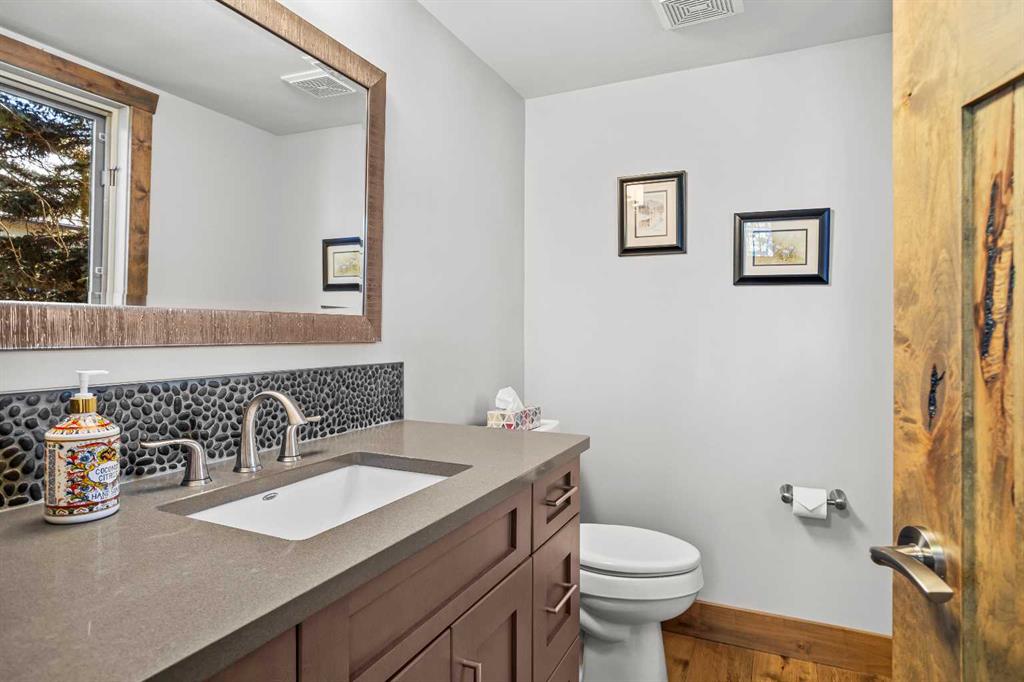 This home is designed for family living and entertaining and is in South Canmore, one block from the river trails and three blocks from main street. The complete renovation features are engineered hickory floors on the main level, meticulous woodwork throughout and open staircase to maximize the light and spaciousness. The second floor living area is open concept flowing through the living room, with the gas fireplace linking to the dining area and chef-inspired kitchen. The kitchen is professionally designed with modern cabinets and large island, quartz counter tops, built in appliances, two sinks and a generous pantry. A half bath completes this level. Taking the stairs to the third level, there is a cozy balcony deck perfect for enjoying a quiet mean and watching the setting sun. The third level hosts the primary bedroom and second bedroom each with its own ensuite and walk-in closet. The loft area is perfect for an office and reading area or child's play space. The laundry is conveniently located on this level. The ground level has the garage access and a large foyer with closet space. This level features the media room complete with wet bar, granite countertop and fridge and a full bathroom. When visitors arrive, this space is quickly converted into the third bedroom offering your guests complete privacy and luxury. Outside there is a ground level sitting area, secure storage area for bicycles and seasonal equipment and the electrical hook-up for a hot tub. The single care garage is finished including an epoxy floor and driveway provided parking for two vehicles.