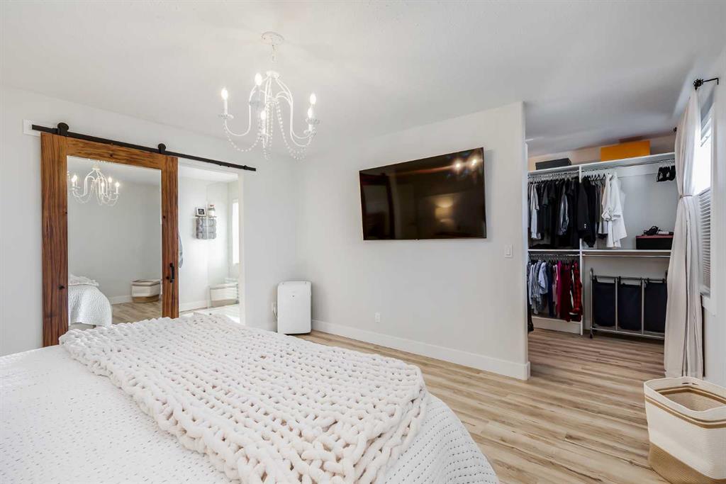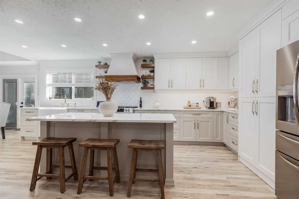 Stunningly renovated with high-end finishes throughout, this gorgeous home sits on an extra-wide pie-shaped lot at the end of a quiet cul-de-sac, just steps from Airdrie’s scenic canals. An expansive front porch sets the tone, creating a welcoming spot for morning coffee or evening relaxation watching the sunset. Inside, soaring ceilings in the living room draw the eye upward, anchored by a striking stone-surround fireplace that invites you to unwind. Extra windows flood the open floor plan with natural light, highlighting the updated flooring, designer details and neutral colour palette. The heart of the home is the outstanding chef’s kitchen, thoughtfully appointed with upgraded stainless steel appliances, full-height cabinetry, stone countertops, modern finishes and a large walk-in pantry. A central island with casual seating and an adjacent breakfast nook with patio doors make everyday living seamless, while a separate dining space with built-in serving bar is ideal for entertaining. Upstairs, a lofted flex area provides the perfect home office or study space. The elegant primary retreat includes a massive custom walk-in closet and a spa-like ensuite with dual sinks, refined finishes and an oversized multi-head shower. Two additional bedrooms and a full bath complete this level. The finished basement extends your living space with a huge recreation room, including areas for media, games and a built-in bar for convenient refreshment and snack refills. Outdoors, the backyard is designed for both play and leisure, featuring a large deck with privacy screen, a built-in firepit for endless summer nights roasting marshmallows and a wide grassy area for kids and pets to play. Parking is plentiful with a double attached insulated side-profile garage, plus an extended driveway with space for an RV or boat. The location is exceptional, offering effortless access to Airdrie’s canals with 6 km of pathways for year-round recreation including kayaking, skating and wildlife watching. Nearby Chinook Winds Park provides playgrounds, spray park, skate park, sports courts and seasonal concessions, while golf, schools, shopping and every city amenity are close at hand. This home perfectly blends upscale design with family-friendly function in a sought-after neighbourhood surrounded by natural beauty!