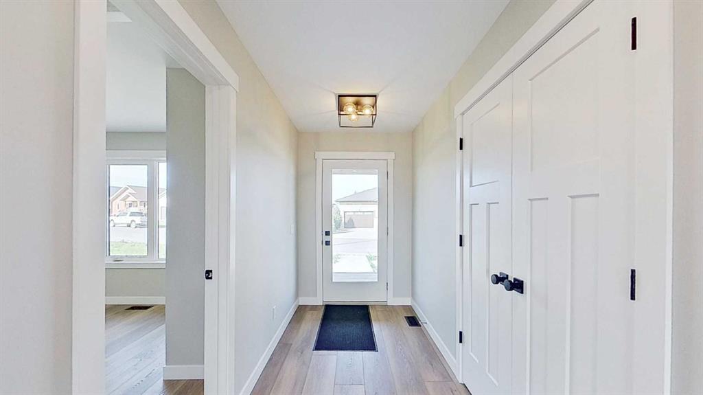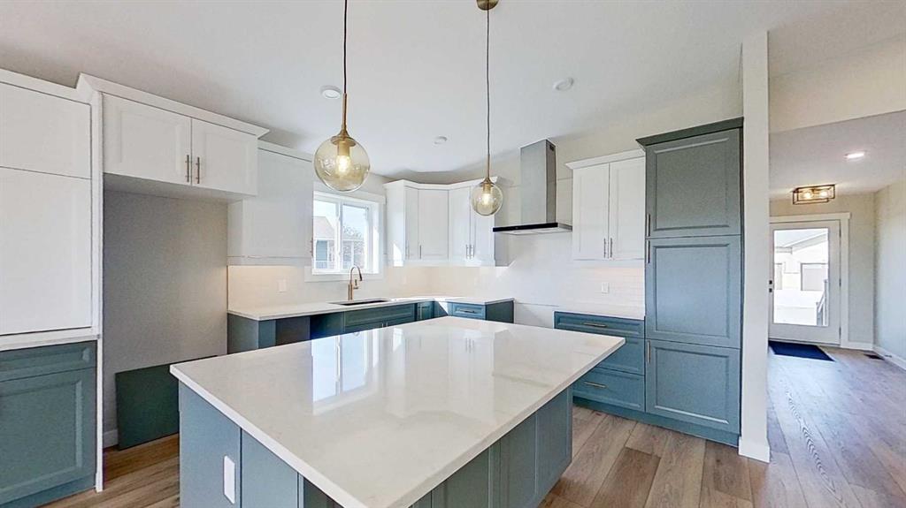 A new home 1469 Square feet, modern bungalow with a wonderful 2.4 meters to the property line from the home. Thoughtfully designed and built with high-end construction and finishes throughout. This home blends timeless style with everyday comfort. Inside, rich luxury vinyl plank flooring flows through a bright, open-concept layout. Sunlight pours through large windows, filling the living area with a soft , inviting glow, perfect for quiet mornings and lively evenings with family and friends. The heart of the home, the kitchen, is a beautiful as it is a functional, featuring gleaming quartz countertops, a sleek under-mount sink, elegant tilework, under-cabinet lighting, and abundant storage for all you culinary treasures. The primary suite is your own personal retreat, with a spacious dual sink vanity in the ensuite, a fully tiled walk-in glass shower, a closable bathroom, a custom walk-in closet with built-in cabinetry. Two additional bedrooms with closets and wonderful shelving custom-made for family, guests, or a home office. A cozy front porch invites you to sip coffee and watch the mountains as the day unfold, while massive 30-foot back deck is perfect for sunny mornings and afternoons. A wonderful area to enjoy lots of friends for get together times. The mudroom, complete with custom made sitting area and spaces for your jackets and shoes storage and access to walk down to the detached garage. The mudroom has a complete laundry closet. Downstairs, the basement is bright with low level large windows and natural light. The potential development of the basement has 2 lovely bedrooms, full bath tub-shower bathroom. It is easy to create a luxurious family room area with wonderful lighting. The exterior features are charming blue-gray Smart siding with crisp white trim for a welcoming, classic finish. This home is built to last, crafted with exceptional workmanship and top-quality finishes from the ground up ready for you to move in, settle down and start making memories.