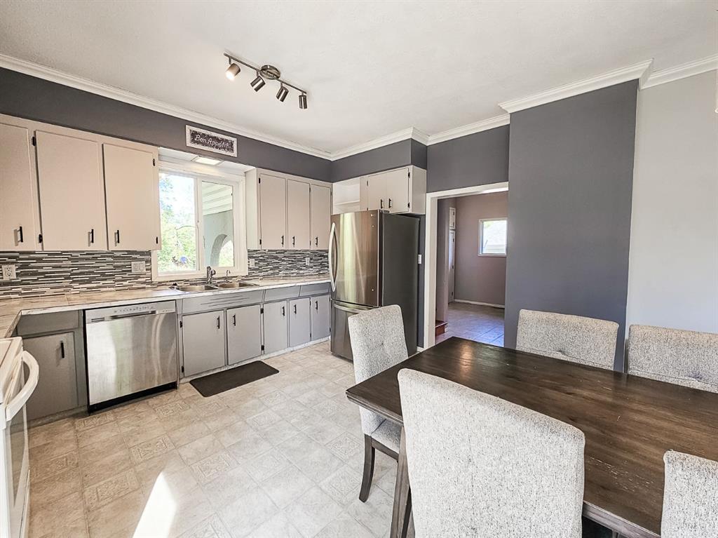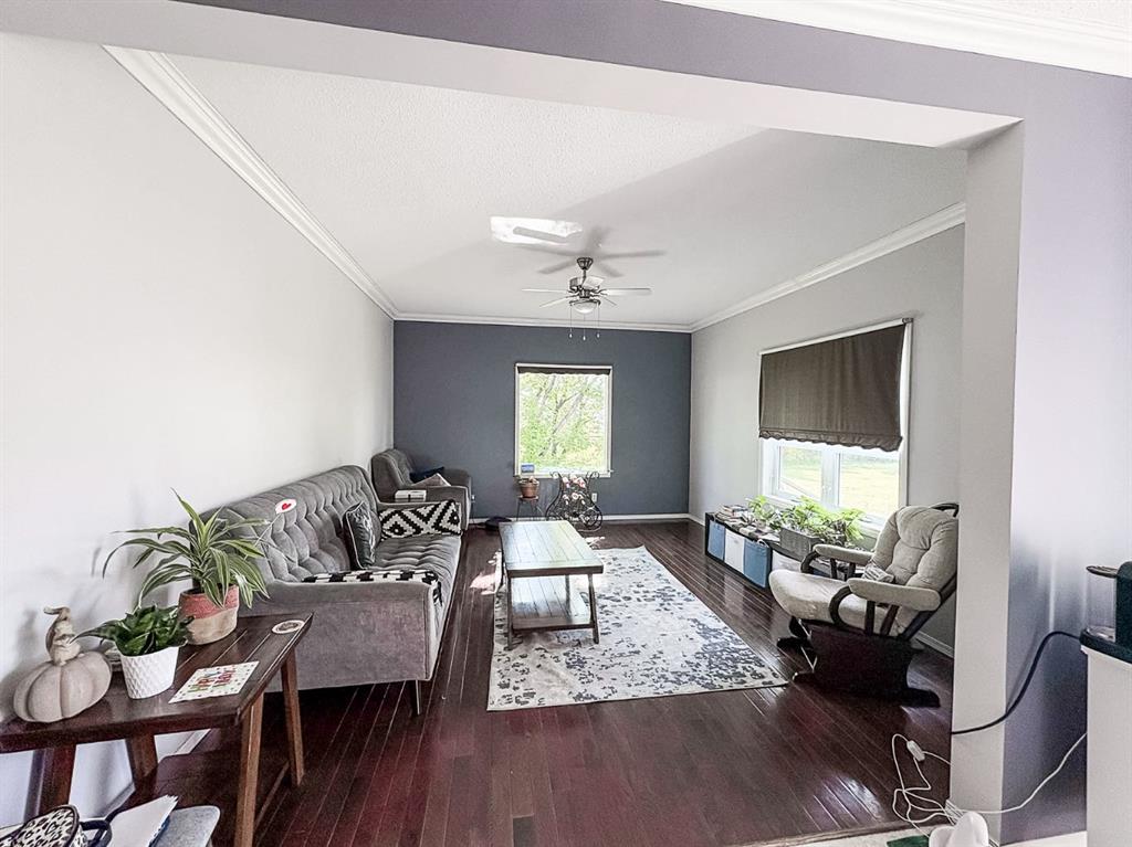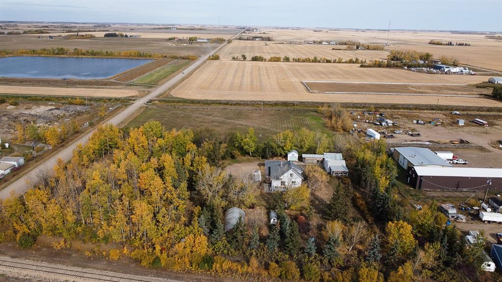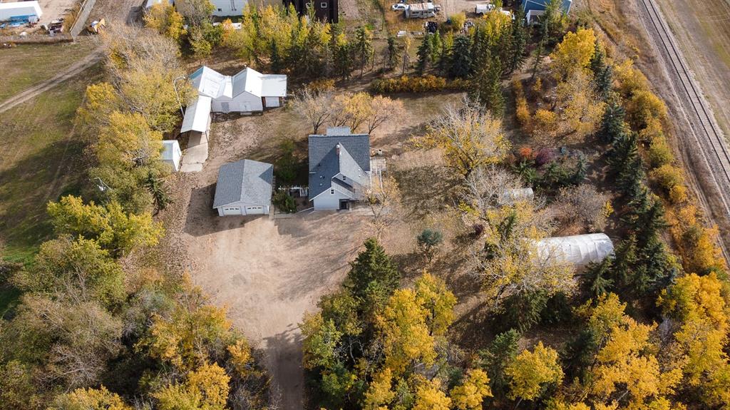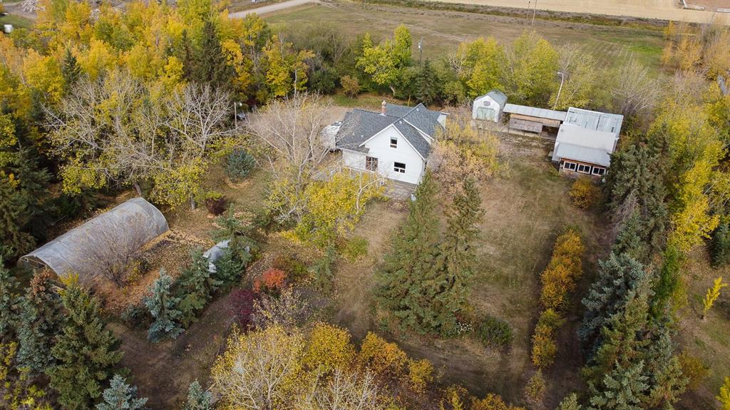 Welcome to a beautifully updated home that combines the character of a farmhouse with modern comfort. The open-concept kitchen, dining, and living spaces flow effortlessly, with patio doors leading to a sunny south-facing deck. The kitchen boasts newer appliances, a modern backsplash, updated counters, and the timeless touch of hardwood floors that continue through the living room and hallway. Upstairs, a bright landing filled with natural light welcomes you to two cozy guest bedrooms and a 3-piece bathroom, complete with charming dormer windows and angled ceilings. The fully finished basement adds even more living space, featuring a spacious family room, an additional bedroom, a bathroom, a laundry area, and a temperature-controlled cold storage room. Outdoors, the yard feels like a private sanctuary, surrounded by mature trees and brimming with fruit trees, perennials, saskatoons, raspberries, chokecherries, grapes, and a garden ready for planting. Enjoy summer evenings around the firepit, or put your green thumb to work in one of the two greenhouses, including an impressive 20’ x 40’ structure. For the hobbyist or handyman, this acreage is a dream come true. Multiple outbuildings provide ample dry storage, along with two large heated shops. One with 220 wiring and gas heat, the other with both gas and wood heat. Offering town water, privacy, and 2.5 acres of beautifully maintained land, it’s the perfect blend of country living and in-town convenience. Don’t miss this rare opportunity to enjoy acreage life without compromise!