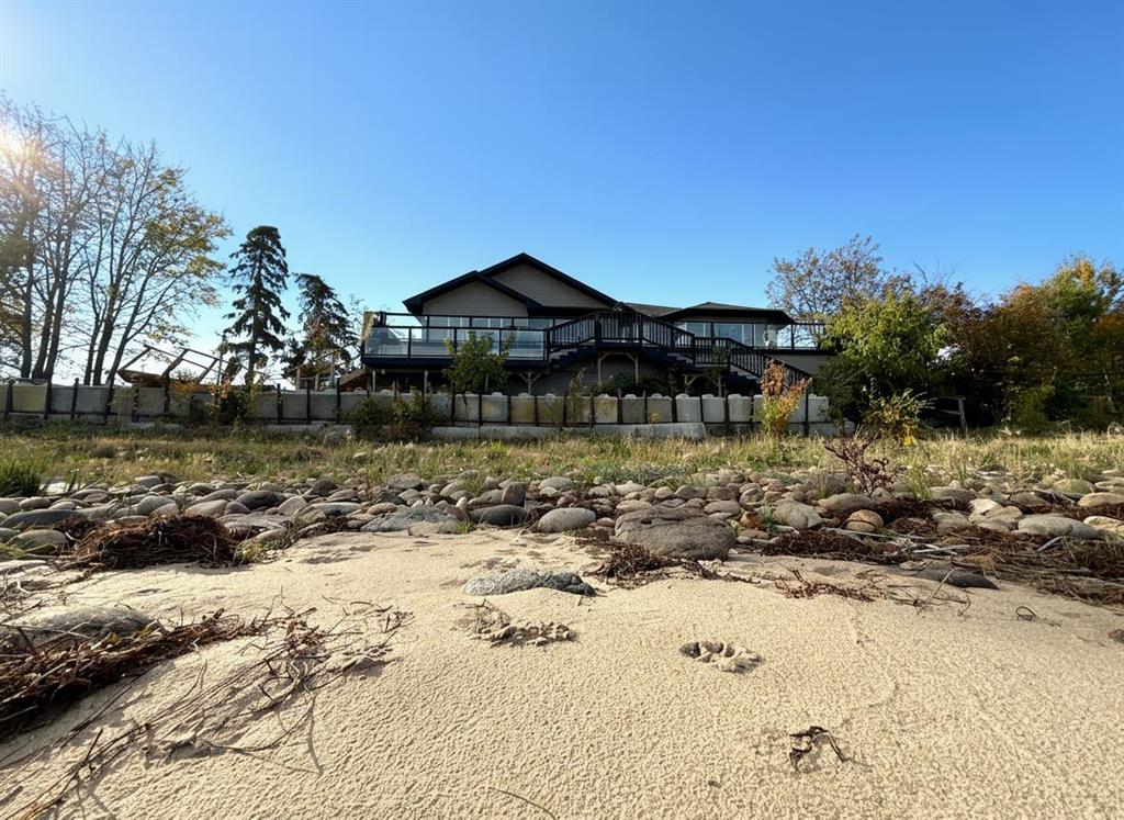A cottage in Joussard, Alberta, inviting you to enjoy a year-round lakefront lifestyle. This 2009-built home is perfectly designed for lakeside living, offering both comfort and incredible functionality. The main house features three bedrooms and two bathrooms, but the standout feature is the expansive, heated 28' x 40' garage. This incredible space includes a versatile bonus bedroom and bathroom, accessible through French doors to its own fenced, private yard with direct access to the lake—ideal for guests, extended family, or a home business. With room for a pontoon boat or RV, the garage is a dream come true for outdoor enthusiasts. A multi-level, wrap-around deck with glass panels provides breathtaking views of the lake, with stairs leading down to a rocky/sandy beach. The yard is thoughtfully laid out with multiple fenced areas, including the one connected to the garage bedroom for ultimate privacy, and another east-facing fenced yard wrapping around to the front of the home. Enjoy the multiple raised south-facing gardens placed strategically around the driveway and front of the home. Inside, the home is oriented to maximize the stunning lake views. An east-facing entrance serves as a practical mudroom with a stacking washer/dryer, while the sunroom, living room, and open-concept kitchen/dining area all overlook the water. The living room is warmed by a gas fireplace and features custom bookshelves, creating a cozy atmosphere. The primary bedroom is , complete with a walk-in closet and an ensuite boasting a soaking tub and a stand-up shower. To book your personalized viewing call, email or text your Realtor today!