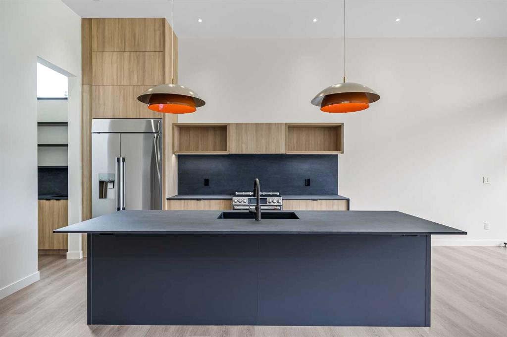Set beneath the canopy of a 70-year-old larch and overlooking the green expanse of Poplar Park, 3D Willow Crescent offers a rare combination of thoughtful architecture, inner-city convenience, and space to grow. Designed by Richard Davignon of Davignon Martin Architecture—recipient of the American Institute of Architects Award of Excellence—this residence is part of The Larches, an exclusive collection of four modern homes. Built in collaboration with Infinity Construction, the homes borrow the durability and craftsmanship usually reserved for custom estates while bringing it into a livable, just-under-2,600-square-foot footprint. Inside, the main floor unfolds in an open concept, with a custom kitchen at its centre and oversized windows framing calm, park-like views. Handcrafted oak railings, almond-hued floors, and built-in storage create a balance of warmth and function. The second level holds three bedrooms, each with its own ensuite. The primary retreat stands apart with a freestanding soaker tub, double shower, heated floors, and a walk-in closet by California Closets. The lower level, with 11-foot ceilings (yes, you could fit a golf simulator downstairs), radiant in-floor heating, and roughed-in solar and A/C, is ready to adapt—whether that’s a media room, gym, or bedrooms. The private backyard is generous for inner-city living, offering room for gatherings, barbecues, or simply quiet afternoons. An oversized double garage with lane access, full yard irrigation, and carefully curated landscaping complete the property. Every element—from Italian stone counters and Quebec-made lighting to double-pane Lux windows and hidden eavestroughs—was selected for beauty, longevity, and ease of living.