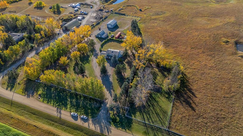 18.82 Acreage, Rectangular lot, great property with house Barn and Shop. The 2 story 2192 Sq feet house with 4 bedroom, 3 full bath. Main floor has Living room, family room, Office, Kitchen, dinning room, laundry, and 3 pcs bath. Living room has fire place, and patio door to the deck, with cover hot tub and sauna (As-is) . Main floor office has built in desk, and oak panels. Country style kitchen with lots of white cabinets. Upstairs 4 bedrooms has Primary room with 4 pcs ensuite, and walk in closet, and other 3 bedrooms are good size, and 4 pcs main bathroom. Bedrooms has new carpets, and main floor has wood flooring. Workshop has compressor (as-is) for mechanically enthusiast, Barn and storage, Well water + Garage has 2 potable extra water tanks. Backyard has lot of trees, partially fenced and many more. Nearby by school in Chestermere, and close to Glenmore trail, heather and glen golf course.