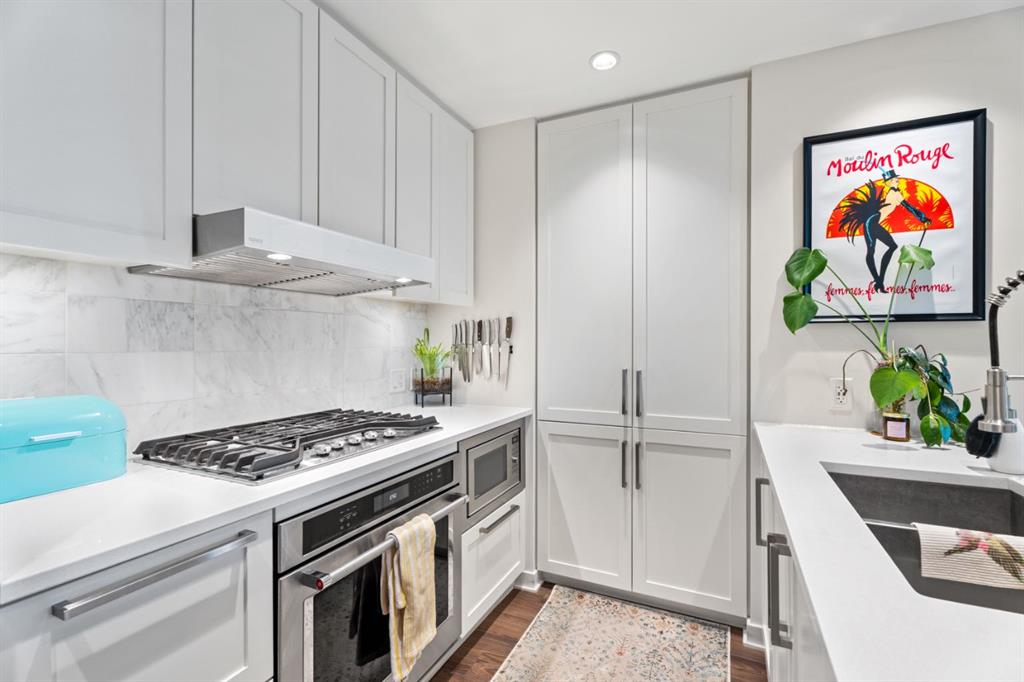**Open House Saturday Dec 20 from 12-2pm** Welcome to this bright and beautifully kept 2-bed, 2-bath plus den condo offering peaceful views of the landscaped courtyard and community gardens and yes, with AC for those hot summer days. Step onto your private covered balcony to enjoy morning coffee surrounded by mature greenery—an ideal retreat from city life. The open-concept layout features a spacious living/dining area filled with natural light, a modern kitchen with stainless steel appliances and stone countertops, and a convenient breakfast bar for casual dining. The primary suite includes a walk-in closet and a full ensuite, while the second bedroom and 4-piece bath provide flexible space for guests or a home office. Additional highlights include in-suite laundry, titled underground parking, and secure storage. Building amenities feature a well-equipped fitness room, resident lounge, and beautifully maintained common areas. Situated steps from transit, shops, restaurants, and scenic walking paths, this home combines tranquility with unbeatable convenience. Whether you’re a first-time buyer, downsizer, or investor, this garden-view residence offers exceptional value and comfort.
