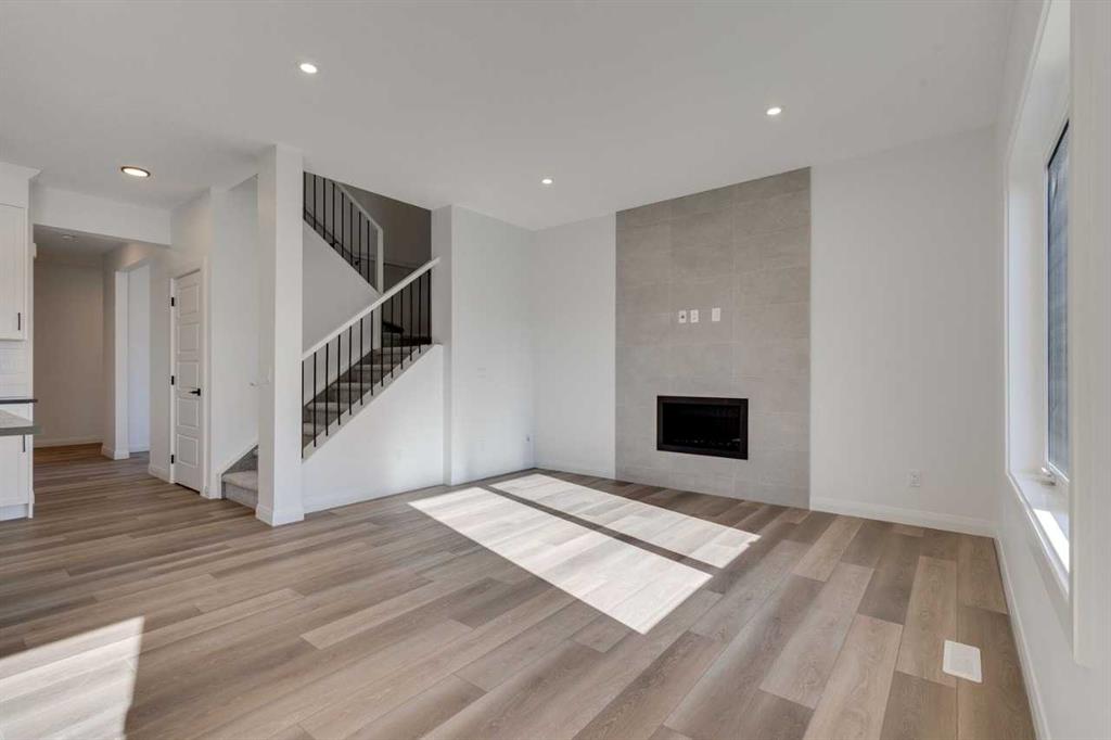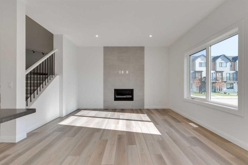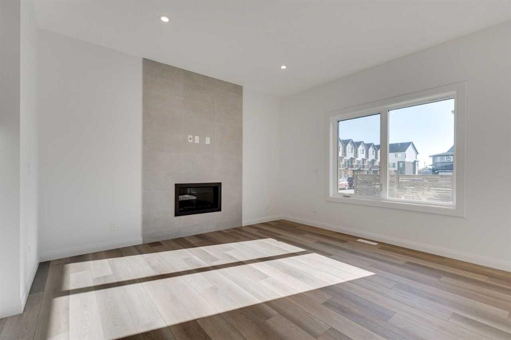 Welcome to the York by Broadview Homes in Dawson’s Landing. This 2,029 sq. ft. home offers 3 bedrooms, 3 full bathrooms, and a versatile main floor flex room with a full bath, perfect for guests or a home office. The heart of the home is a spacious kitchen with stainless steel appliances, plenty of counter space, and elegant finishes, opening to a bright living area complete with a cozy gas fireplace. Upstairs, enjoy a bonus room, two secondary bedrooms, and a massive primary bedroom featuring a spa-inspired ensuite and walk-in closet. With 9’ ceilings on the main and basement levels, plus basement plumbing rough-ins for future development, this home combines style, space, and functionality.