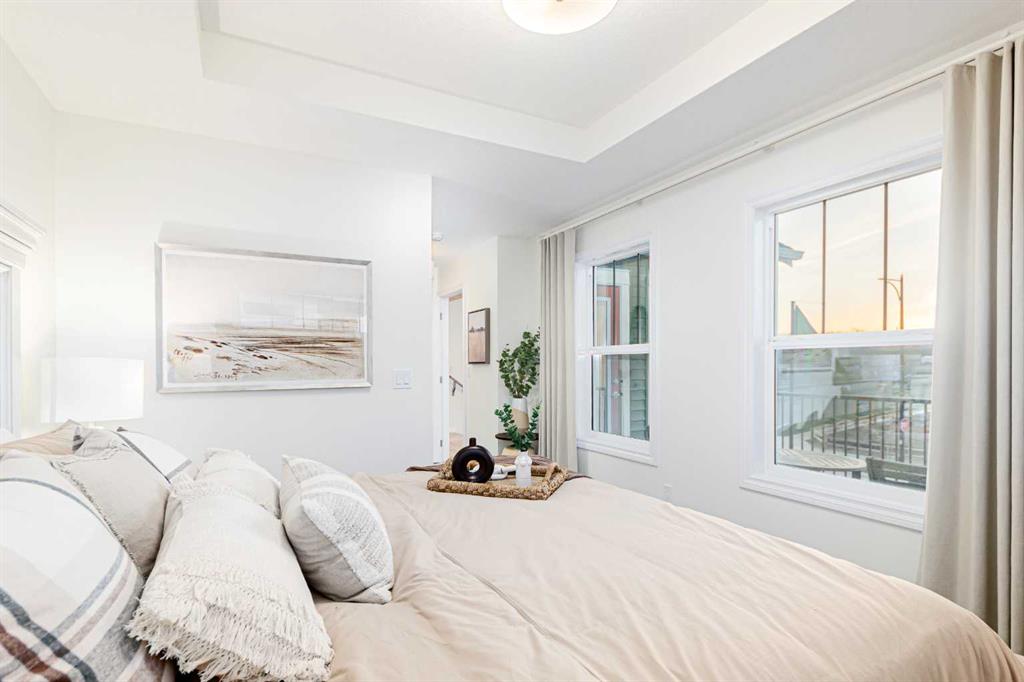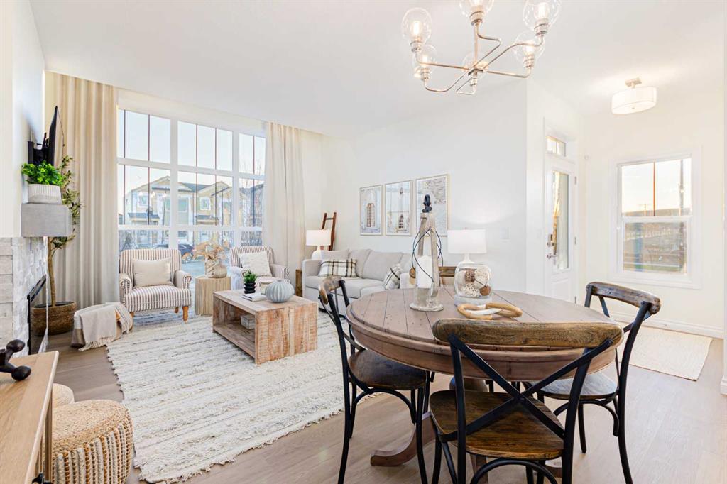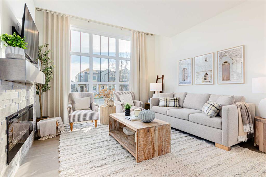 Welcome to the Jasper by Genesis Builders, a beautifully designed townhome with no condo fees in the heart of Bayview. Offering 1,354 sq. ft. of above-grade living space, this home combines modern finishes, functional design, and unique features like a rooftop patio and a 20' x 22' attached double garage. The basement includes 9' ceilings and is ready for your ideas. The main floor offers open-concept living with an inviting layout that’s both bright and practical. The kitchen is finished with stone countertops, stainless steel appliances, full-height cabinetry, and a large island with seating, flowing into the dining area and living room. A feature fireplace adds warmth and style, making the space perfect for both entertaining and everyday living. A half bath, storage, and direct garage access complete this level. Upstairs, the primary suite includes a walk-in closet and private ensuite with a large tiled shower. Two additional bedrooms, a 4-piece bath, and a conveniently located laundry space complete the upper floor. The rooftop patio above the garage provides a private outdoor retreat for relaxing or entertaining. Bayview is one of Airdrie’s most exciting communities, with pathways, playgrounds, an outdoor amphitheatre, basketball courts, and tennis courts that convert to a skating rink in the winter. With easy access to schools, parks, and the canals, Bayview offers both lifestyle and convenience. *Photos are representative colors and finishes may vary. Area size was calculated by applying the RMS to the blueprints provided by the builder. Similar Jasper model is currently available at 2150 Bayview Drive. Taxes to be assessed.