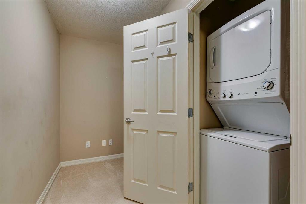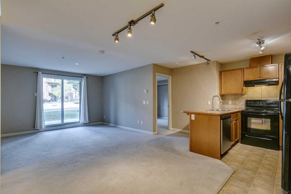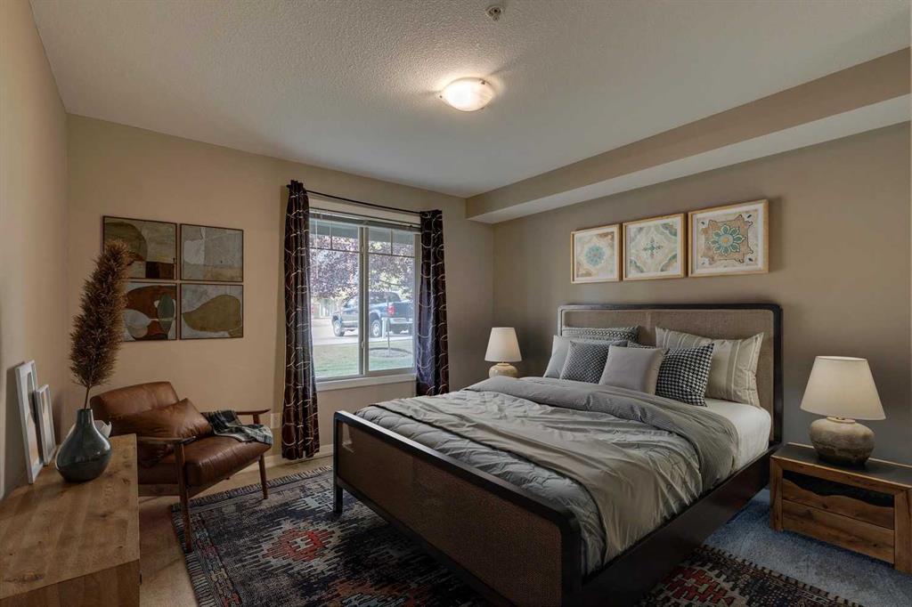 This well-kept main floor condo offers practical living with 2 bedrooms, 2 full bathrooms, and a den. Ok, you got me, it’s a tiny nook that is barely big enough for a desk, but the developer called it a den, so I am too. The open layout has a bright living and dining area that connects to an efficient kitchen with lots of counter space, a pantry, and room for a few stools at the peninsula. The primary bedroom is big enough for a king bed, has a large walk-through closet, and a full 4pc ensuite. The spare bathroom features a walk-in shower. The unit includes heated underground parking with a storage cage in front, and the parkade also has a car wash bay, making winter living easier. The building is well managed with amenities that include a fitness center, sauna, steam room, hot tub, and a recreation room with a kitchen and pool table. Outside, there is a shared BBQ and picnic space, and Crystal Ridge Golf Course is only minutes away. You’ll also be able to enjoy lake access, with year-round activities like fishing and skating this winter, or swimming and paddling next summer. Note: some images have been virtually staged.