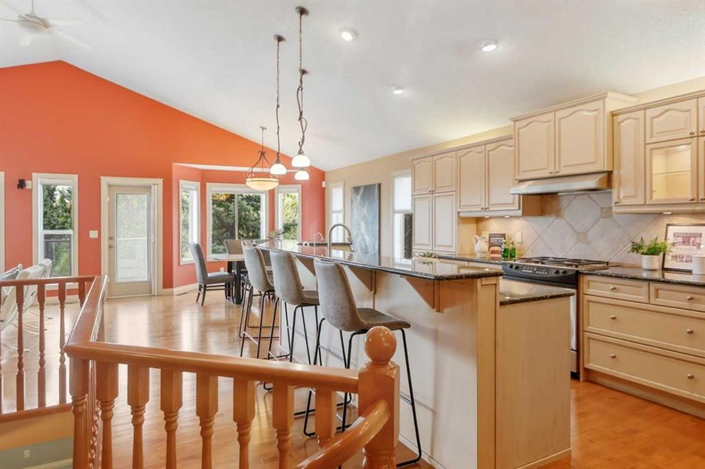 ** EXECUTIVE bungalow in Okotoks – “Air Ranch” - with STUNNING mountain, lake and natural environmental reserve views! – AMAZING sunsets!! ** QUIET cul-de-sac location, beautiful south-west facing backyard with low maintenance landscaping and perimeter fencing. ** OVERSIZED, heated double garage with ceiling-mounted storage racks, several storage lockers, and closets. ** COZY front porch with poured concrete walks & patio stone accents. ** BRIGHT, spacious open foyer with direct access to garage and the 2 pce powder room. –- OFFICE/den at front door with vaulted ceilings & lots of natural light (could be a second bedroom – with adding a wardrobe or closet). ** PRIMARY bedroom & ensuite – an oversized room with vaulted ceilings, scenic views from the window – and featuring a 4 pce ensuite with double sinks, custom vanity and stand-up shower. -- PLUS, a large walk-in closet – PLUS a separate ensuite laundry room with extra shelving and washer / dryer. ** OPEN concept floor plan – SPACIOUS kitchen with loads of custom cabinets, QUARTZ counter tops, a corner pantry and a full complement of Stainless-steel appliances. ** an EXPANSIVE formal dining area with great flow into the living room that features VAULTED ceilings tons of natural light (GREAT views) a gas fireplace and patio door to the massive back deck. AMAZING views of the mountains, lake, and natural reserve areas. ** DEVELOPED walk-out basement with expansive family room / games room area – with direct access to large, covered patio area and private landscaped backyard. ** LARGE lower-level bedroom, a full 4 pce bathroom with tub/shower. ** ADDITIONAL hobby/storage//utility room – PLUS a massive storage utility room with loads of shelving. (GOOD potential to add another large bedroom if needed) ** A very functional & meticulously maintained Executive bungalow featuring hardwood floors, vaulted ceilings, Quartz counter tops, Stainless Steel appliances and so much more!! ** TRULY a rare property that needs to be seen!! ** CALL your favorite REALTOR – or come by our *** NOTE: this is a “stand alone” – single family “Bareland Condo” ***