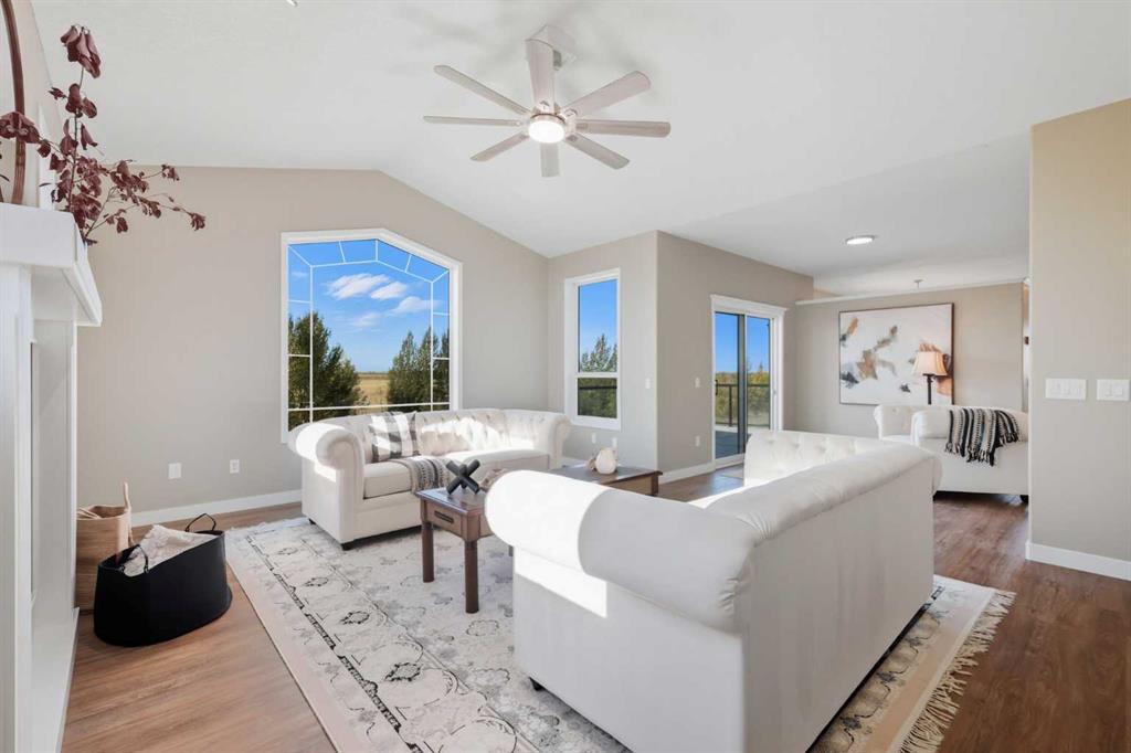 Welcome to this custom-built, 3500 sq ft developed area, walk-out bungalow perched on a scenic hilltop in Wheatland County, just 10 km north of Strathmore and only 25 minutes from Calgary International Airport. Set on 3 private, beautifully treed acres surrounded by agricultural fields and boasting unobstructed west-facing views of the Rocky Mountains, this property combines luxury living with peace and privacy. A tree-lined driveway lit with stately fixtures guides you to the home, which has been newly updated with modern paint, lighting, flooring, appliances, and decking, offering a fresh and stylish feel throughout. Designed for easy country living, the property is virtually maintenance free and finished with durable stucco and asphalt shingles. The 47’ x 31’ shop is fully insulated and heated, finished with a metal exterior and metal roof, making it ideal for storage, business, or hobby use in any season. Inside, the main floor showcases a large kitchen with peninsula seating, walk-in pantry, and a cozy breakfast nook with garden doors opening to the west-facing deck with glass railings—perfect for evening sunsets. The dining area and main living room are filled with natural light from oversized windows, and anchored by a gas fireplace, creating a warm and welcoming atmosphere. The master suite includes two walk-in closets, a spa-inspired 4-piece ensuite with a standalone soaker tub and separate shower, and garden doors to the east, perfect for enjoying peaceful morning sun. A den, main floor laundry, and central air conditioning add comfort and practicality. The walk-out basement, complete with in-floor heating, features a large family room with a built-in entertainment area, three bedrooms, big windows, and access to an enclosed patio—a cozy, protected space to enjoy your surroundings year-round. Additional highlights: oversized attached garage with in-floor heat, built-in cabinetry, sink, and hot/cold water, as well as 3 frost-free hydrants located throughout the property. Surrounded by mature trees, wide-open fields, and breathtaking west-facing views. Just a short drive to amenities in Strathmore, and a quick commute to Calgary and YYC. This home offers the ideal combination of luxury, low-maintenance design, and unmatched rural charm. The land offers many possibilities too for future uses as the house and shop were developed on the east side of the property. Whether you're seeking a private family acreage or a turnkey retreat with space to work and play, this property delivers. A rare opportunity to own a thoughtfully designed, move-in-ready acreage in one of Wheatland County’s most desirable locations. Call your AWESOME Realtor today to book a viewing!