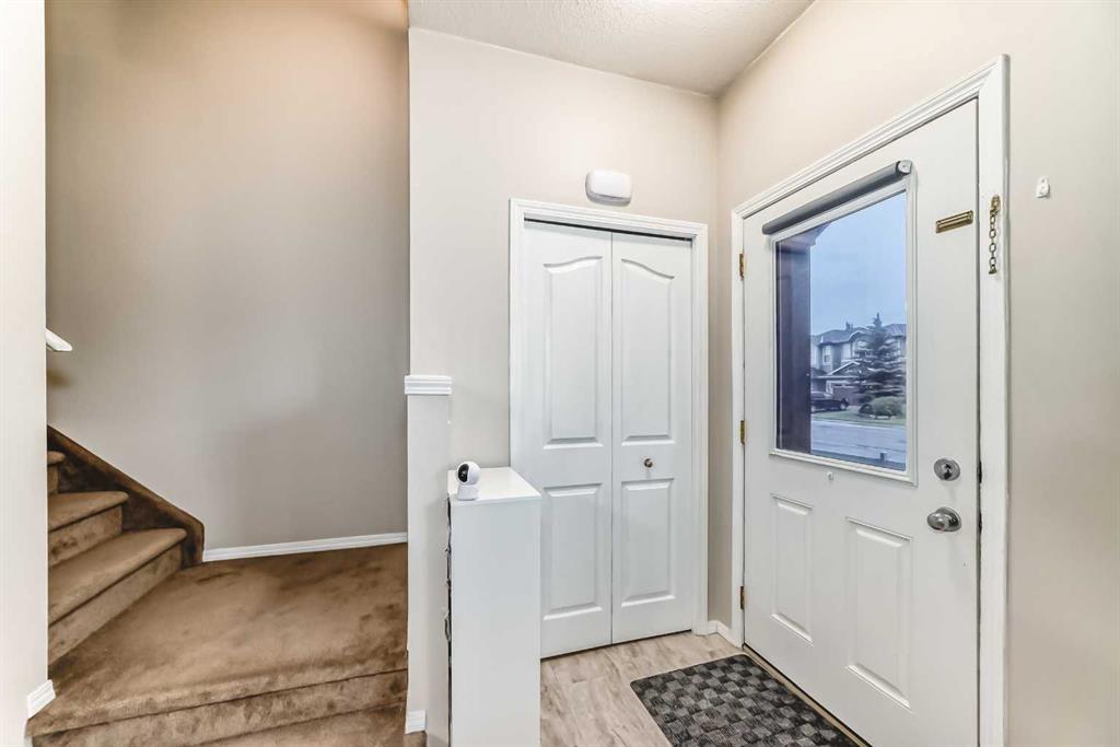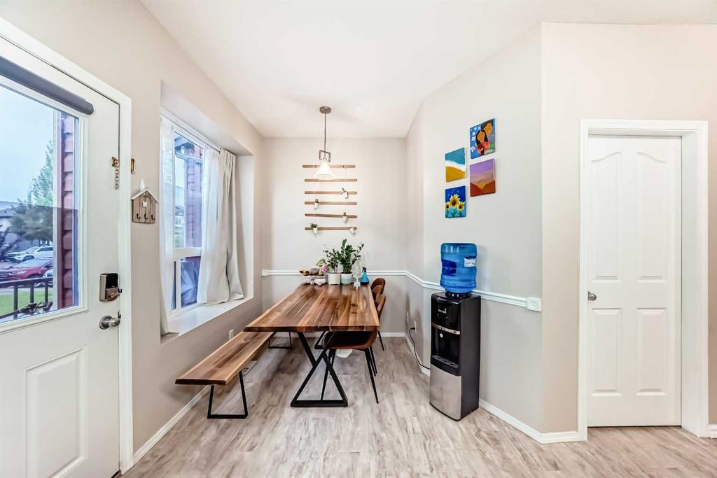 Welcome to this charming Luxstone Park Place Green townhome, where a quaint ranch-inspired exterior with a covered front porch opens to a beautifully bright and open main floor featuring nine-foot ceilings and wide-plank laminate flooring. Upstairs, the expansive primary suite boasts a walk-in closet and a Jack and Jill ensuite shared with two additional bedrooms. The basement offers endless possibilities for a wet bar, playroom, or home gym, while still providing a rough-in for another bathroom and a partially unfinished laundry area. Outside, the west-facing back deck is perfect for enjoying sunsets, and the community offers direct access to walking paths, Nose Creek Park, local shops, services, and schools, with quick routes to Calgary and westward adventures.