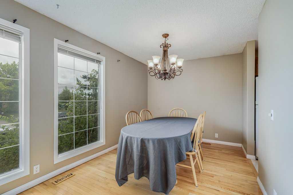 Incredibly located just 2 doors from Nose Creek Park encouraging tranquil walks on the expansive pathway that winds alongside the creek. Want something more urban? This unsurpassable location has the best of both worlds! Walk out your front door in the other direction and bam you’re on Main Street with endless shops, restaurants, services and amenities. Then come home to a private, extremely quiet sanctuary with a heated garage! This charming home is well maintained with many upgrades already completed. The roof shingles, vinyl siding, eaves troughs and downspouts on both the house and garage were replaced in 2015 plus extra insulation was added. New natural gas hot water heater (2018), Telus internet Fibre Drop installed (2019), 2 bathroom fans replaced (2019/2021) and the upper level carpet was replaced with durable laminate in 2 bedrooms and the hallway (2023). Natural light streams into the living and dining rooms from extra south-facing windows illuminating the hardwood floors and creating a bright and airy gathering and entertaining space. The kitchen is well laid out with a plethora of cabinets and drawers plus corner windows for seemingly infinite sunlight. Retreat at the end of the day to the upper level primary bedroom with its own private ensuite, no need to share with the kids! Both additional bedrooms are spacious with easy access to the 4-piece bathroom. Put your feet up and relax in front of the floor-to-ceiling brick encased fireplace in the family room. A separate flex area is great for a home office or study space. French doors lead to the backyard oasis promoting a seamless indoor/outdoor lifestyle. And there is still a fully finished basement with a huge rec room and included billiard table and shuffleboard for friendly games nights with friends and family. Enjoy casual barbeques and time spent unwinding in the backyard privately nestled behind the HEATED double detached garage with an extra long drive for loads of additional parking or an RV. Steps away from the nearly completed Multi-Use and Library Facility. Don’t miss your chance at this solid home in an unbeatable location!