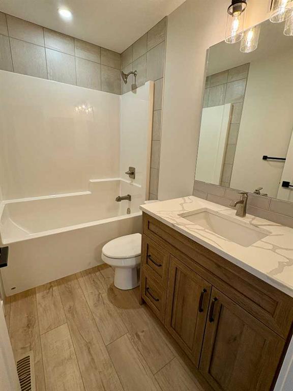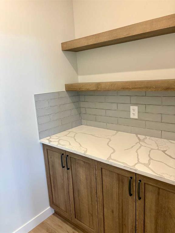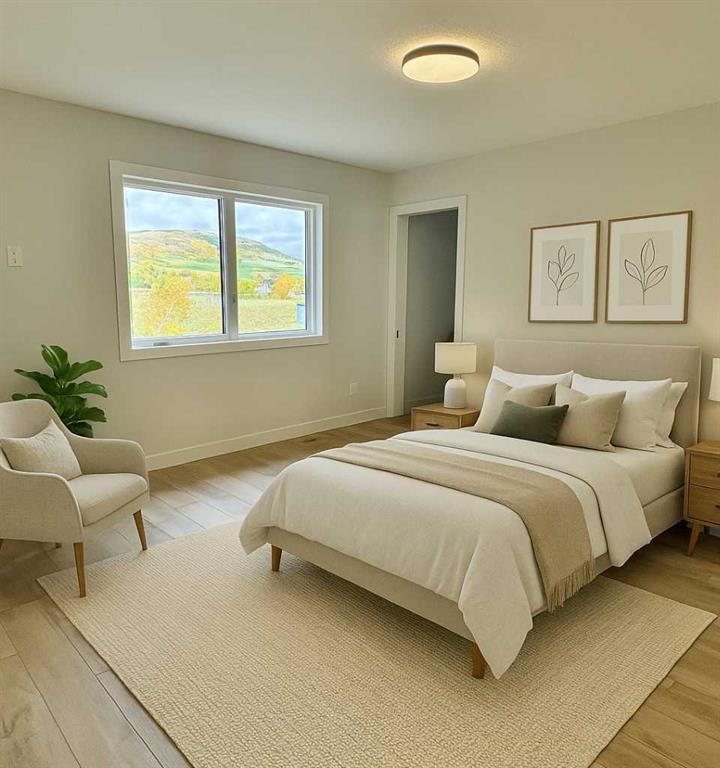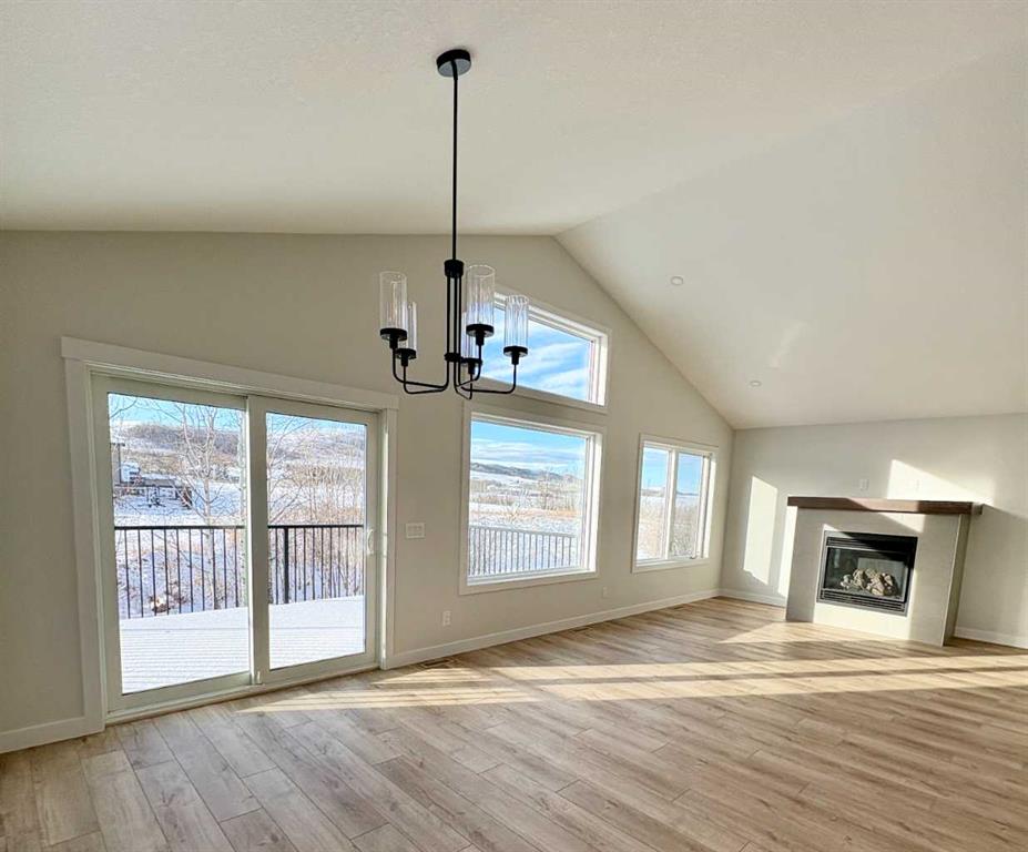 Welcome to a stunning and stylish Woodmaster Homes built bungalow on an amazing lot with a large TRIPLE attached garage and views of the foothills and trees. This well thought out plan features Luxury Vinyl Plank flooring through out, and a large kitchen with a spacious island, eating bar and pantry. You will LOVE the bright sunshine that comes through the floor to ceiling triple paned windows that look out over your private west facing backyard and a wonderful large vinyl rear deck which is complete with a gas line. This open concept floorplan has vaulted ceilings and has been designed with plenty of space for dining and entertaining. The living room is bright and inviting and includes a fireplace for ambiance and warmth. The primary bedroom is large and bright with a great walk in closet and 4 piece ensuite. A large second bedroom and a spacious laundry room complete the main floor. Downstairs you will find large bright windows and partial basement development which includes the framing and the tub installed in the bathroom, there is also a separate entrance into the basement from the garage. This opens up endless opportunities for working from home or applying for a home based business. Other significant upgrades include Hardie Board Siding, an insulated and drywalled garage, and the front landscaping completed. This home will come with New Home Warranty. The builder can also finish the basement if a buyer would like so please ask about this opportunity.