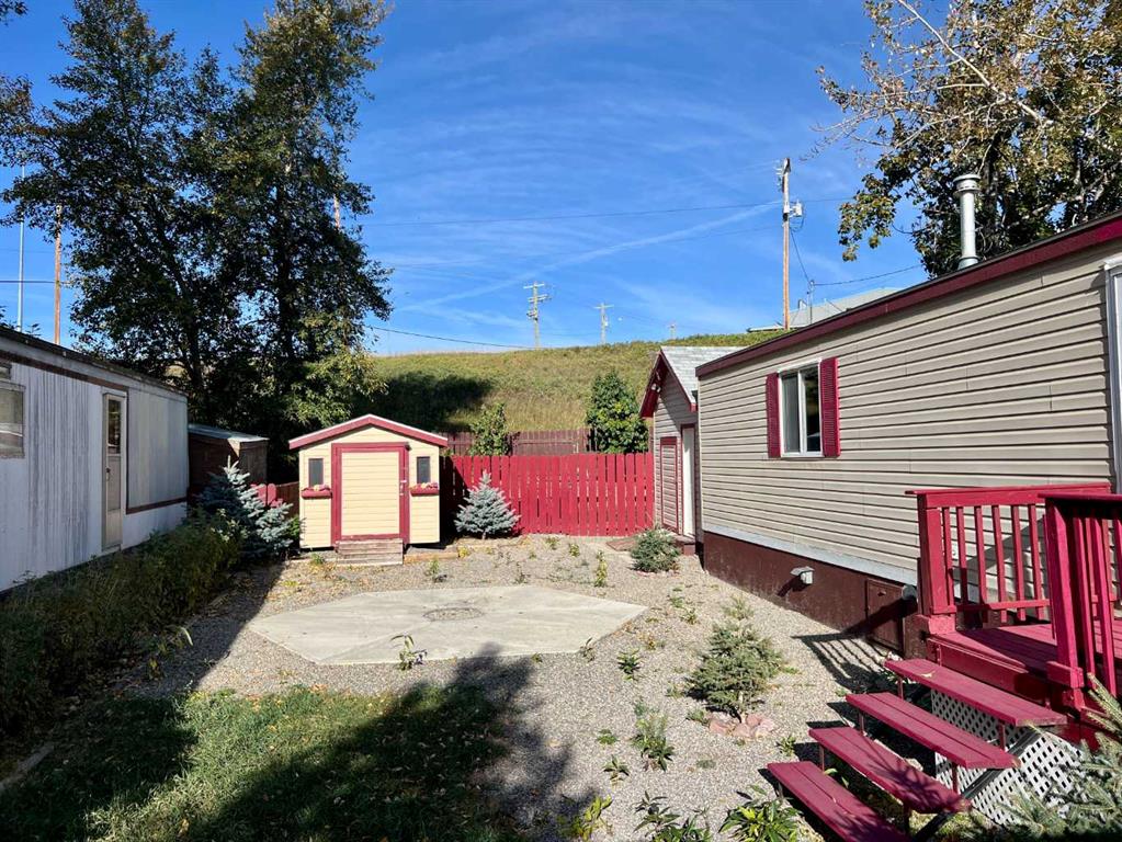 This meticulously cared for mobile home offers 3 bedrooms and 2 bathrooms in a peaceful part of town, just steps from the creek. This home is filled with character and thoughtful updates, including a newly renovated 3-piece bathroom. The private backyard is a true retreat, featuring two storage sheds, plus a larger shed/workshop for hobbies or extra space. A paved driveway, a lovely deck, and a concrete firepit pad create the perfect setting for relaxing evenings or gathering with friends and family. With its warm and inviting layout, outdoor spaces designed for enjoyment, and quiet location close to nature, this home is ready for you to move in and make it your own