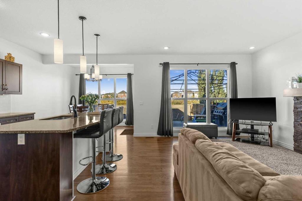***Hello Gorgeous***!! Welcome to 195 Hillcrest Circle SW — an executive custom-built Trico home offering 3 Bed, 2.5 Bath and nearly 2,000 sq ft of refined living space in Airdrie’s desirable Hillcrest community. The "Huntington" a distinguished executive home, blends thoughtful design, quality craftsmanship, and a lifestyle made for both quiet family moments and elegant entertaining. Step into an open-concept main floor where natural light pours in, highlighting the chef-inspired kitchen with rich cabinetry, granite countertops, a central island & eating bar with pendant lighting, has a seamless flow to the dining and living areas. A striking stone-surround fireplace creates a cozy anchor for evening gatherings, while expansive windows frame views of the west-facing backyard. Host unforgettable dinner parties, then unwind on your private deck under the setting sun with a glass of wine. Laugh with friends around the firepit while the kids play freely in the spacious, fenced yard — a perfect setting for memory-making. Upstairs, retreat to your primary suite sanctuary featuring a spa-inspired 5-piece ensuite with soaker tub, walk-in shower, and dual sinks. Two additional bedrooms, an upper laundry room, and full bath complete the second level. The undeveloped basement with rough-in plumbing awaits your personal touch; and a large over-sized garage. Enjoy an active lifestyle with nearby walking trails, off-leash dog areas, and the Hillcrest Green playground just steps away. With excellent schools, shopping, dining, and commuter routes close by, this is more than a home — it’s a distinguished lifestyle in one of Airdrie’s most walkable and connected communities.
