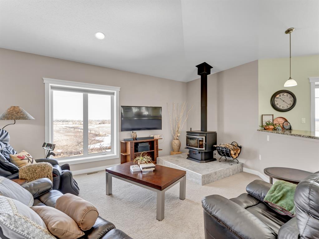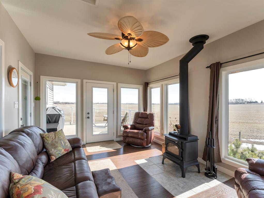 You can have it ALL... Country living, 3km paved from the City. Fully developed 3339 sq.ft. beautiful, modern bi-level built ICF construction to the roof. Geothermal heated, City water. The home has 4 bedrooms, a main floor office, 3 full bathrooms and a triple garage. Infloor heating and efficient home. Massive Quonset - 50x120, as well as 2 sheds. A total of 5.29 beautiful acres of low maintenance, private, picturesque yard with a garden, fruit trees and grassland for any animals or hobbies. The possibilities are endless with this rare find!
