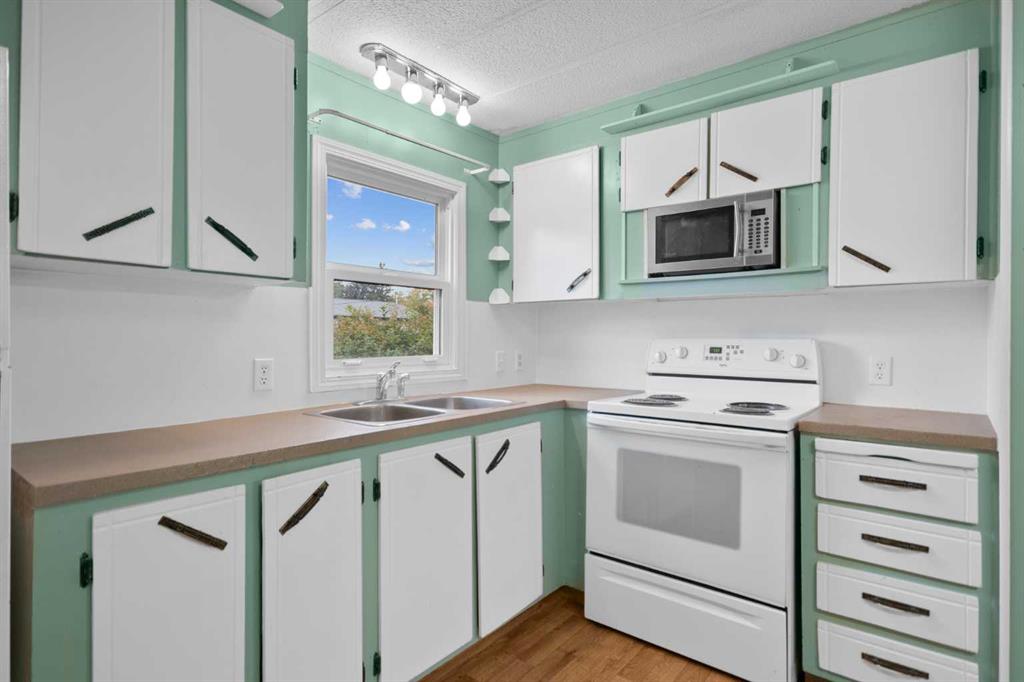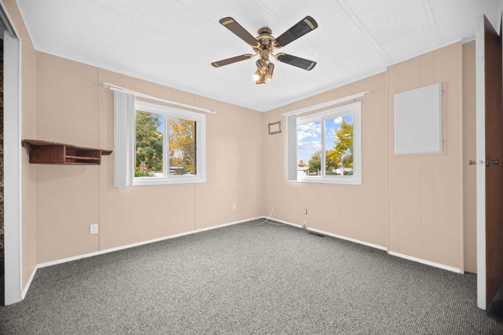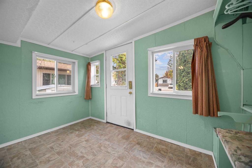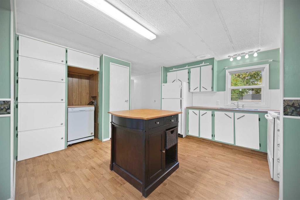 Looking for an affordable 2 bedroom home on its own lot so no pad fees, then look no further! This home is situated on a mature lot and features newer windows, shingles (2020), all new pex plumbing throughout, and newer back door. As you enter the home you will appreciate the large entrance with built in bench, shoe rack and closet. There is a large dining area with lots of natural light - a great place for family mealtimes. The kitchen features white cabinets, a central island, pantry and lots of counterspace. Relax in the spacious living with its lovely wood burning stove - snug and cozy on a cold winters day! There is a great den/office - this room does not have a heat source so is not included in the total square footage of the home. Bedroom # 1 has 2 large windows and is currently where the washer and dryer are hooked up. The primary bedroom has dual aspect windows, a ceiling fan, large closet and a door into the bathroom. The 4 piece bathroom features a large vanity. There is additional storage area too! The yard is fully fenced and features mature trees and shrubs and has 2 storage sheds. There is a gravel driveway to the front of the home so plenty of parking! View 3D /virtual tour/multimedia.
