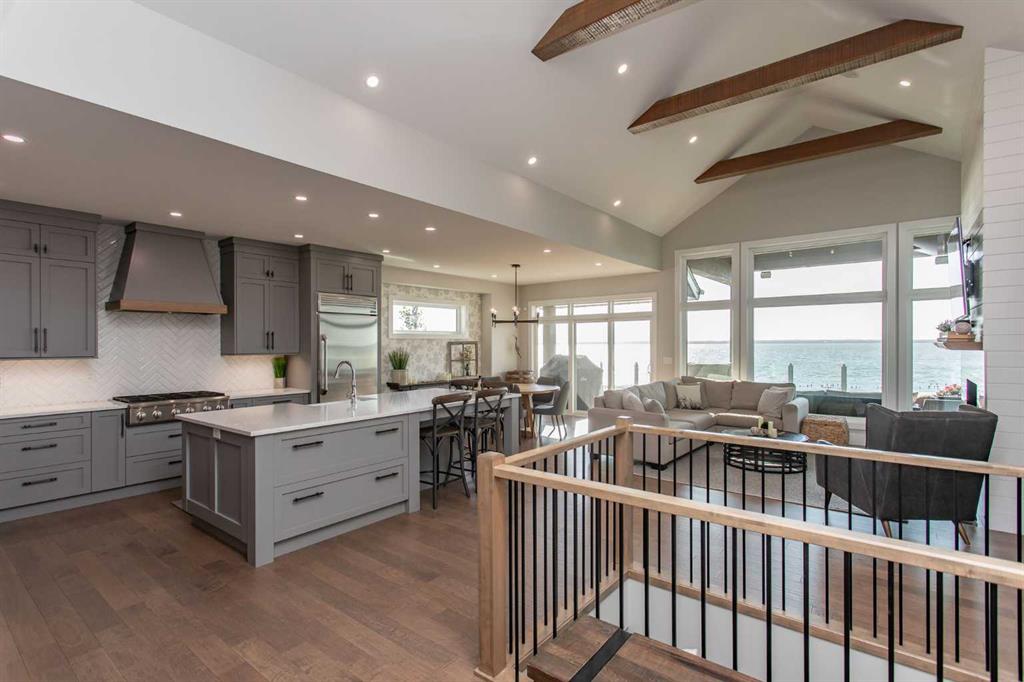 Wake up to picturesque views of Buffalo Lake, spend your afternoons relaxing on the beach or in the water, and unwind by the fire as the sun sets over the shoreline—this is lakeside living at its finest. Designed for those who crave connection, comfort, and a touch of luxury, this modern home blends effortless main-level living with exceptional indoor–outdoor spaces. Whether you’re raising a family that loves to play by the lake or desire a summer home, this property delivers in every way! Experience the beautiful community of Pelican View Estates. This tastefully designed and beautifully built Larkaun Home home is absolutely stunning! The main floor welcomes you with an open, airy layout that frames unforgettable views of Buffalo Lake. Soaring ceilings and ample windows that bring the outdoors in, gorgeous hardwood and tile flooring with a beautiful patio off the dining area. The chef-inspired Kitchen with quartz counters is built for entertaining, complete with a coffee/cooler bar and a walk-through pantry for easy organization. The Primary Suite is bright and welcoming with gorgeous views and access to the upper balcony, a spa-like Ensuite, large walk-in closet, and direct access to the Laundry Room—everything you need on one level. A main floor Den makes an ideal home office or quiet retreat. The bonus room upstairs is great for a recreation space and cozy movie nights. It sits above the oversized triple Garage that provides plenty of room for vehicles, lake gear, and storage. The walkout lower level is made for gathering—featuring an impressive wet bar, a sunroom that connects to the hot tub area, and three comfortable Bedrooms. Two share a Jack and Jill 5-piece Bath, while the third is next to a full Bath—perfect for hosting guests with privacy and comfort in mind. This level extends your living space, opening directly outside for patio and beach access. Outside, enjoy steps-to-the-water access, a firepit for evening campfires, and sweeping views that make this one of the most desirable spots on the lake. Whether it’s sunrise coffee on the balcony or sunset by the shore, this home captures the essence of modern lakeside living.