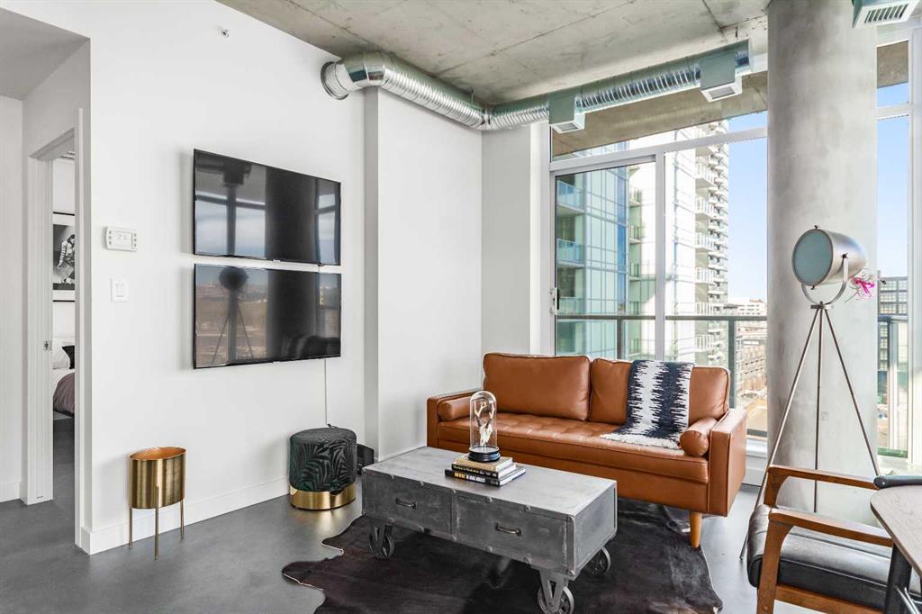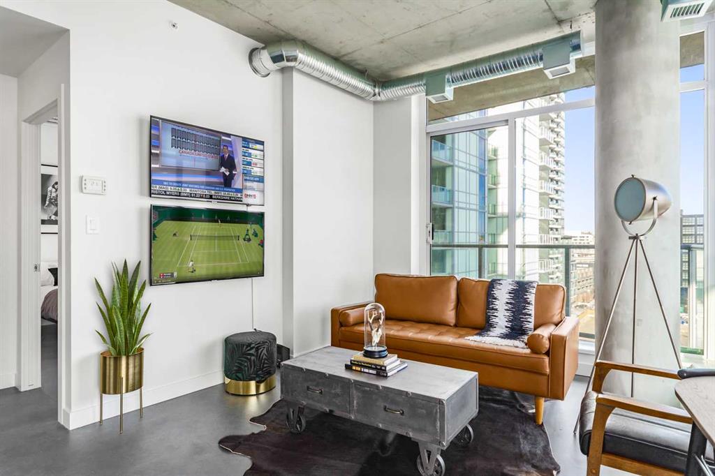 Downtown apartment for rent. This stunning 2-bedroom, 2-bathroom condo is a true gem, boasting breathtaking views of the majestic Bow River and historic Fort Calgary. Spanning just under 700 square feet, this beautiful unit features an open and airy floor plan that maximizes the natural light and showcases the stunning scenery outside. The modern and chic decor perfectly complements the contemporary design, making this space a true feast for the eyes. This prime location is within walking distance to the charming community of Inglewood and the popular river pathway, perfect for those who love the great outdoors.