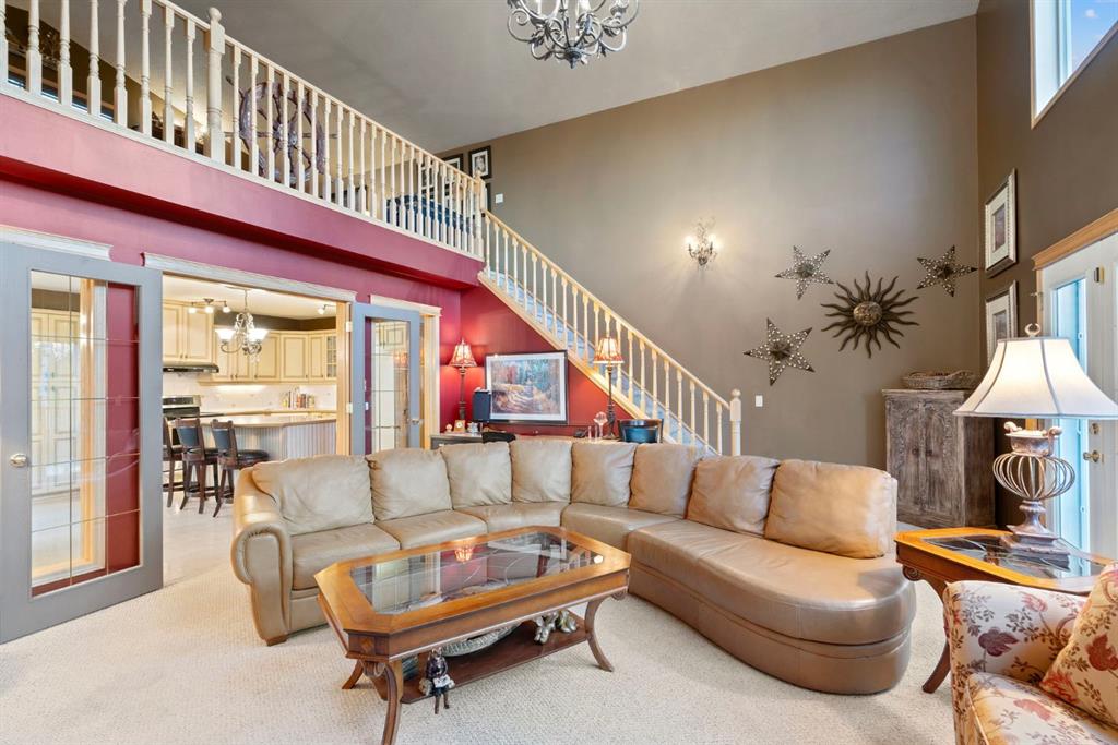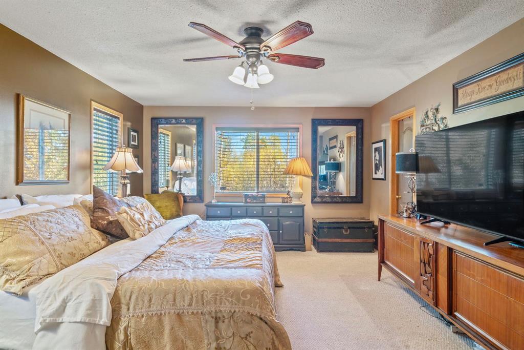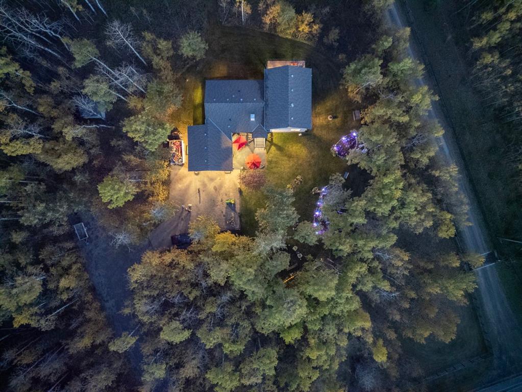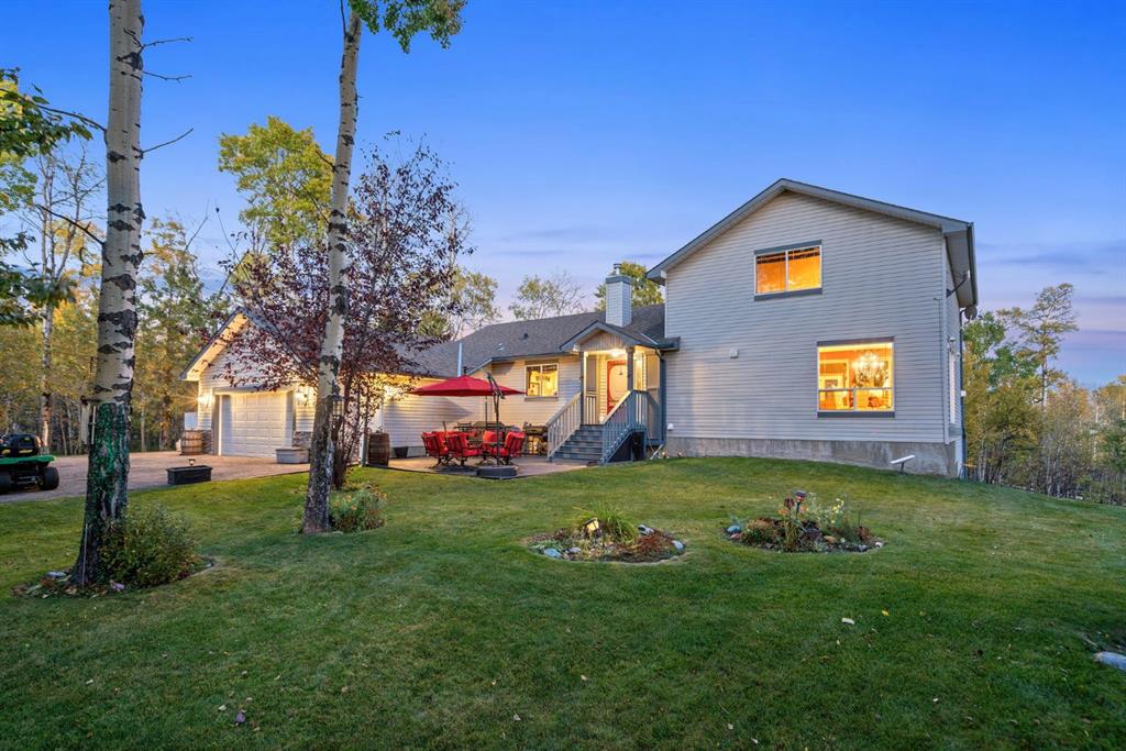 Escape to this very private magical forest that is situated on 3.81 acres that is one of the most sought out & desirable areas in Priddis. This warm and inviting 2214 sq.ft. hillside walkout bungalow blends timeless, traditional charm and strategic design to capture all of the breath taking views. The main floor with its stunning two storey vaulted ceiling’s in the great room c/w oversized windows, and a beautiful double mantle stone fireplace that anchors the gorgeous views, a 400 sq.ft. loft that is over looking the expansive great room and the majestic mountain views to the west and valley views to the south & east. The adjoining dining area and kitchen are surrounded by glass French doors and oversized windows on two complete walls that is breath taking. The beautiful kitchen features traditional, classic antique ivory solid wood cabinets with intricate detailing. Large counter height island with space for 3 or 4 counter height breakfast chairs, plenty of storage and prep space for those to create amazing meals. The spacious primary suite is a serene retreat with a walk-in closets and a 4-pc ensuite, complete with a 6 ft. jetted soaker tub and large vanity. There are two more oversized secondary bedrooms on the main floor for your growing family, and AC throughout. The oversized double attached garage features a separate stairwell that is conveniently placed for a separate private access to the lower level walkout. The walkout level is unfinished and ready for development, c/w roughed-in- infoor radiant heat. There is expansive room to create two large bedrooms c/w large walk-in closets, laundry room, 5-pc full bath storage room, family room , games area or a second full kitchen c/w a large pantry. Outside the property is a true oasis in the forest with manicured lawns & perennial gardens, oversized fire pit, hammock area to lay by the fire and watch the shooting stars, or read a book and unwind. Enjoy the trails that wind around the acreage. A large storage shed and raised cat house to keep your outdoor cats cozy. With its blend of natural beauty and rural tranquility, this property is a rare find for those seeking space, privacy, comfort, and a true connection with nature, all within a short commuting distance from the city & the new ring road. This is where your dreams come true.
