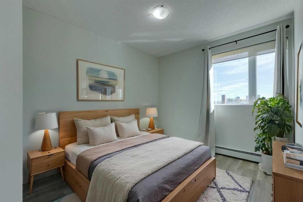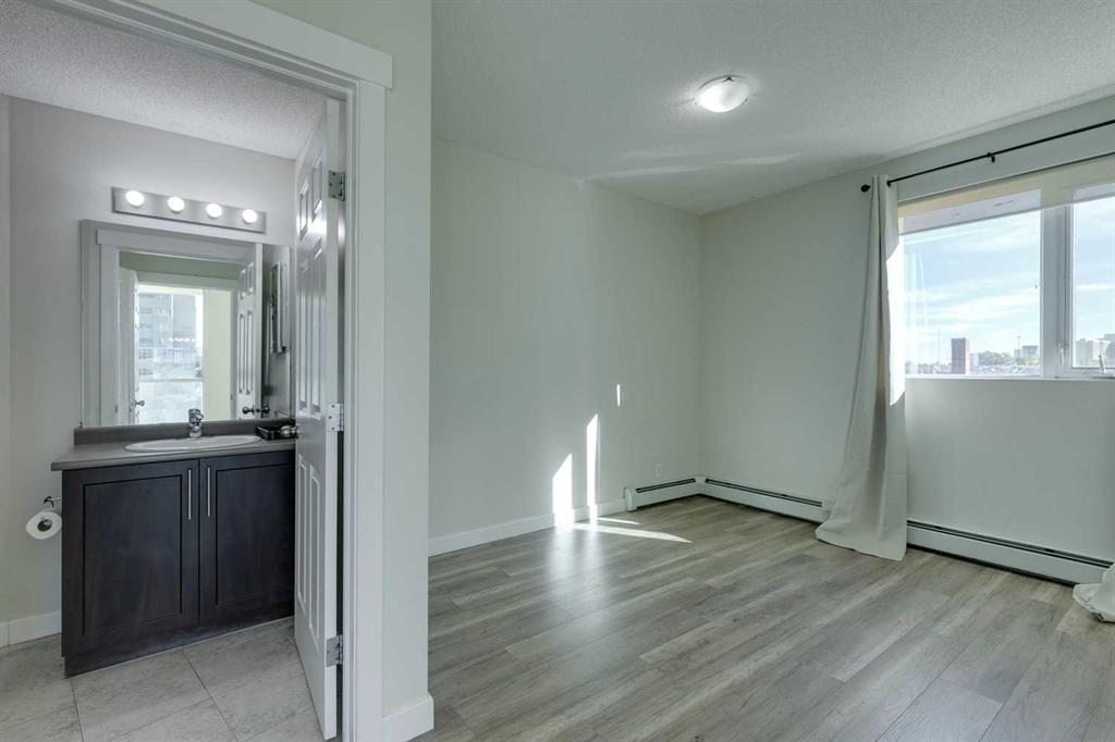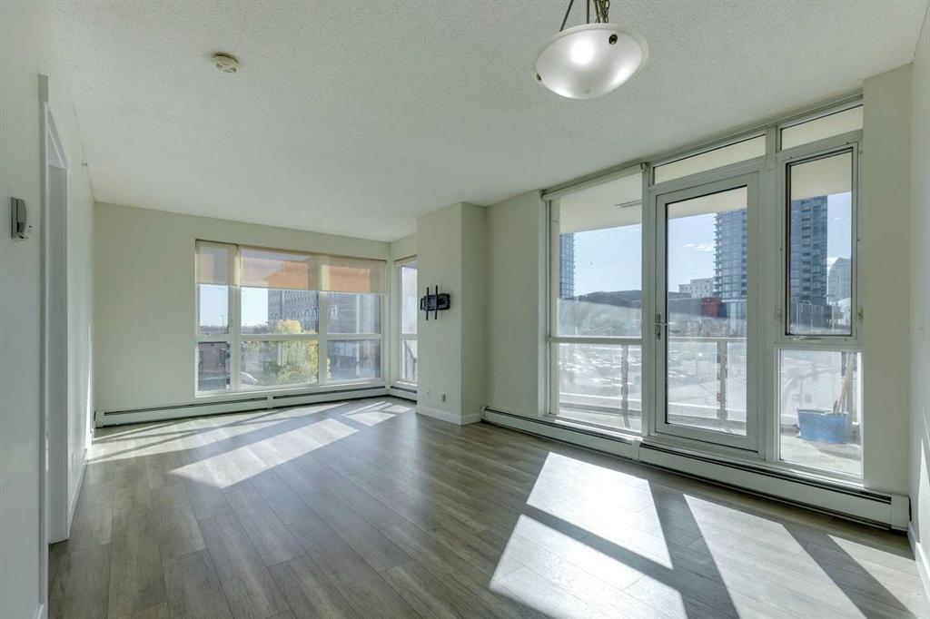 Welcome to a fantastic 2-bed, 2-bath + Den at Riverfront Pointe that actually gets how you want to live. Located in the vibrant East Village, this unit is all about space, smart design, and spontaneous adventure. With over 900 SF, this isn't your average condo box. The bedrooms are placed on opposite sides of the unit—perfect for actual privacy, whether you have a roommate, a partner, or just like your quiet space. Plus, you get an additional area that's ready to handle your home office, Peloton, or whatever passion project you’re currently obsessed with. The entire unit features newer laminate flooring with NO carpet for a modern look and easy cleaning. The central kitchen with its granite counters and updated appliances is perfectly set up for that quick bite before you hit the river path or hosting friends before going to the flames game or a concert. 9' ceilings and more windows than walls in the living room keep things bright and open. Step outside and you're instantly connected to the Bow River pathways, Studio Bell, the Central Library, and all the best spots in East Village. Don't forget about the Saddledome and the NEW arena and entertainment district that is already underway. C train, Art Commons, Prince's Island and soo many other places to mention, means you can walk almost everywhere, but don't worry about your car feeling neglected. This unit comes with TWO titled parking spots that are secure and heated. You've also got a gym, concierge and 24hr security. Combine all this with immediate possession available, this unit is easy to show and ready to go!