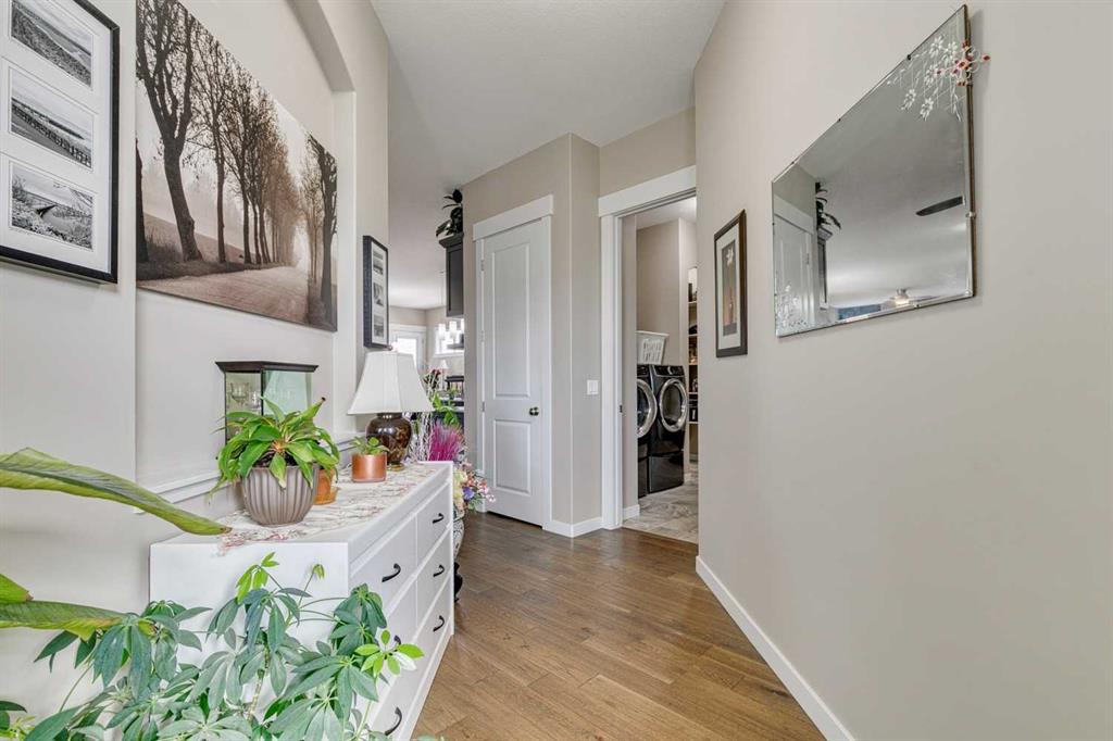 Welcome to a home where thoughtful craftsmanship, timeless finishes, and intelligent design come together in perfect harmony. Located in a peaceful, family-friendly neighbourhood, this stunning McKee-built bungalow offers over 1,400 sq ft of main floor living and a partially finished basement that’s already prepped with drywall, luxury vinyl plank flooring, and Dricore subflooring—ready for your finishing touches. Step inside and be greeted by soaring 10’ ceilings and engineered hand-scraped hardwood floors that create an instant sense of space and elegance. The custom kitchen is truly the heart of this home, featuring painted cabinetry, quartz countertops, a gas stove with a showpiece custom hood fan, built-in wood shelving, and a matching island eating bar. A walk-through pantry offers ample storage and everyday convenience. The open-concept living room includes a cozy gas fireplace and bright windows that flood the space with natural light, while the dining area is accented with a transom window for added architectural interest. With two spacious bedrooms and two full bathrooms on the main floor, this home is equally ideal for growing families or downsizers looking for one-level living. The primary bedroom is a peaceful retreat that easily accommodates king-sized furniture and includes a luxurious 5-piece ensuite complete with double vanity, soaker tub, separate shower, and a generous walk-in closet. A dedicated main floor laundry room adds convenience, and the front-attached garage comes outfitted with a high-end Gladiator organization system—ideal for anyone who appreciates a tidy space. Step outside to a beautifully landscaped and fenced backyard that backs onto a rear lane, offering extra privacy and versatility. Invisible screens on the front and back doors allow you to enjoy fresh air without the bugs, and a Kinetico water system adds another level of comfort and quality. This is a rare opportunity to own a well-built, move-in-ready bungalow by one of the most trusted local builders. Whether you're relaxing at home or entertaining guests, this property offers the lifestyle you've been dreaming of. Don’t wait—book your private showing today and make this stunning bungalow your next home!
